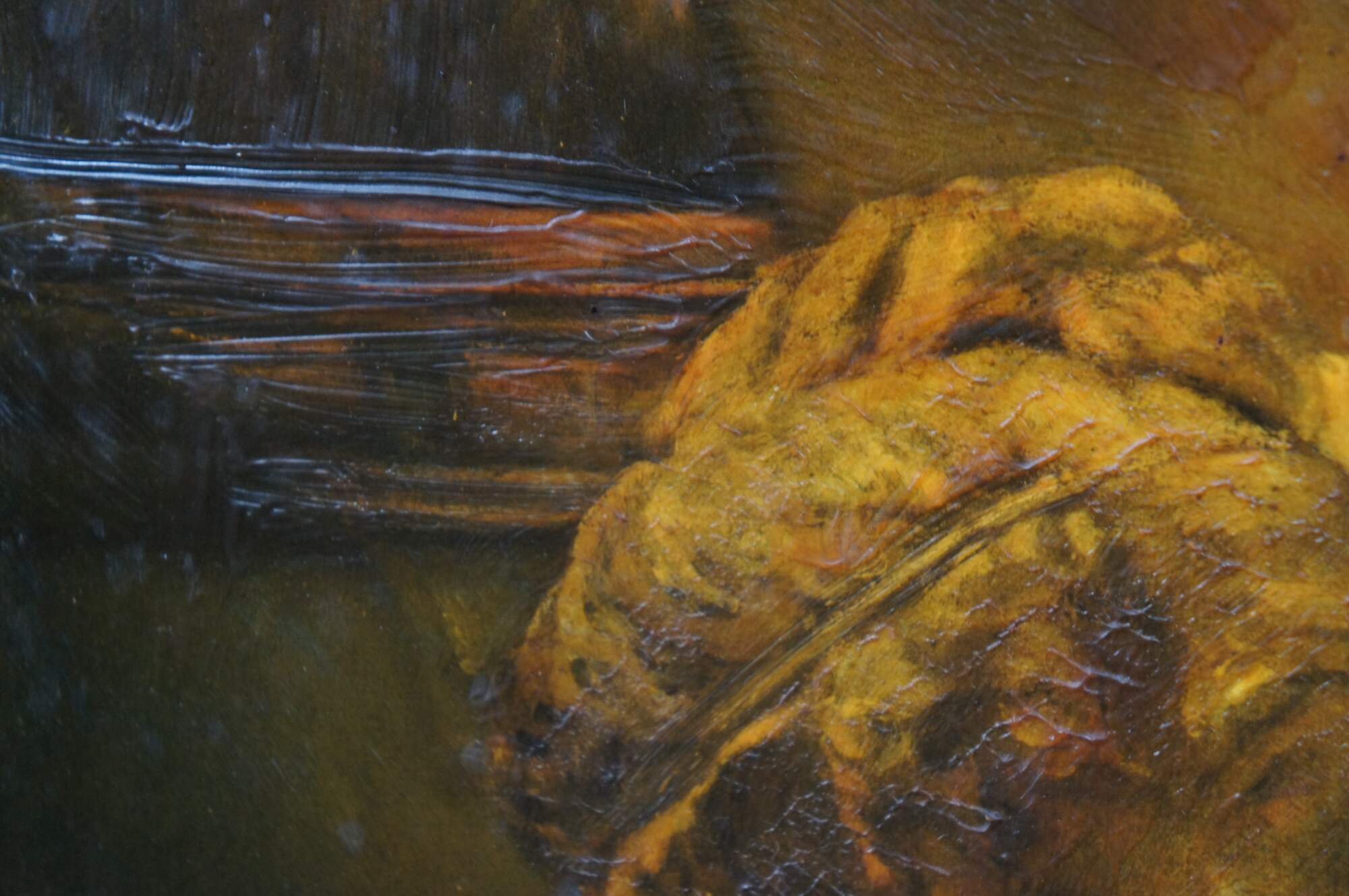 Good vintage condition - wear and distressing, undulation to canvas, cracking / spliting to frame.