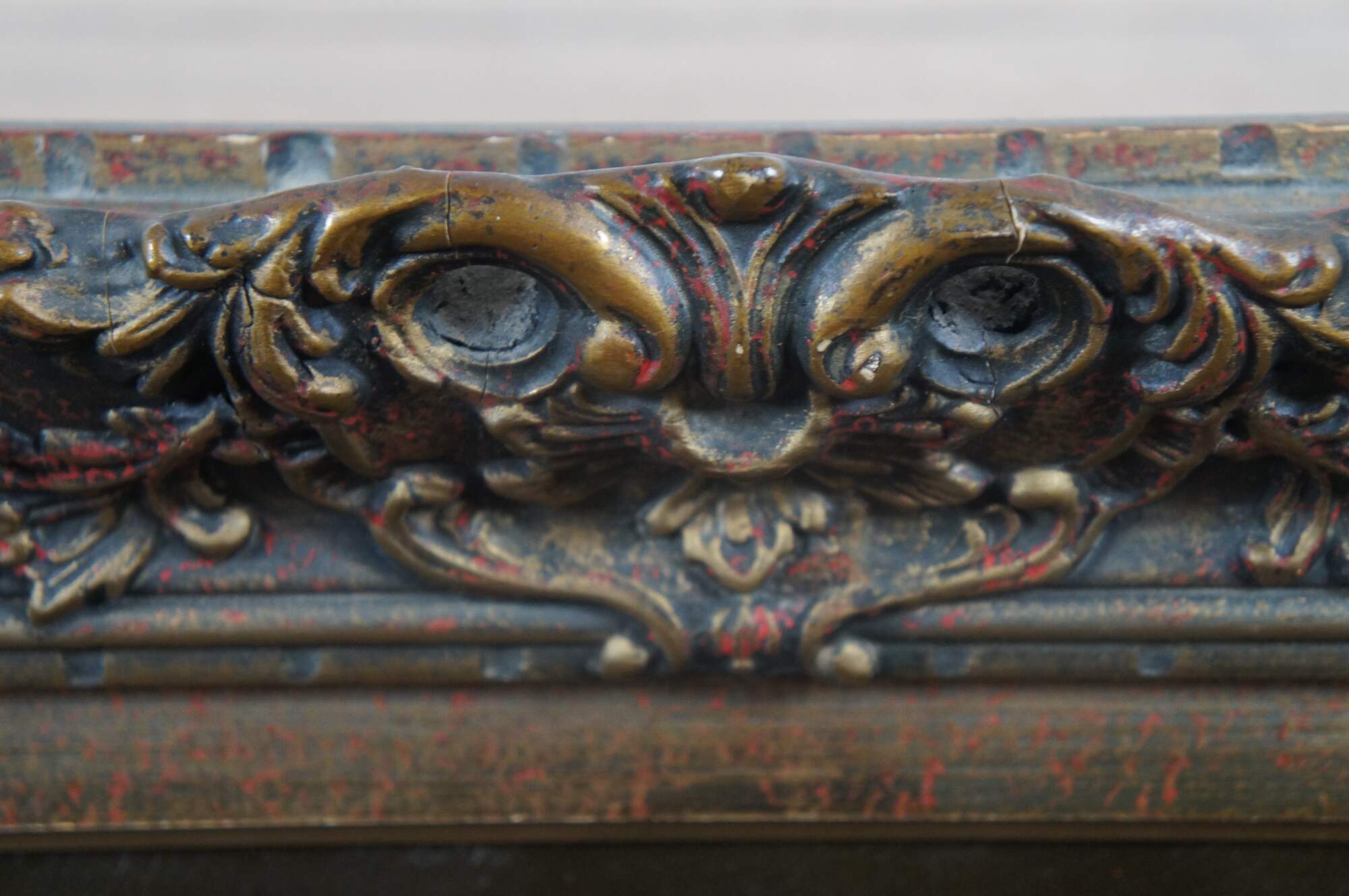 Vintage Aristotle with a bust of Homer Renaissance / philospher varnished print on canvas. Framed in ornate baroque floral frame by Goldcraft Studios of Canada.