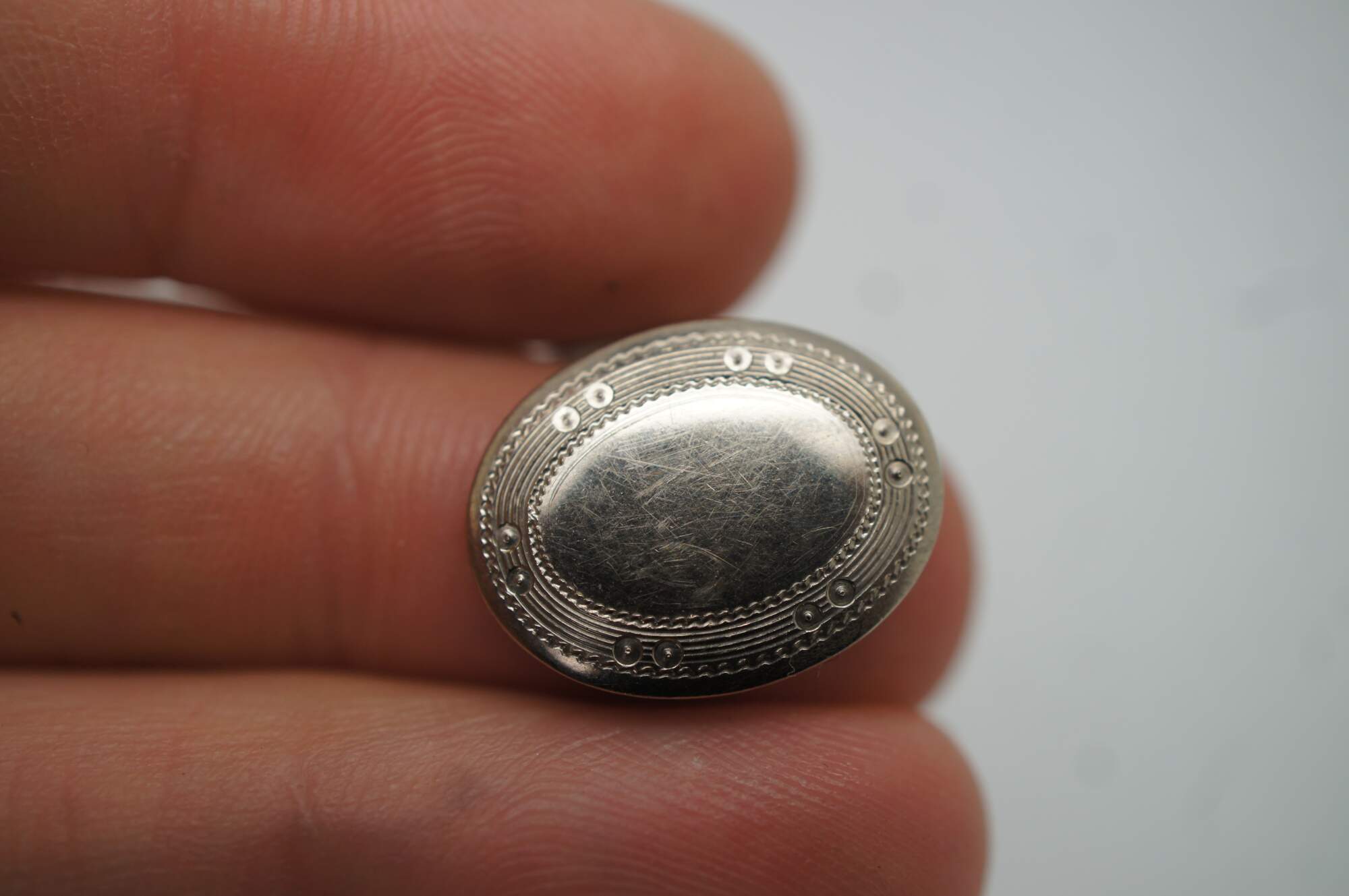 Pair of antique Art Deco 10K white gold oval chain cufflinks.