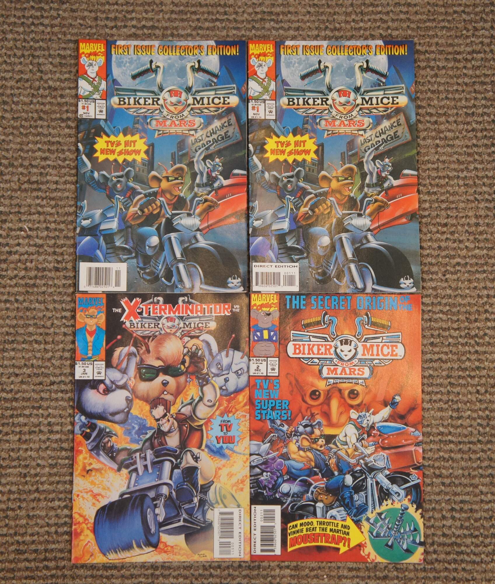 6 Rocko's Modern Life (1990s), 4 Biker Mice (1990s), 2 Spiderman (1980s), 2 The A-Team (1980s), 8 Howard the Duck (1970s - 80s), 3 Ghost Rider (1990s), Moon Knight (1981), What if Sgt. Fury had Fought World War Two in Outer Space? (1979), Time Bandits (1982), Mort the Dead Teenager (1993), The Punisher (1993), The Punisher Meets Archie (1994), 2 Fantastic Four (1980s), Alice Cooper (1979), Toxic Crusaders (1992), X Factor (1990), Doctor Who (1981), Camp Candy (1990), 3 Steeltown Rockers (1990s).