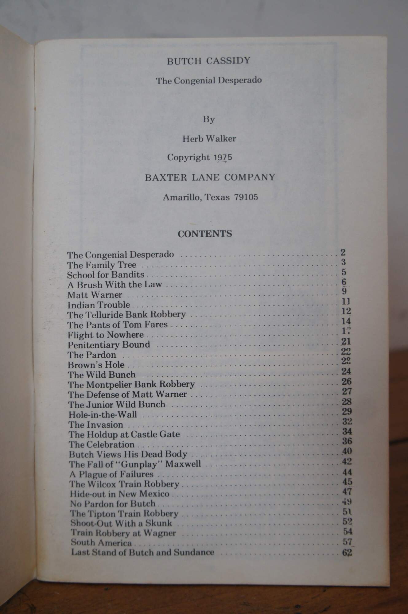 Secrets of Jesse James by George Turner - 1975. Butch Cassidy: The Congenial Desperado - 1975. Baxter Lane's Treasured Collection of Cowboy Songs & Poems - 1976. Printed and Published in the USA by Baxter Lane & Company.