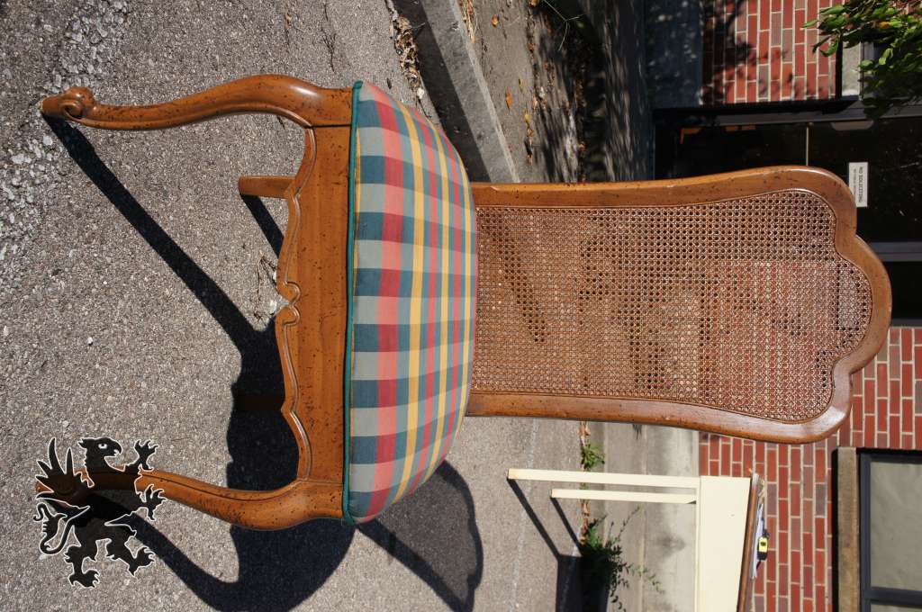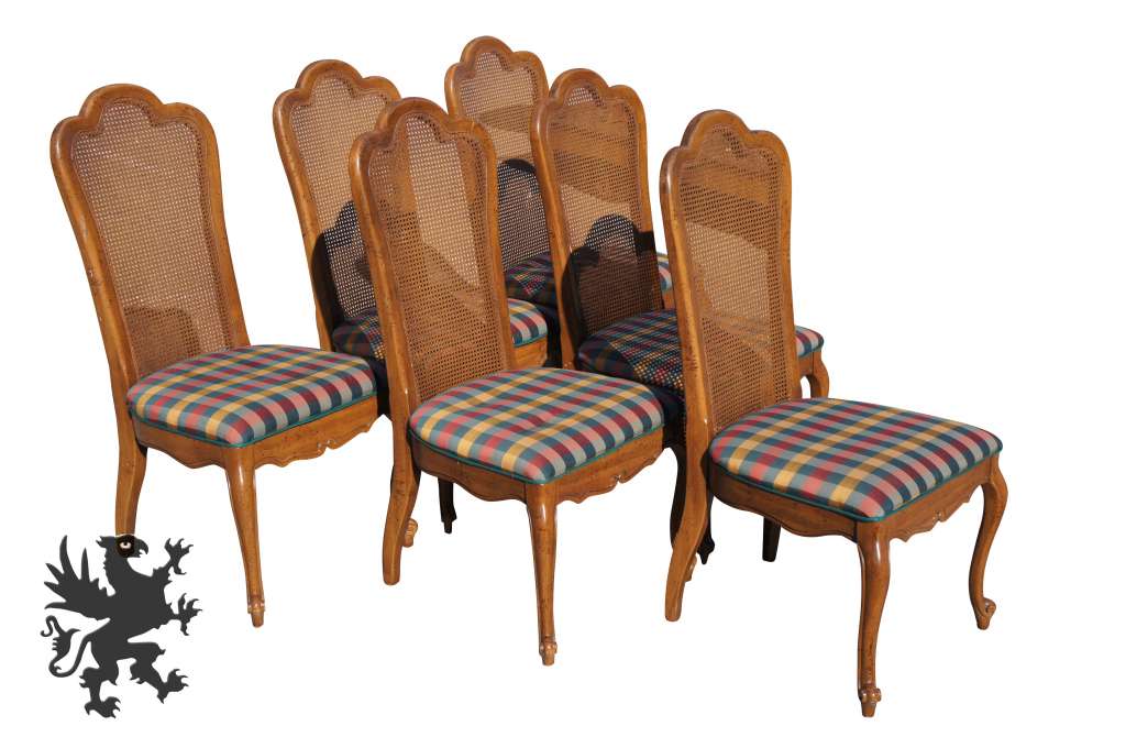 6 French Country Dining Chairs. Feature a cane back, carved accents and cabriole legs.