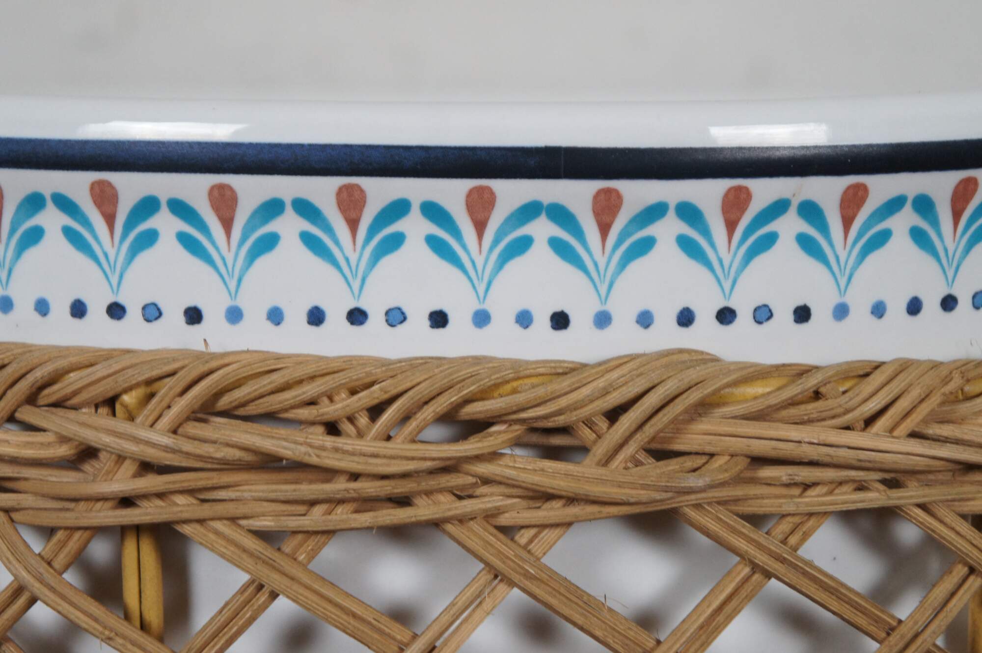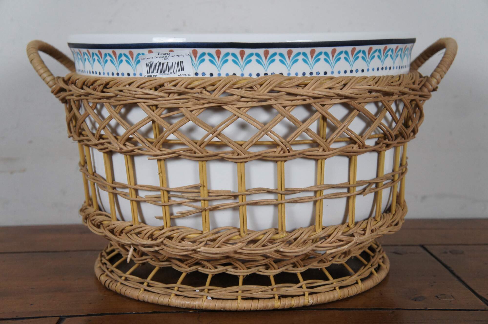 Frontgate Marbella Ceramic Rattan Blue Party Tub Serveware Bowl Beer Ice Bucket
