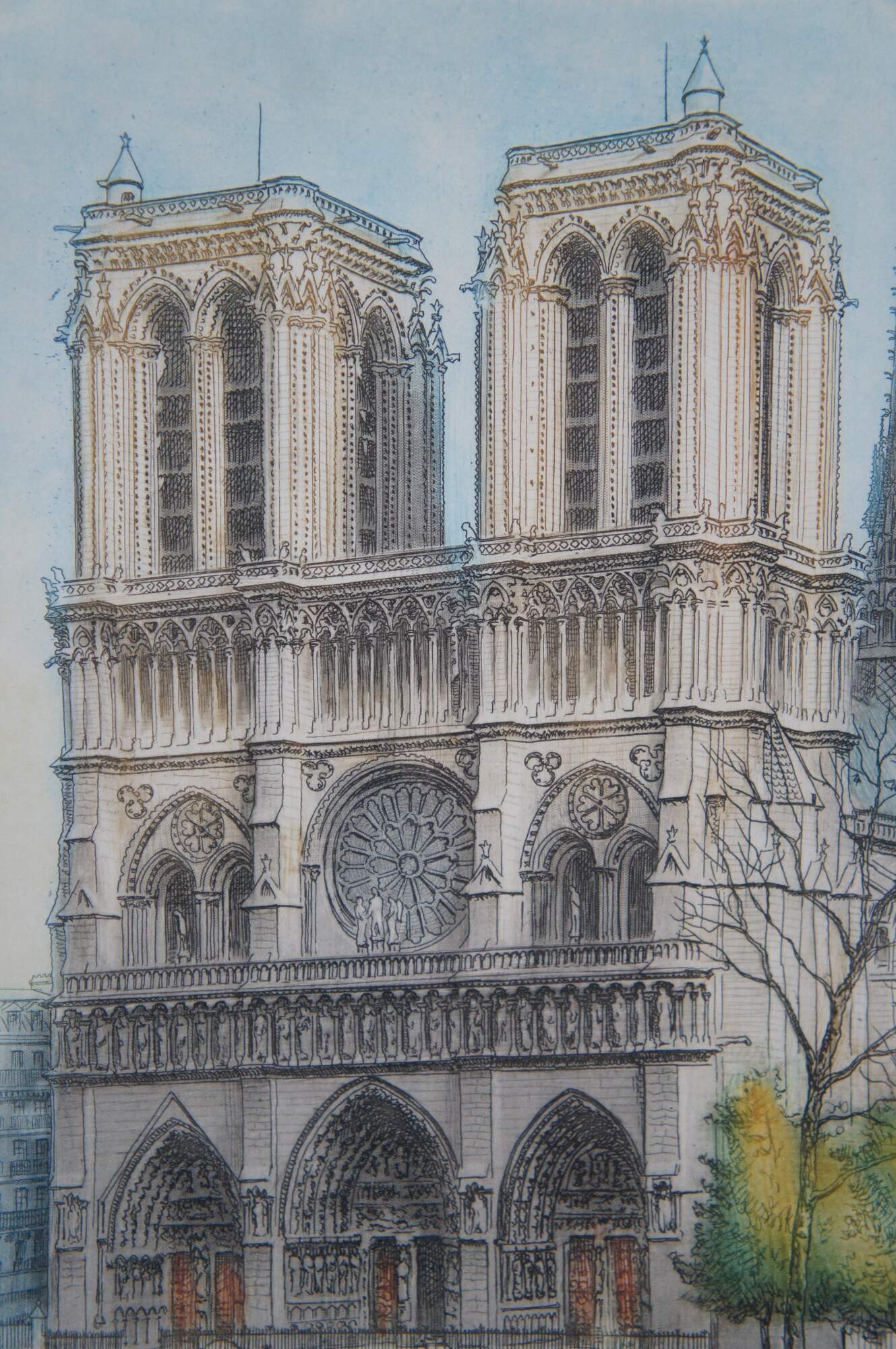 Individual plates are known with color/thematic variations. For example, an etching of Notre Dame – the same plate - is known with two color variations, one of Notre Dame in Spring/Summer, and one of Notre Dame in Winter. Similarly, an etching of Montmartre with Sacre Coeur exists in a day version and a night version.