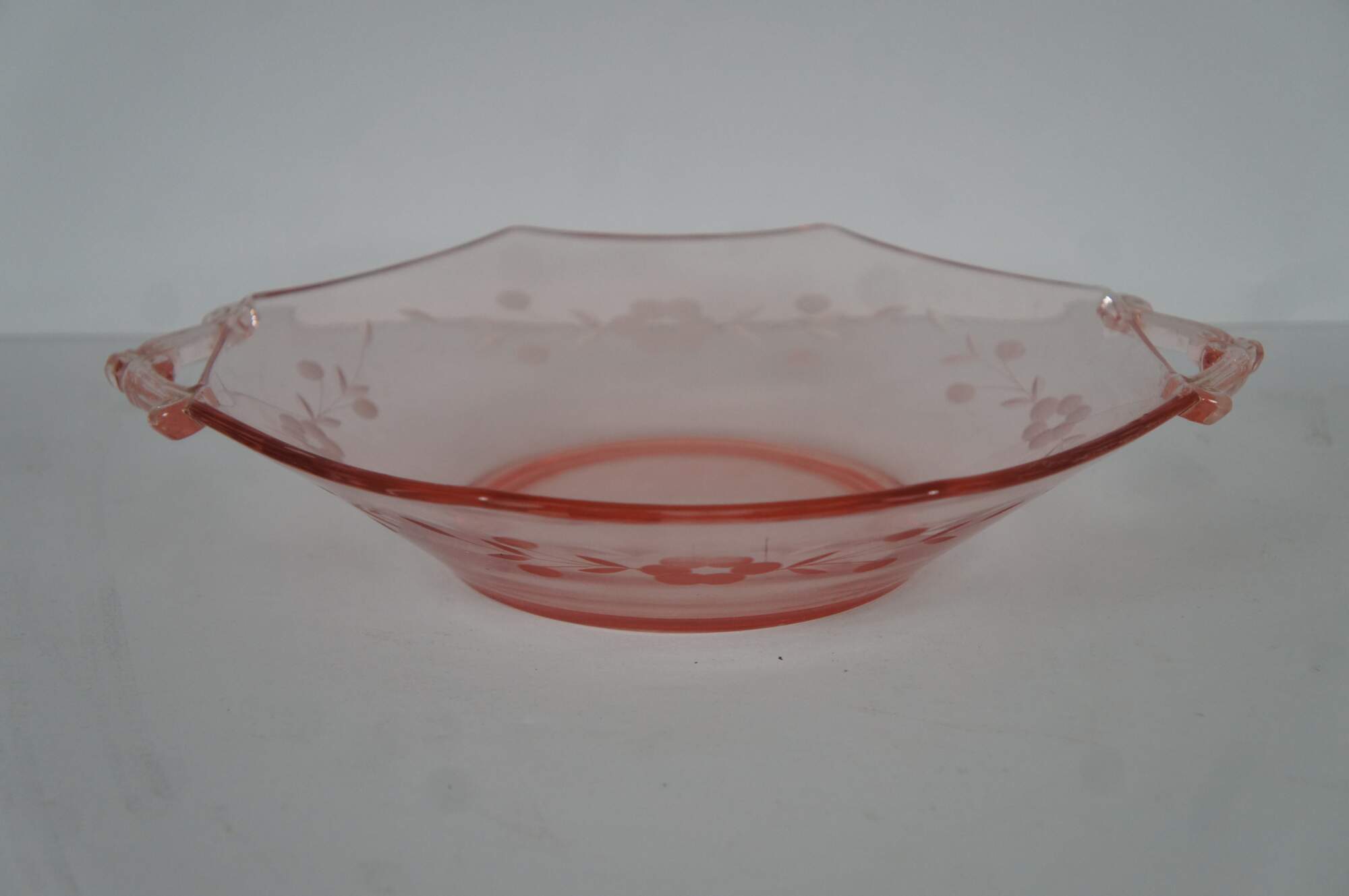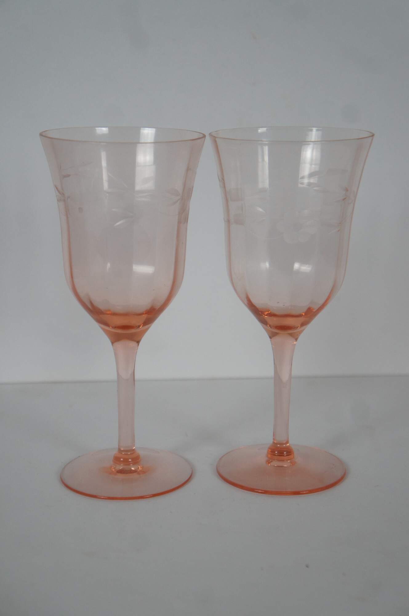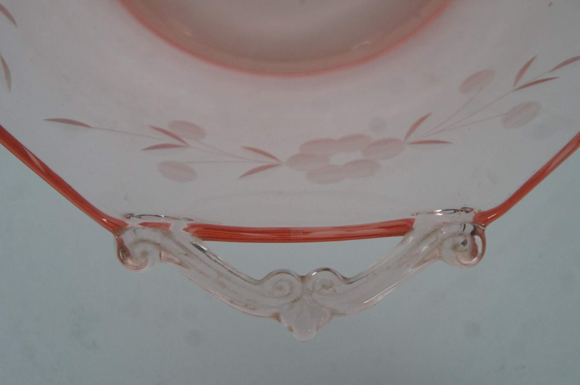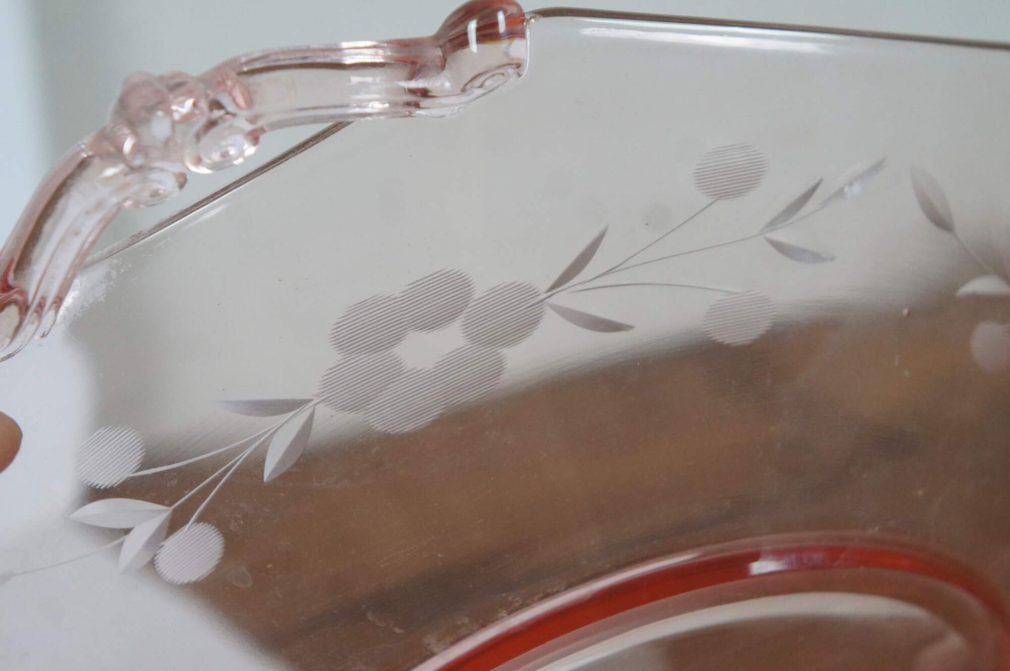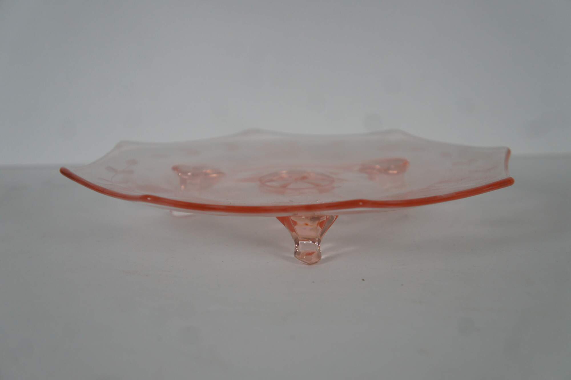 5 Pcs Antique Pink Floral Etched Depression Glass Goblet Compote Tray Stand
