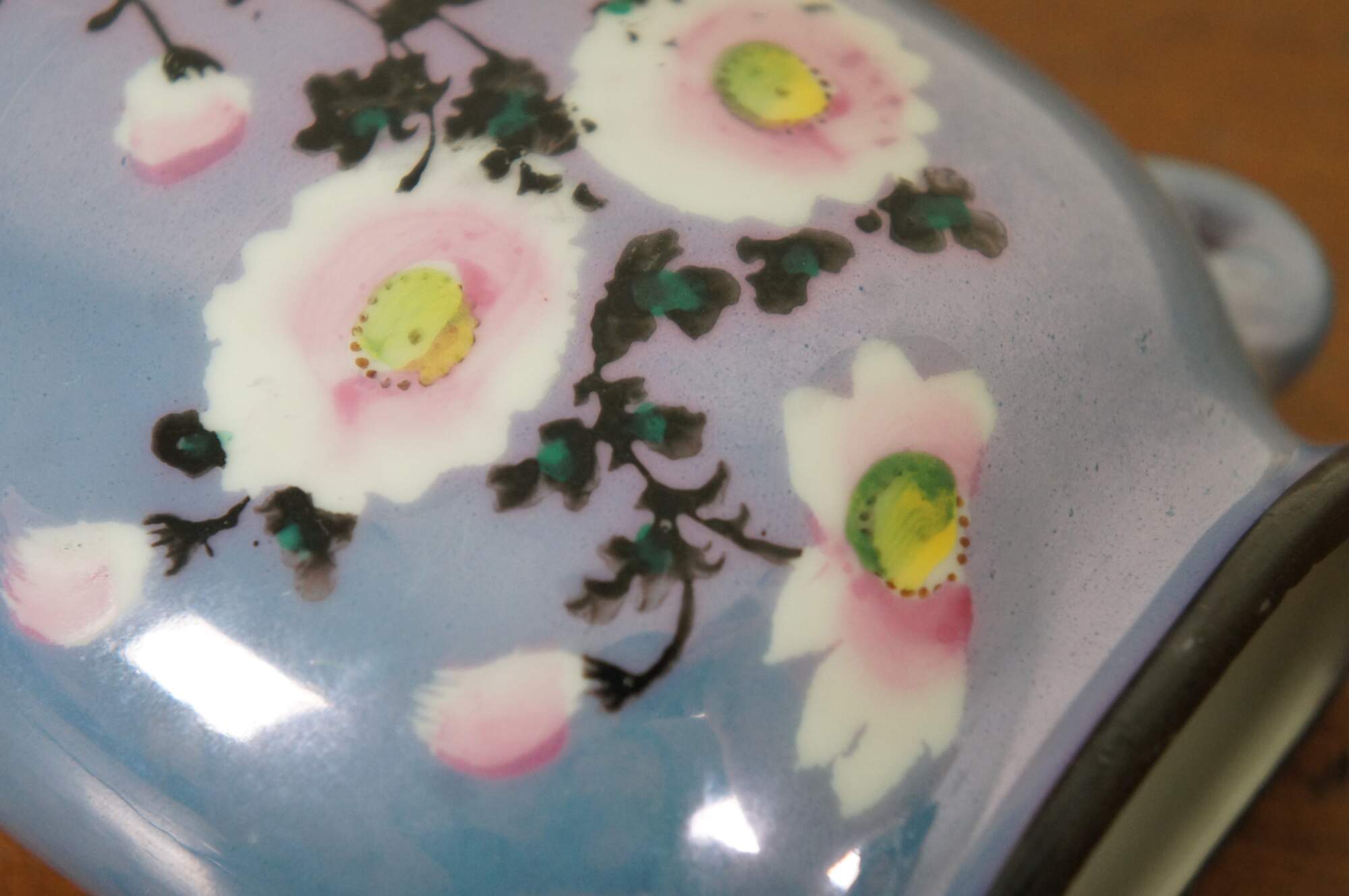 Vintage Japanese Blue Lusterware Iridescent Floral Porcelain Wall Pocket Vase