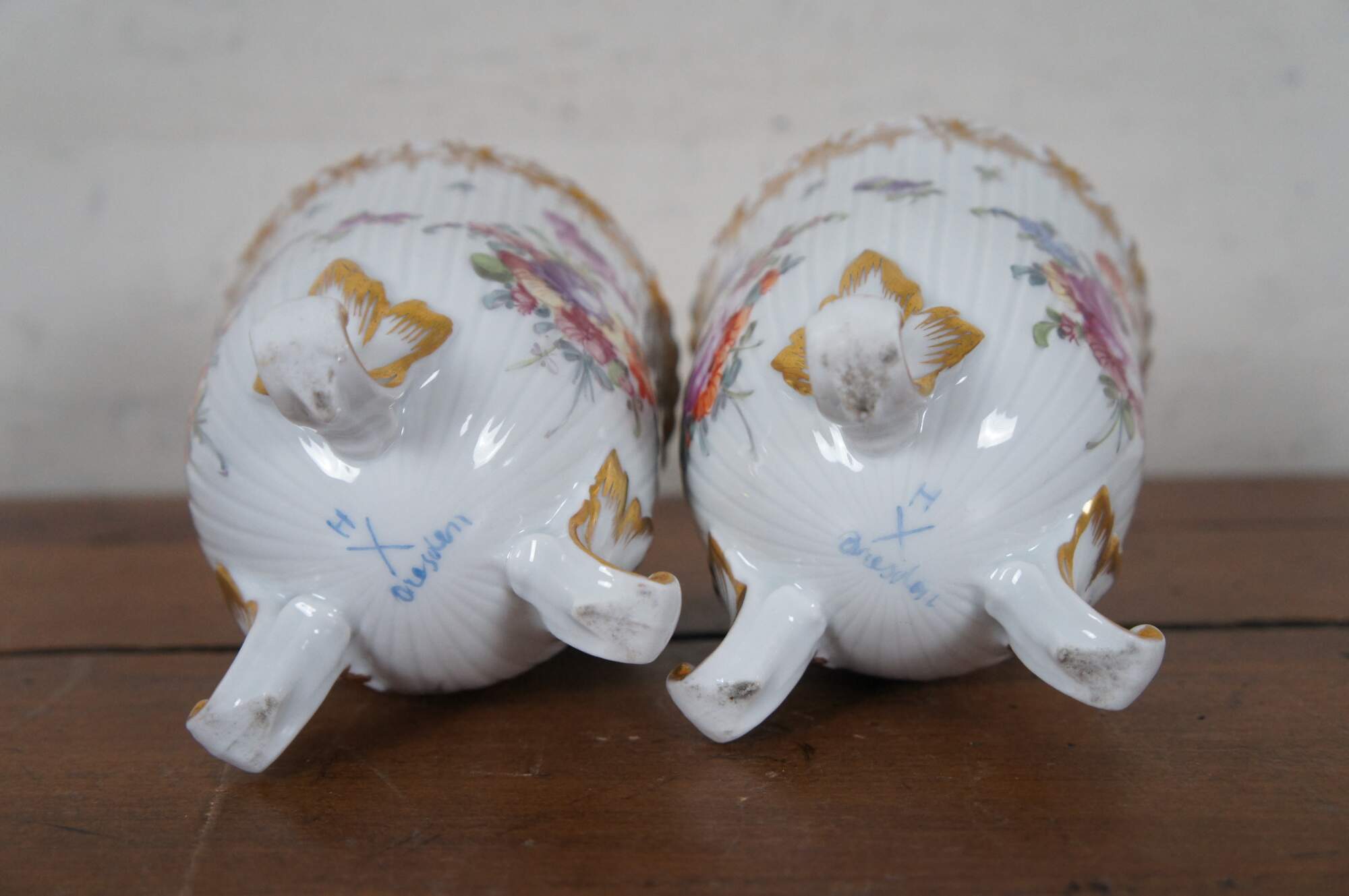 Hand-painted antique Dresden Porcelain with a floral motif and with the Dresden mark on the underside. Beautiful and a perfect example of period Dresden porcelain.