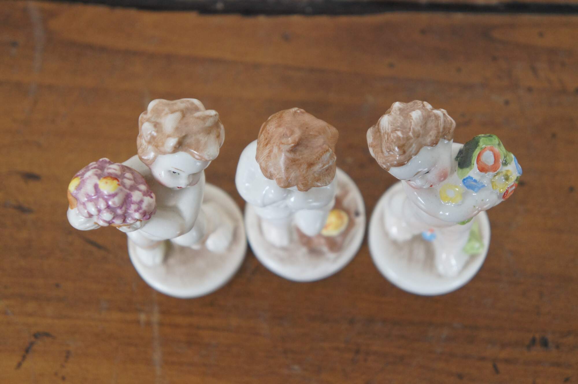 Vintage set of 3 Goebel figurines. One is fireside, the other holding grapes and the last with a pot or planter.