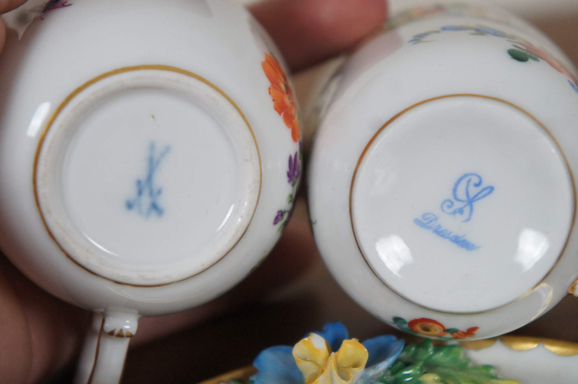 “The Sächsische Porzellan-Manufaktur Dresden GmbH (Saxon Porcelain Manufactory in Dresden Ltd), generally known in English as Dresden Porcelain, is a German company for the production of decorative and luxury porcelain. Founded in1872, it is located in Potschappel, a suburb of the town of Freital in the Sächsische Schweiz-Osterzgebirge district about 8 km (5 mi) southwest of Dresden, the capital of Saxony. Dresden Porcelain introduced its blue "SP Dresden" trademark in 1902.”