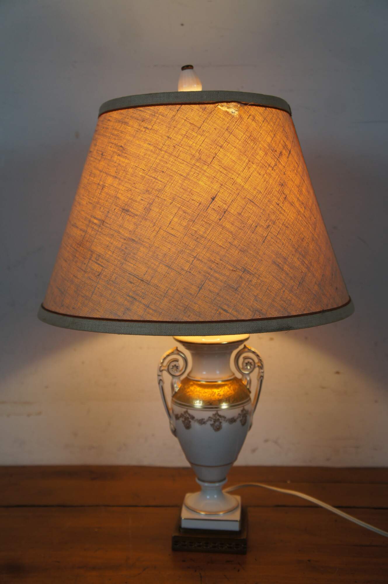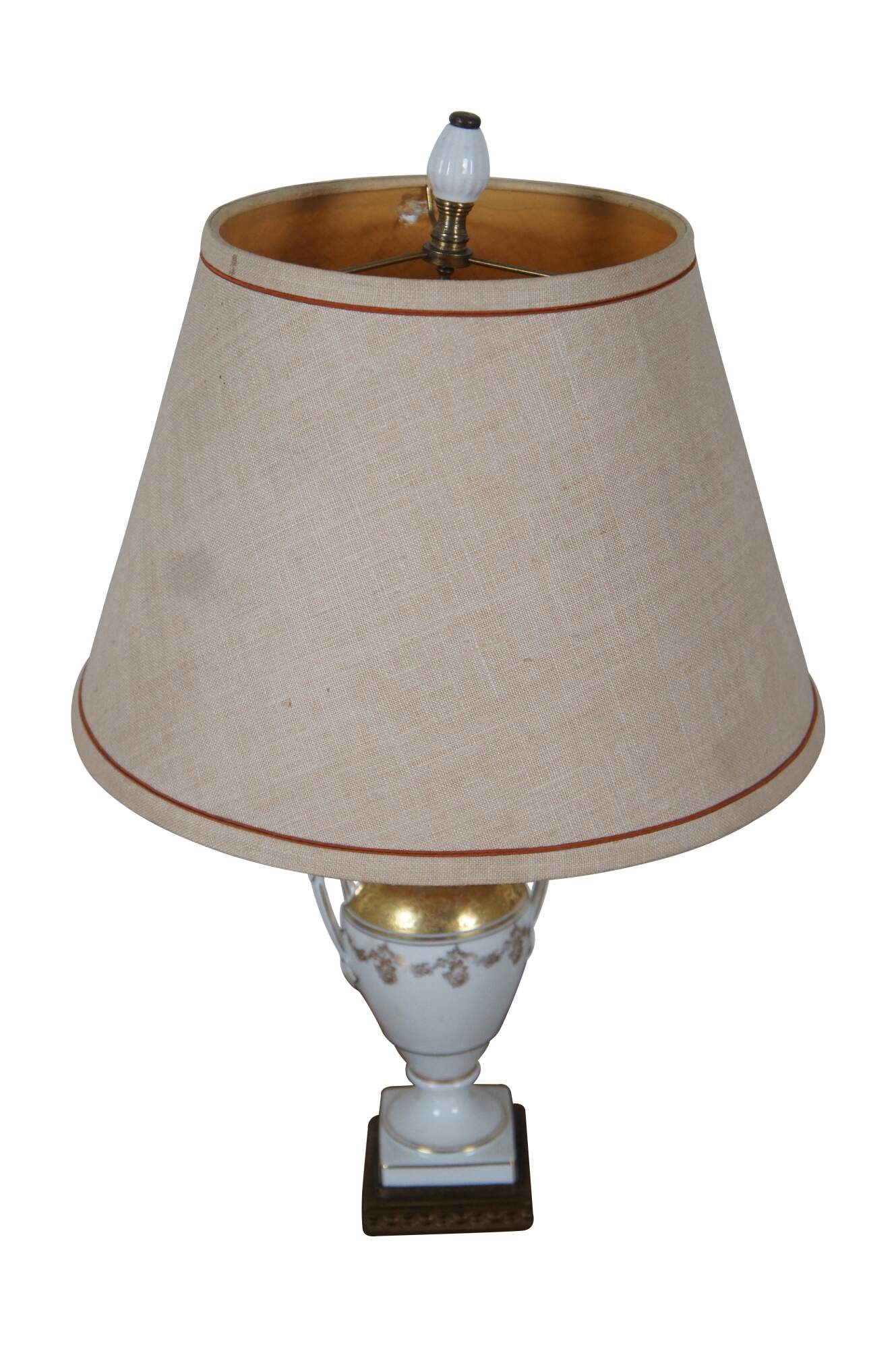 Vintage Japanese Kutani White Green Floral Porcelain Mantel Vase Urn 14"