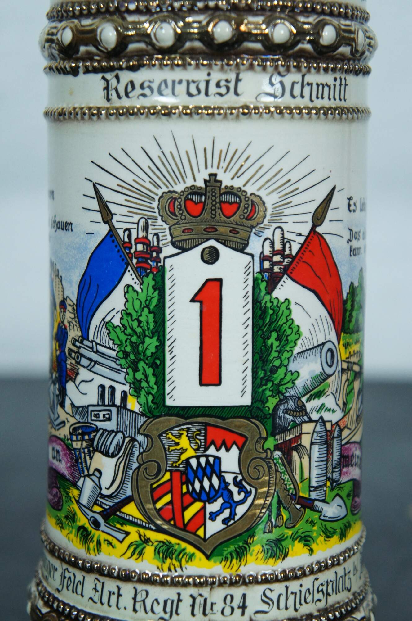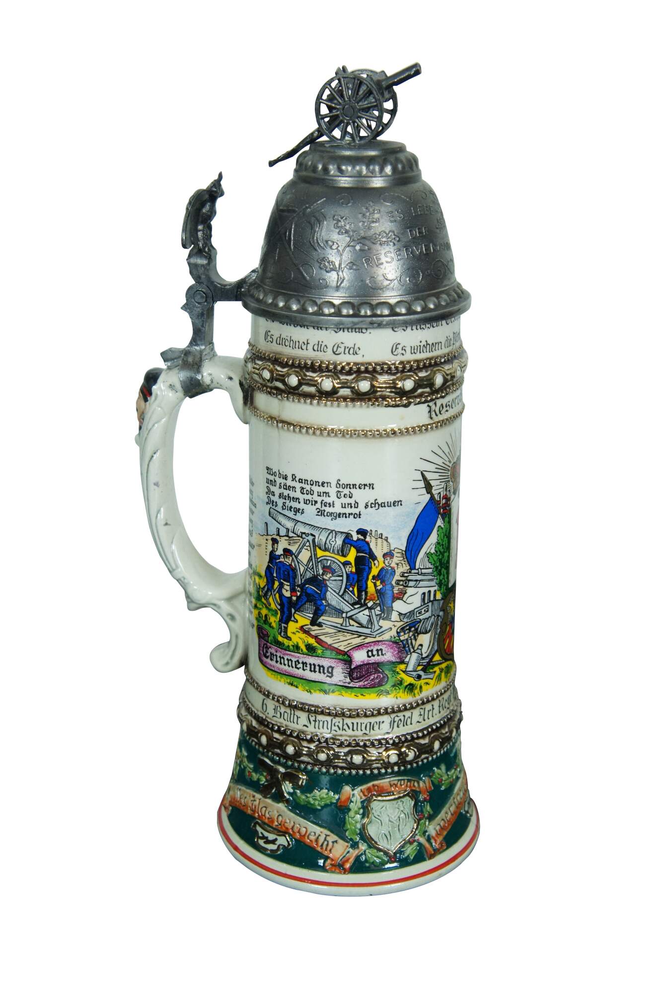Antique German Military WWI Reservist Artillery Porcelain Beer Stein