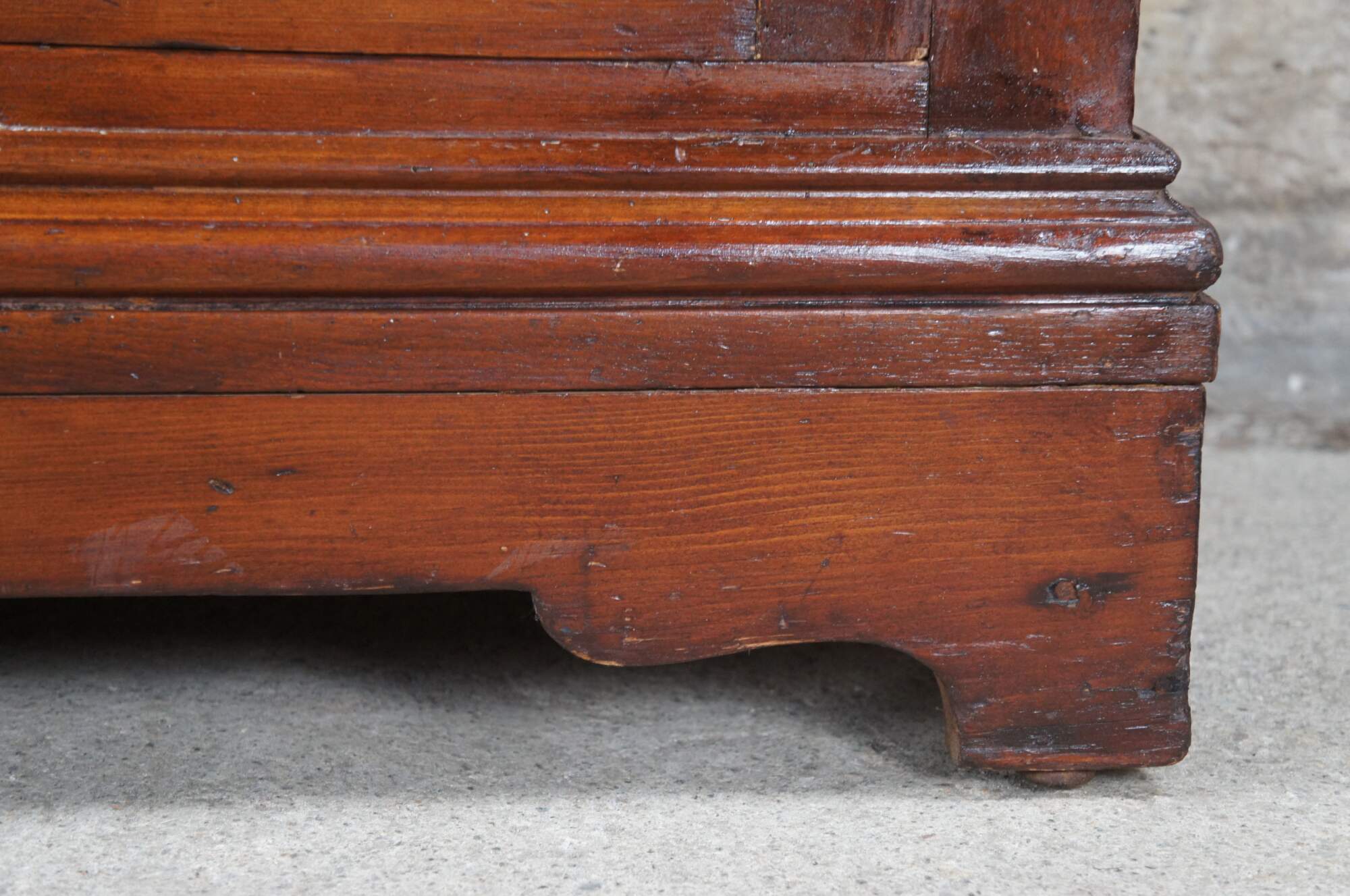 19th Century American Victorian curio / display cabinet. Features a rectangular form made from pine with serpentine backsplash. A central door opens via metal latch to two interior shelves. Back is sided with hand cut nails.
