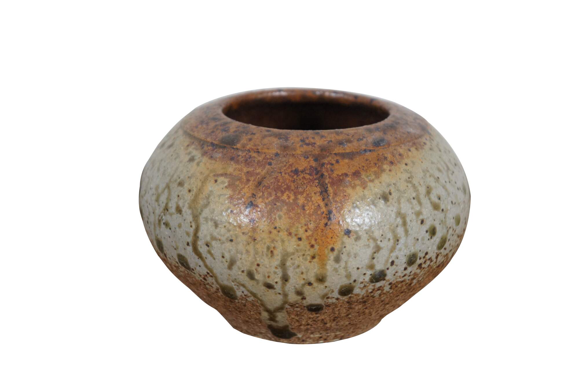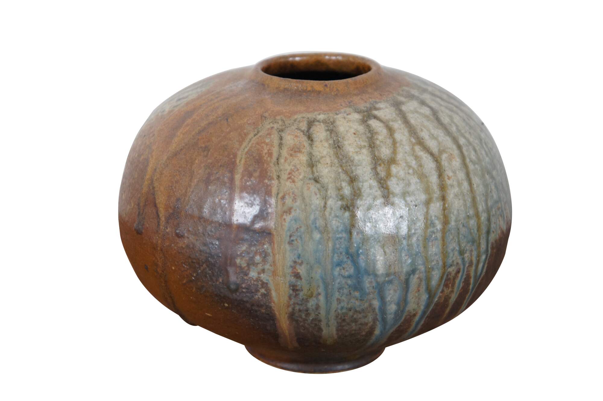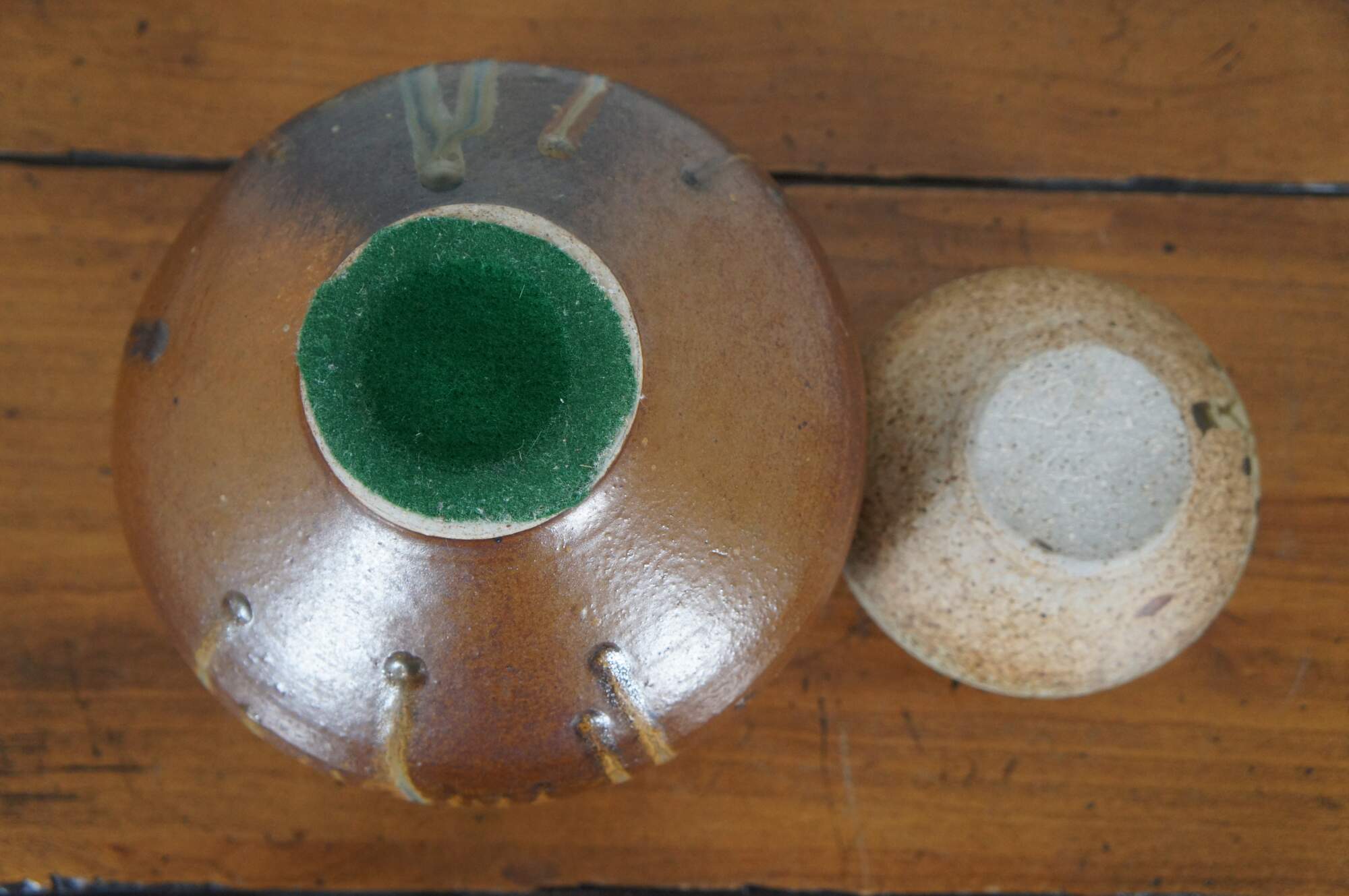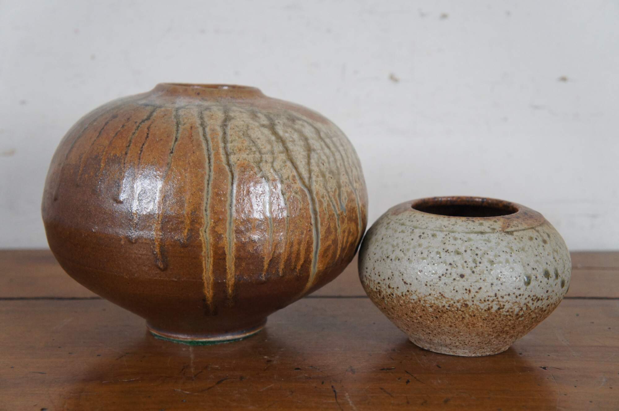 Two vintage mid to early 19th century Southwestern ceramic glazed earthenware pots / vases or vessels featuring round form with earth tone drip glaze.
