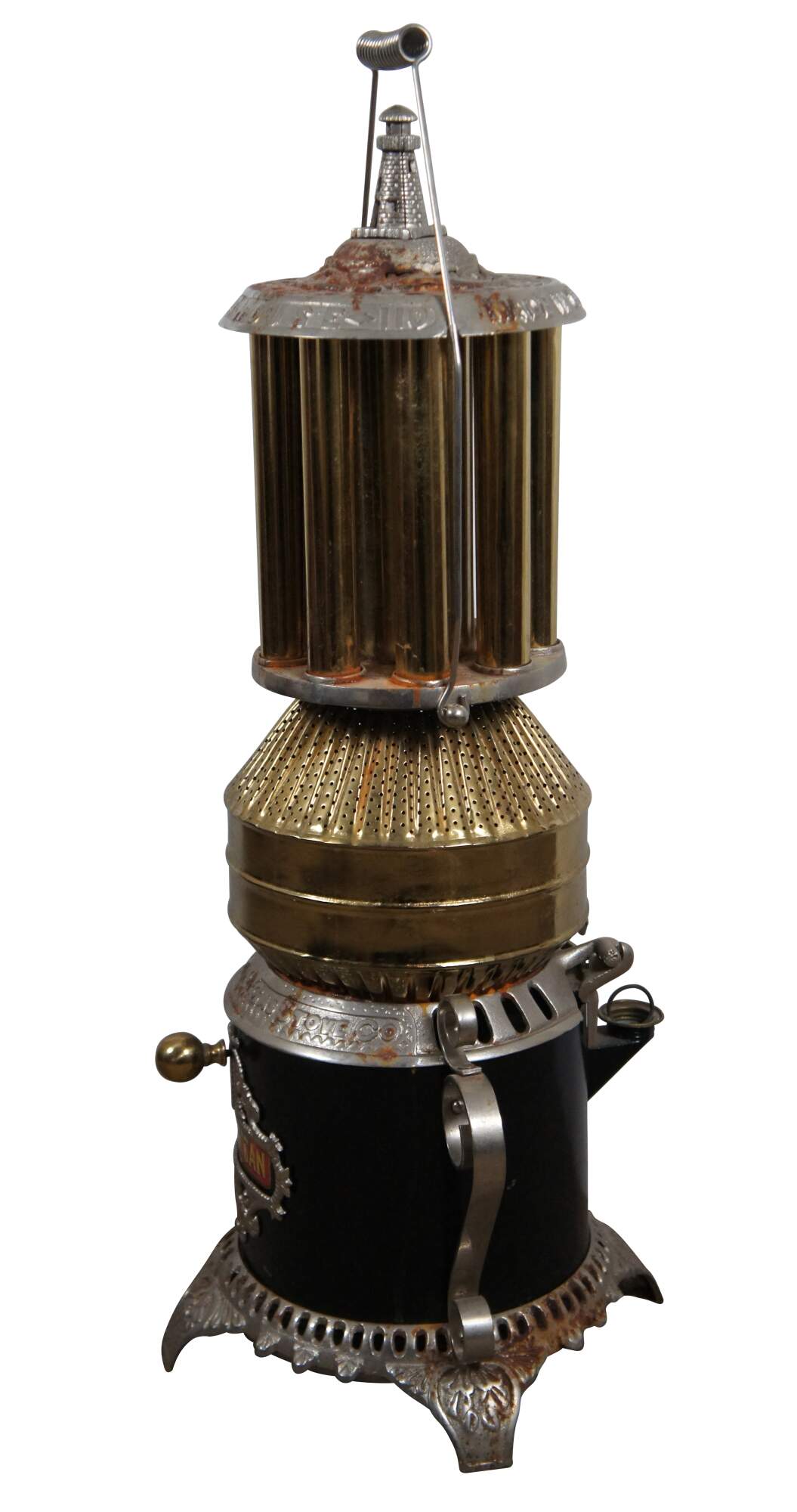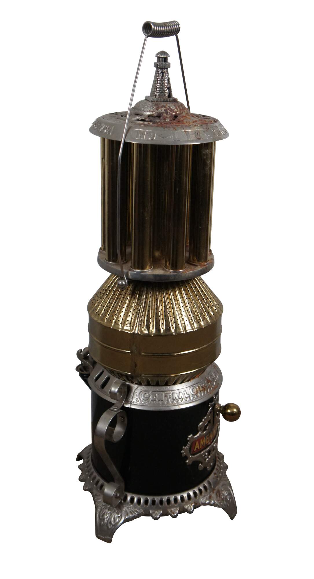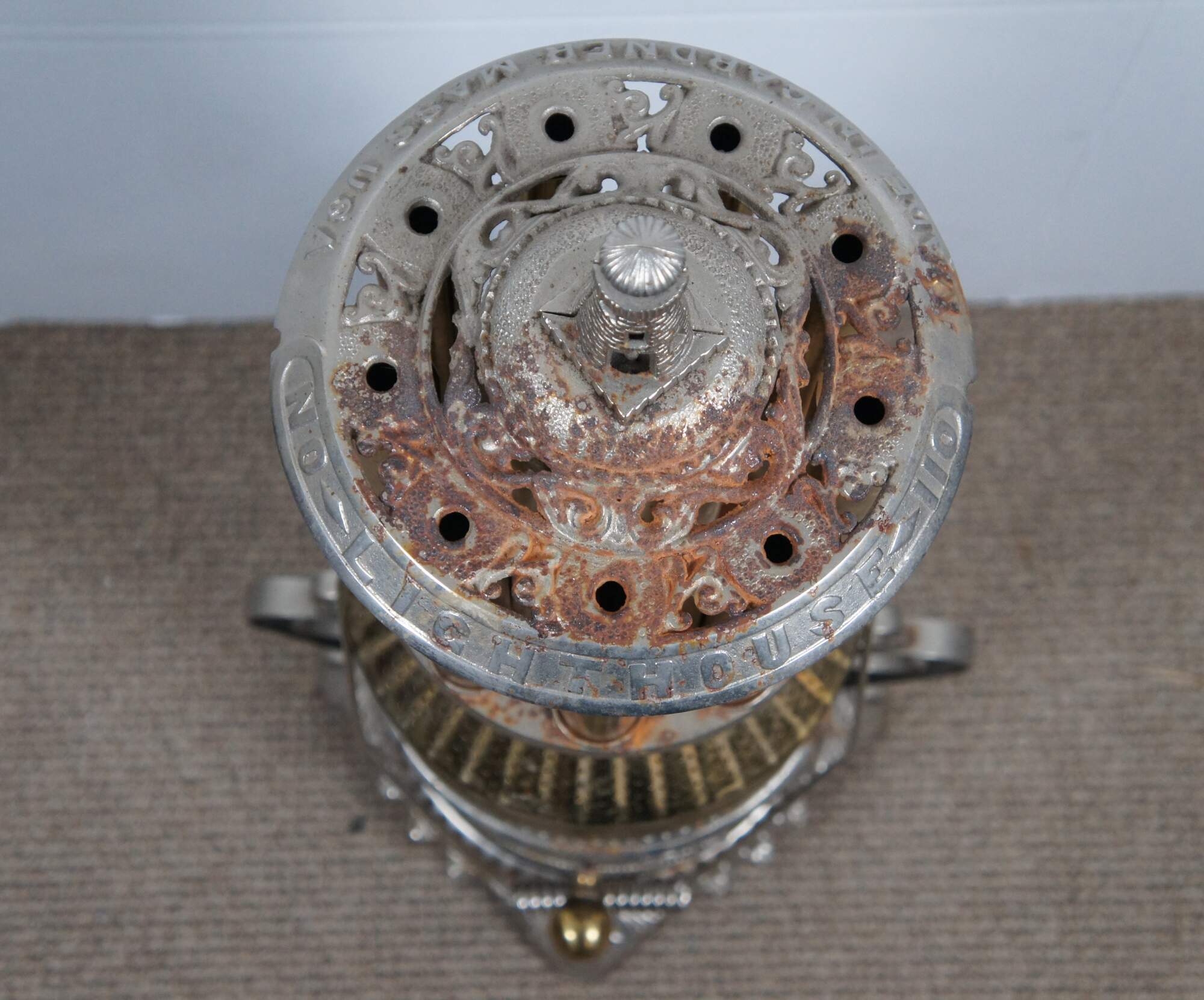 A rare and impressive American Central Oil & Gas Lighthouse 110 parlor or cabin heater. The heater has a lighthouse finial paying homage to the Cape May Lighthouse.