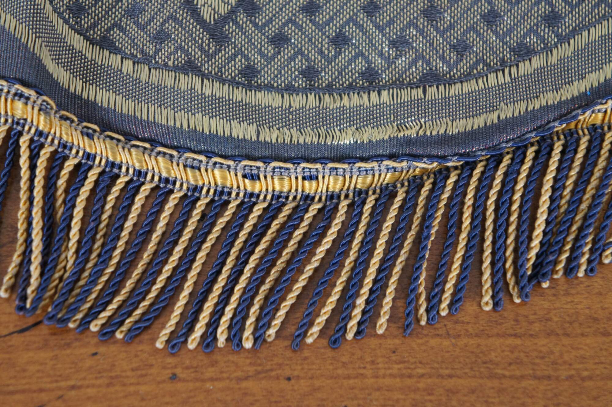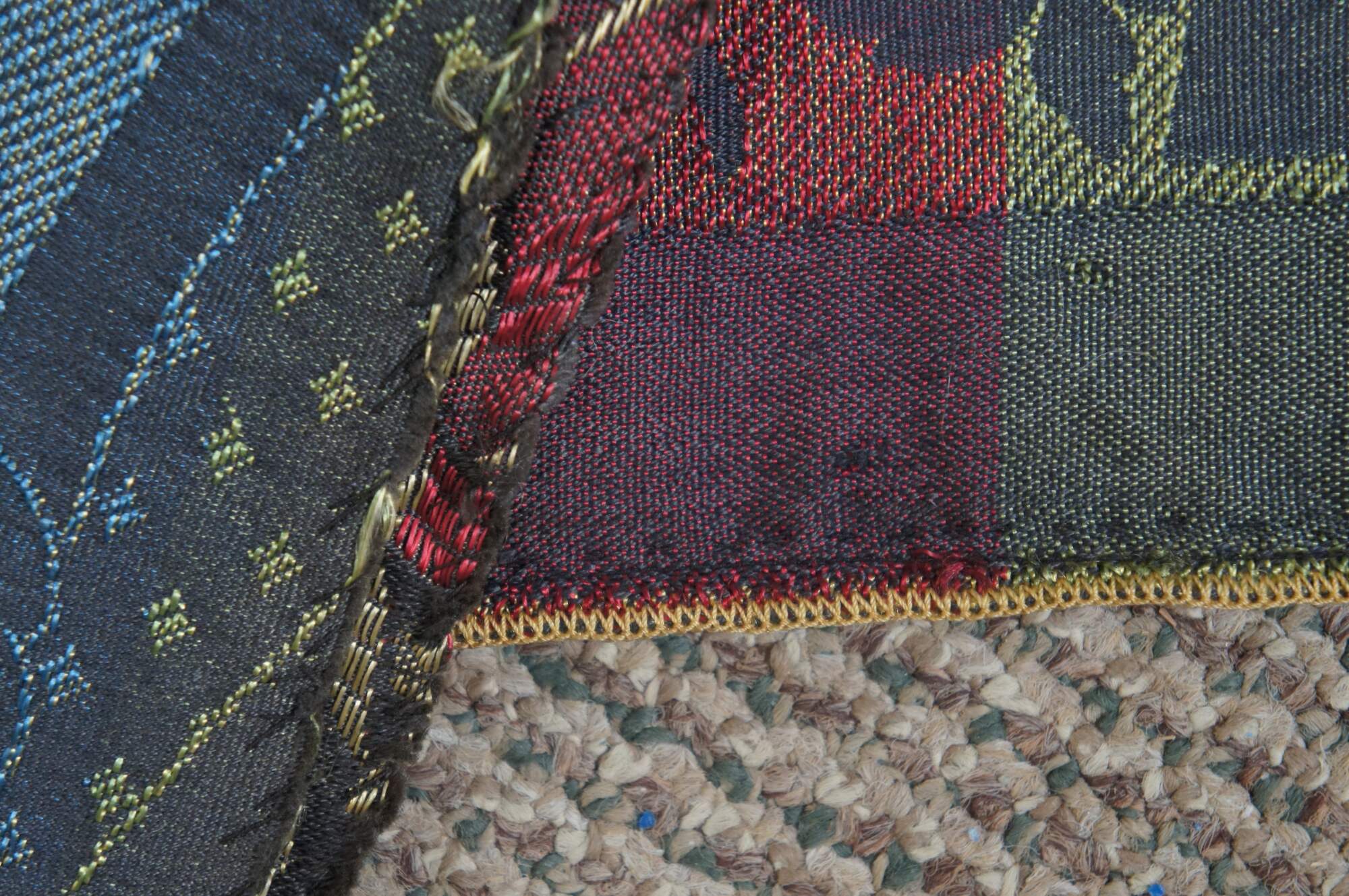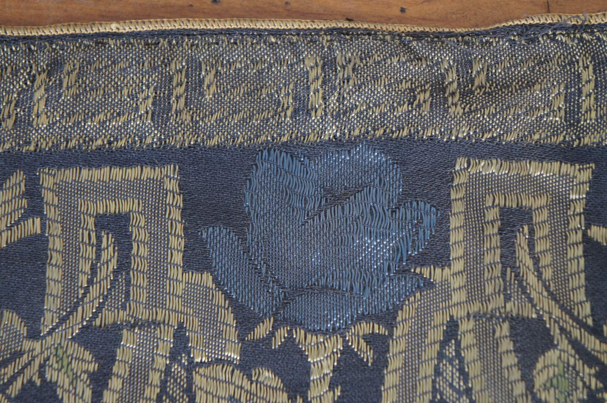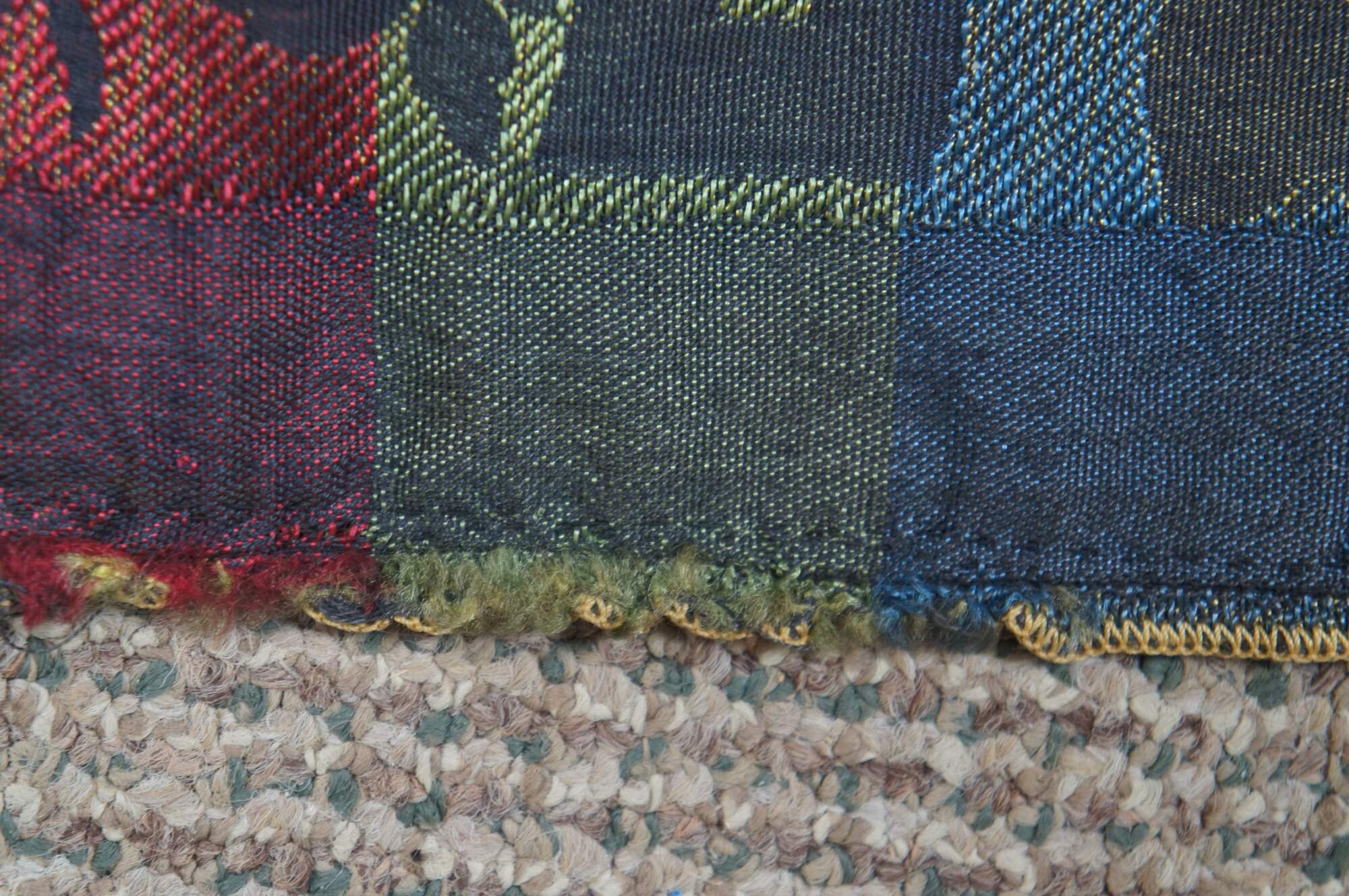 Vintage floral swag of roses stitched valence or tapestry with serpentine fringe.