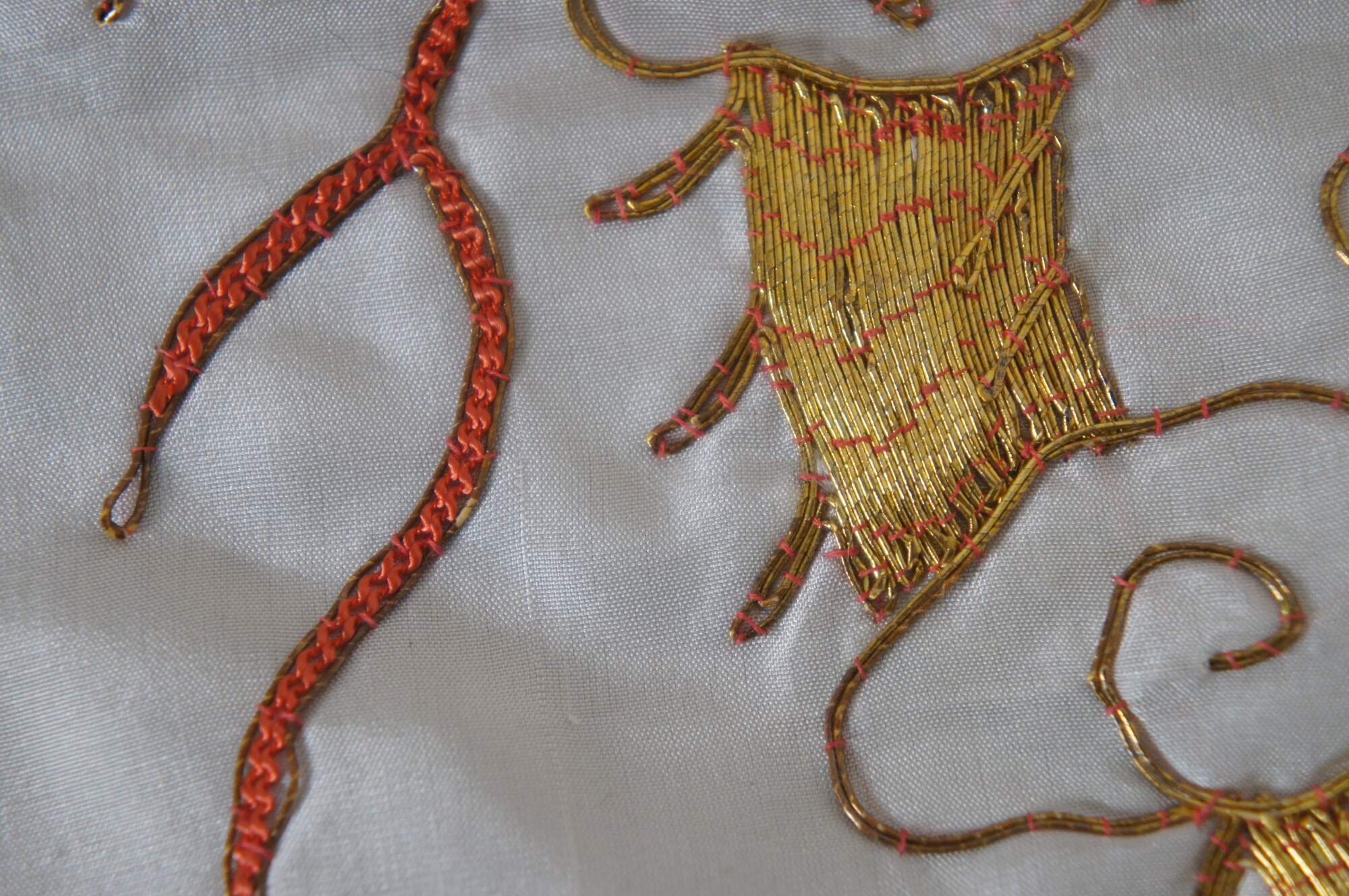 Vintage Japanese white silk embroidered Golden Dragon scarf or wrap.