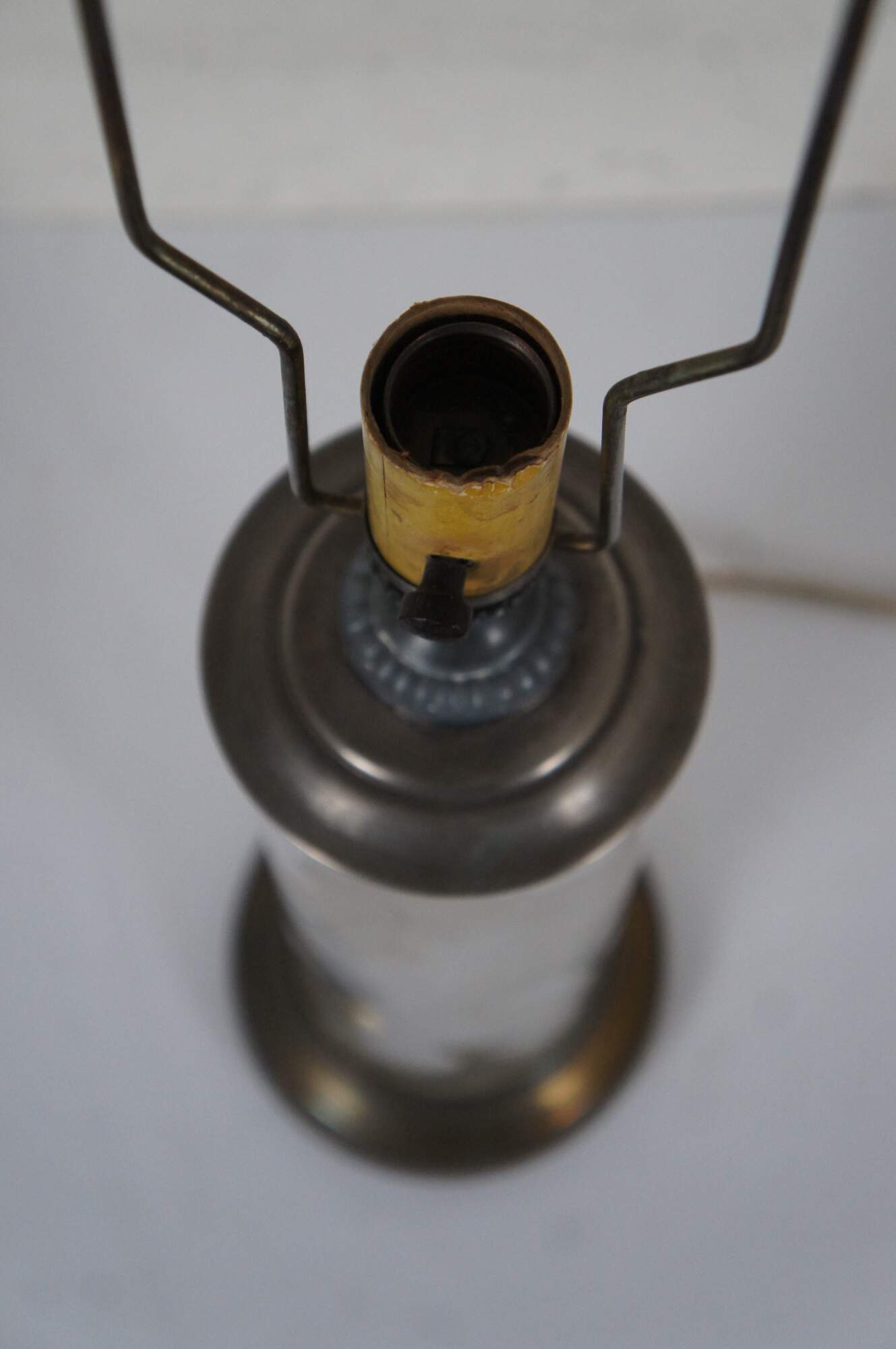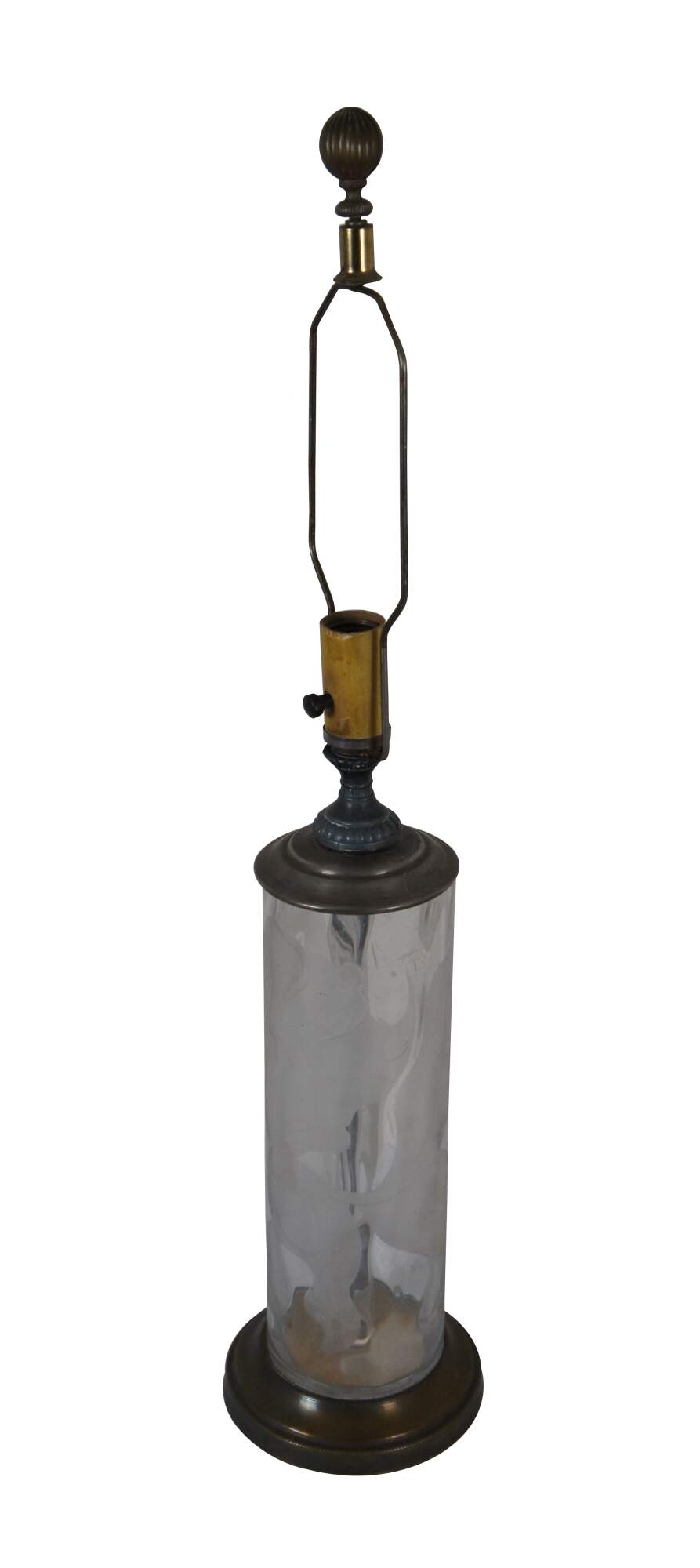 1930-40s etched glass cylinder table lamp with candlestick light.