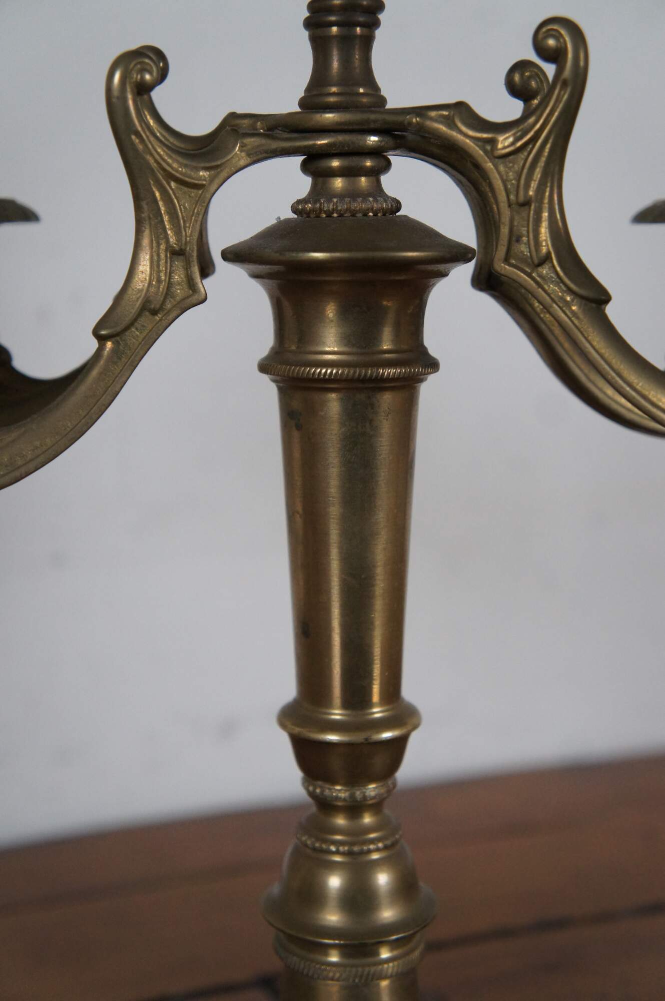 Two mid 20th century Art Nouveau style brass candlesticks featuring five lights with a floral acanthus motif.