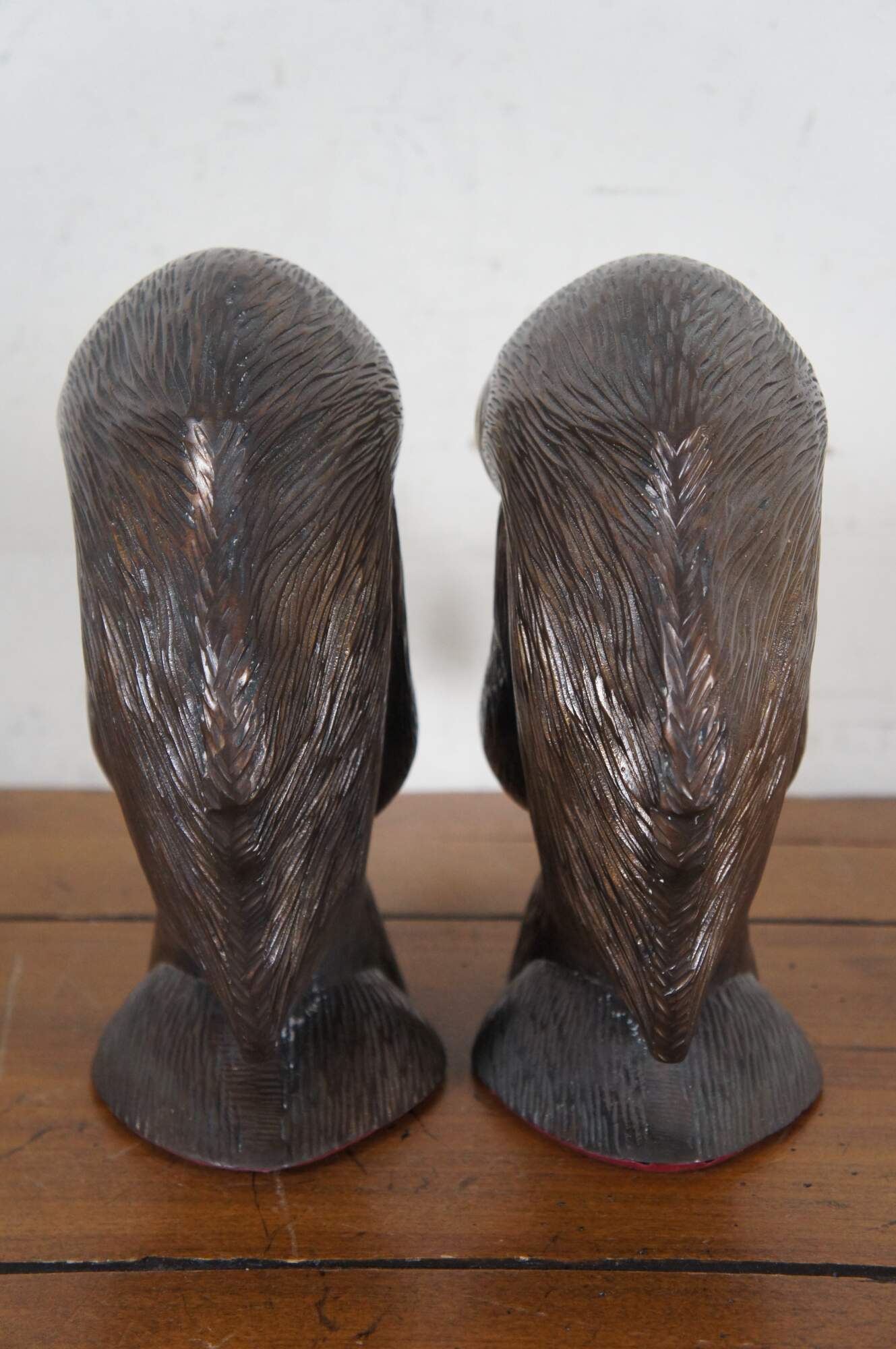 Impressive mid century pair of brass Hornbill Toucan bird bookends or sculptures. Made in Taiwan, Republic of China.