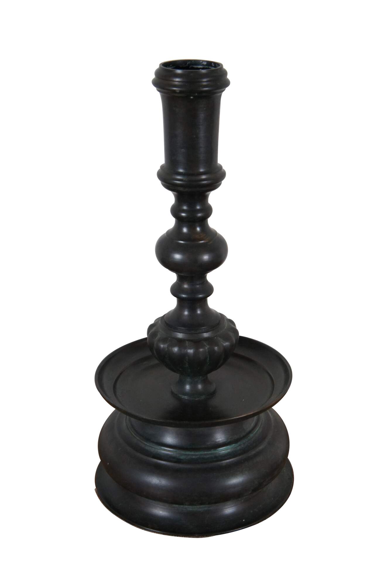 Monumental vintage heavy bronze altar / colonial style candle holder / candlestick, produced by Maitland Smith. Holds a 3” pillar candle (one included). Designed and Handmade in Thailand.