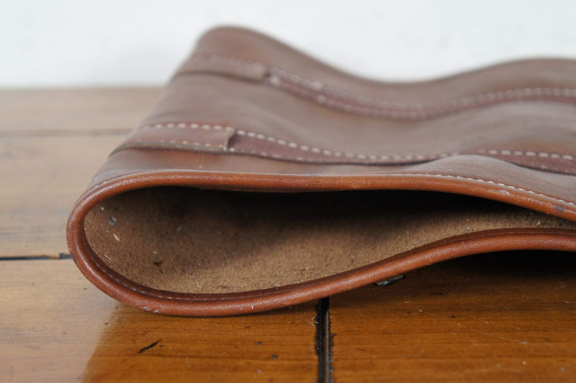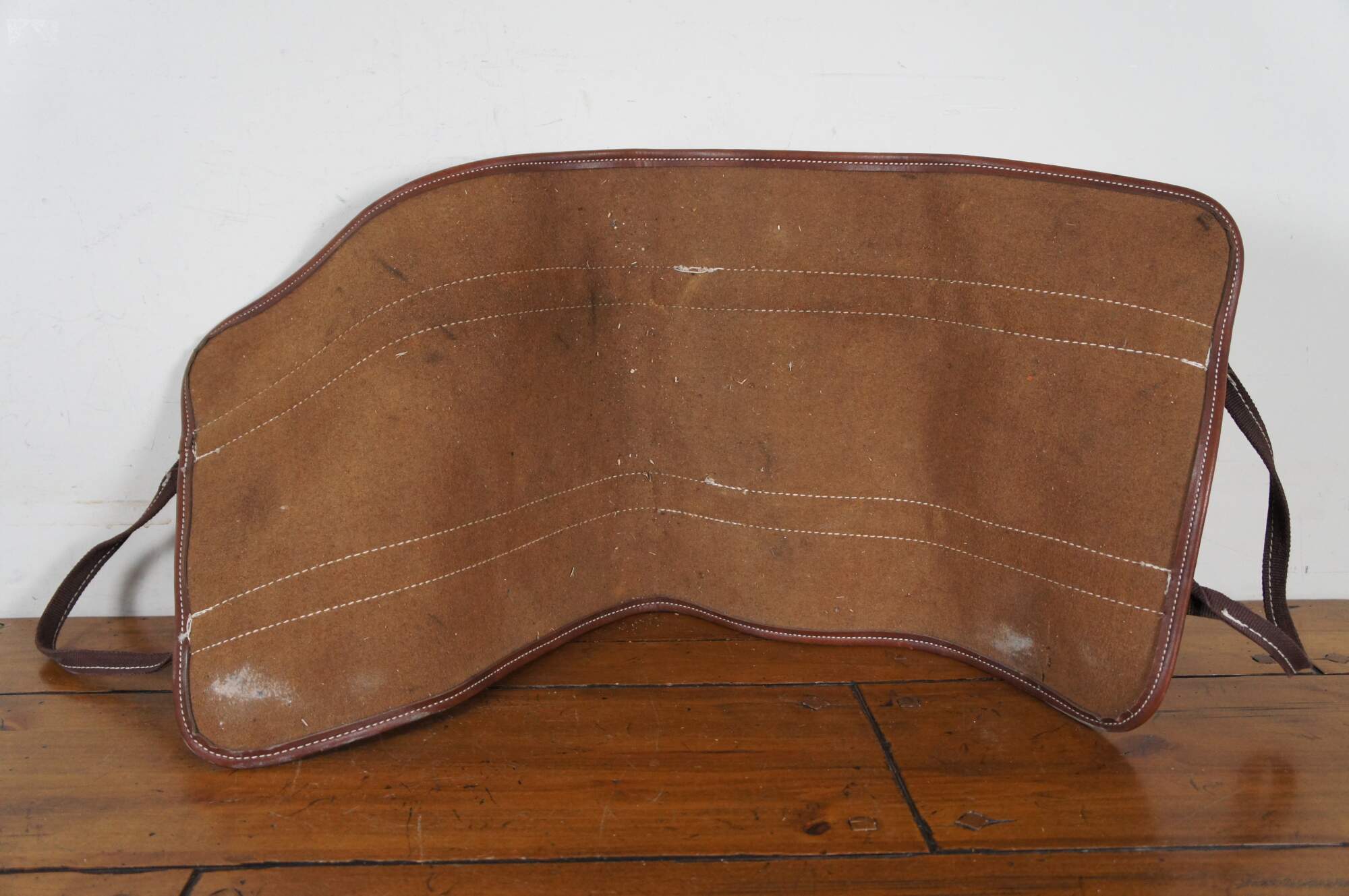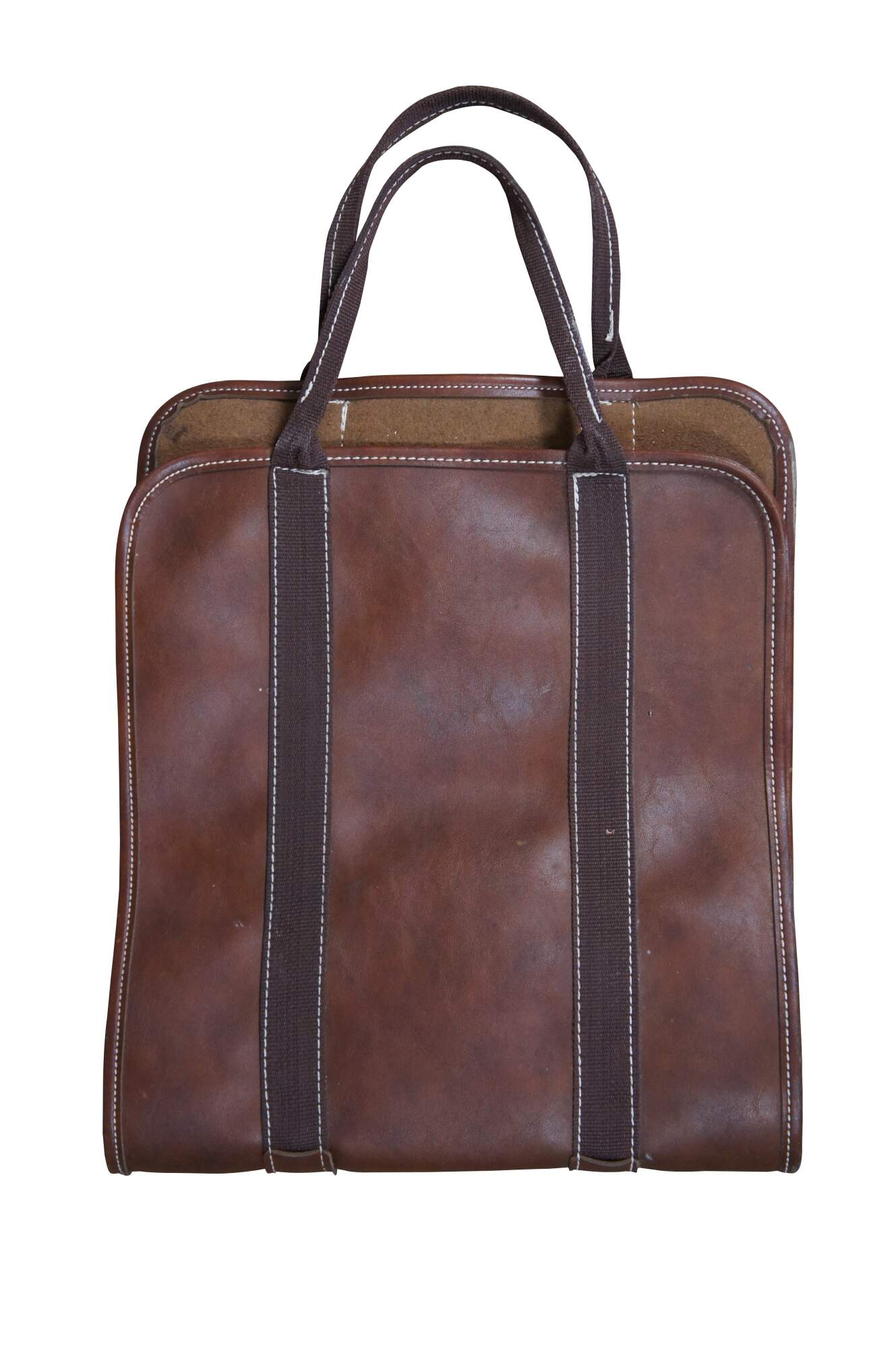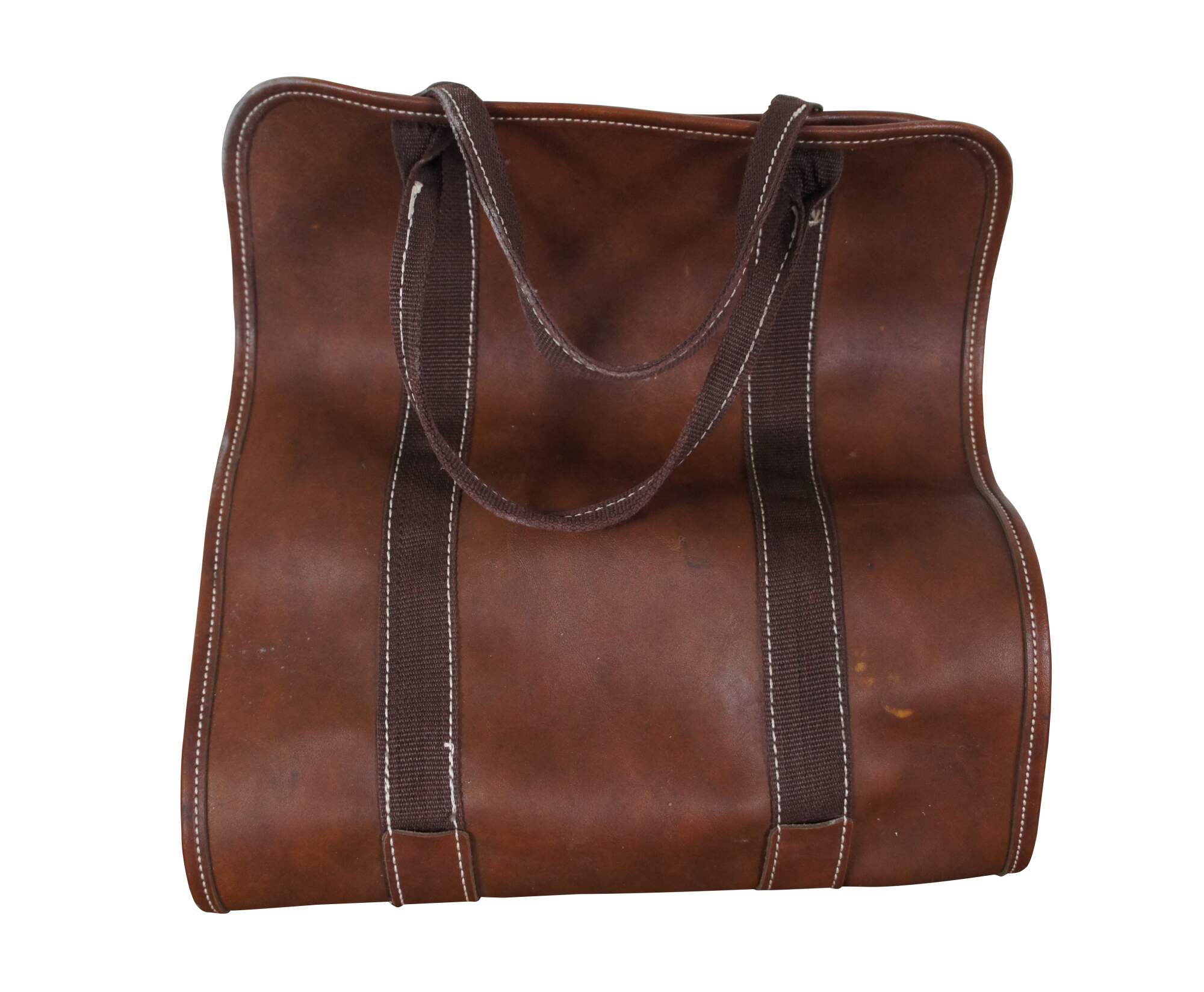 Vintage brown leather country farmhouse fireplace log holder / carrier case.