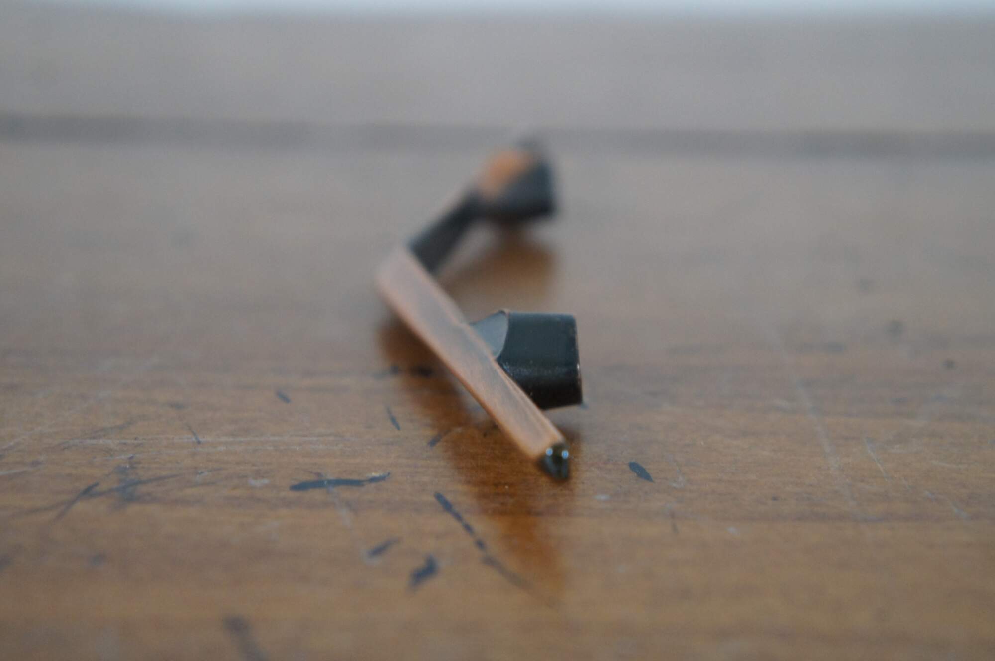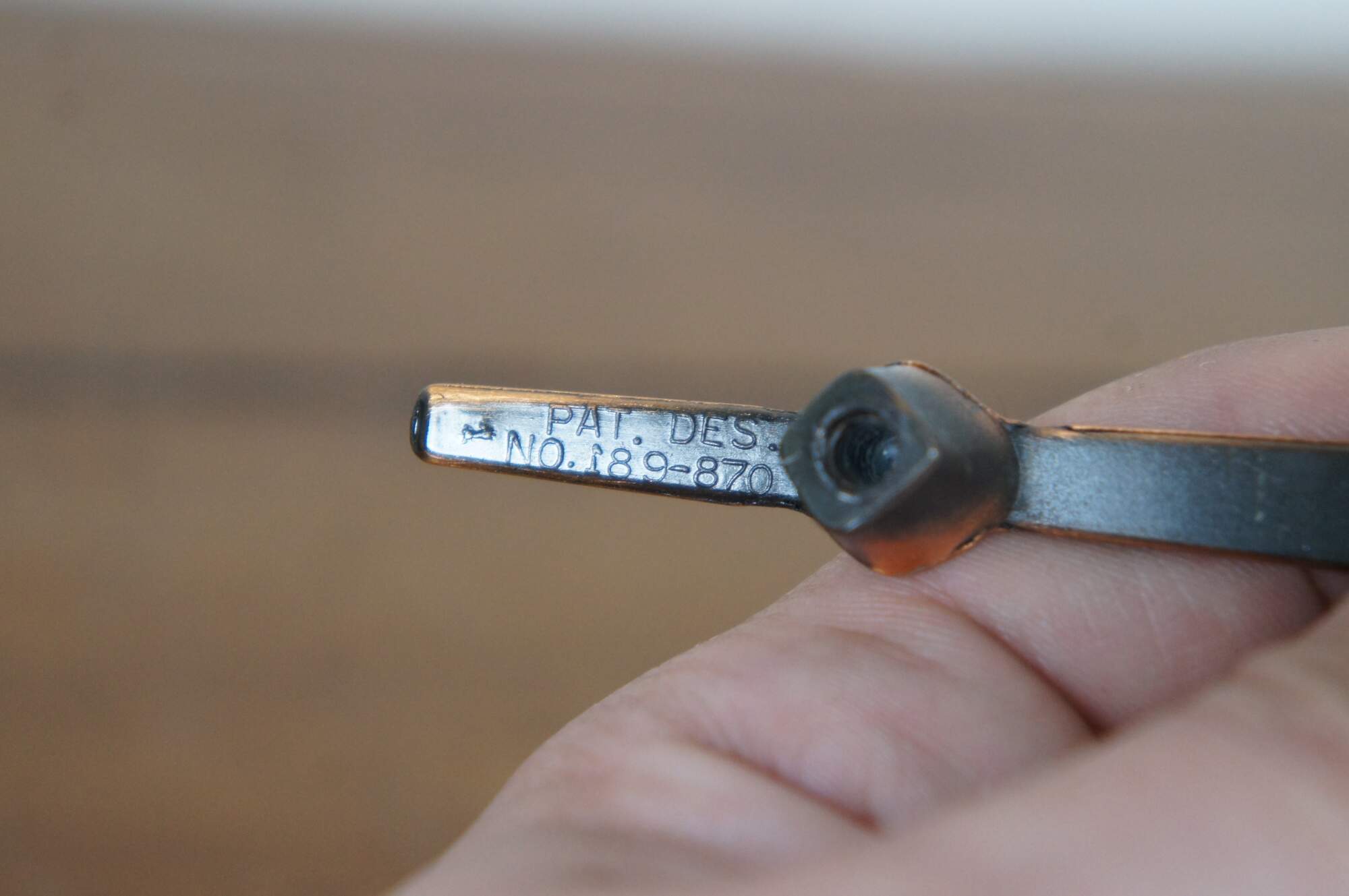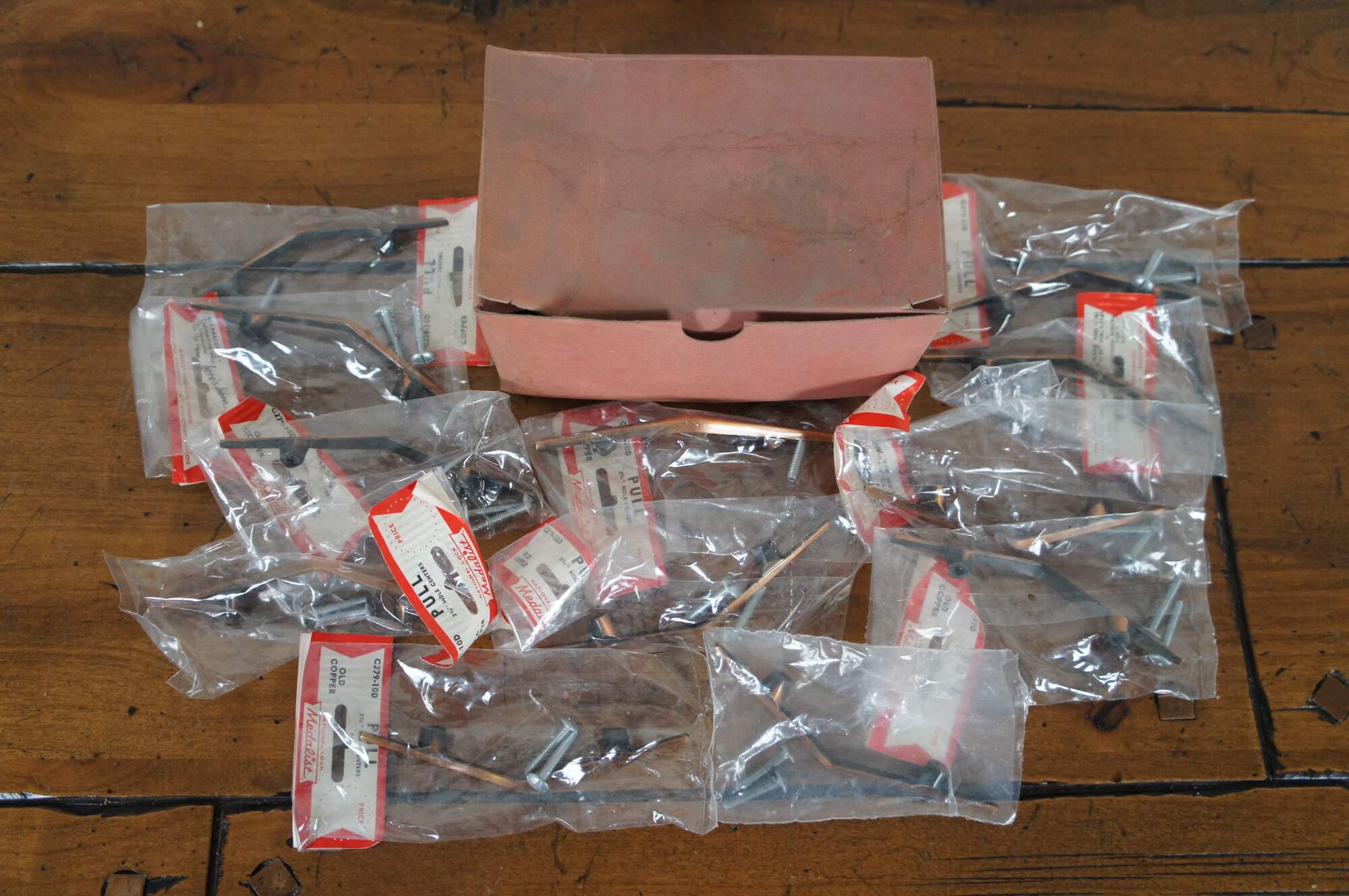 12 Available – mid century modern National Lock Co Medalist “Contract-Pak,” item number C279 Starflite MCM drawer pulls, die cast in a slender arrow shape in an Old Copper finish (no. 10D). 189-870. 61-717