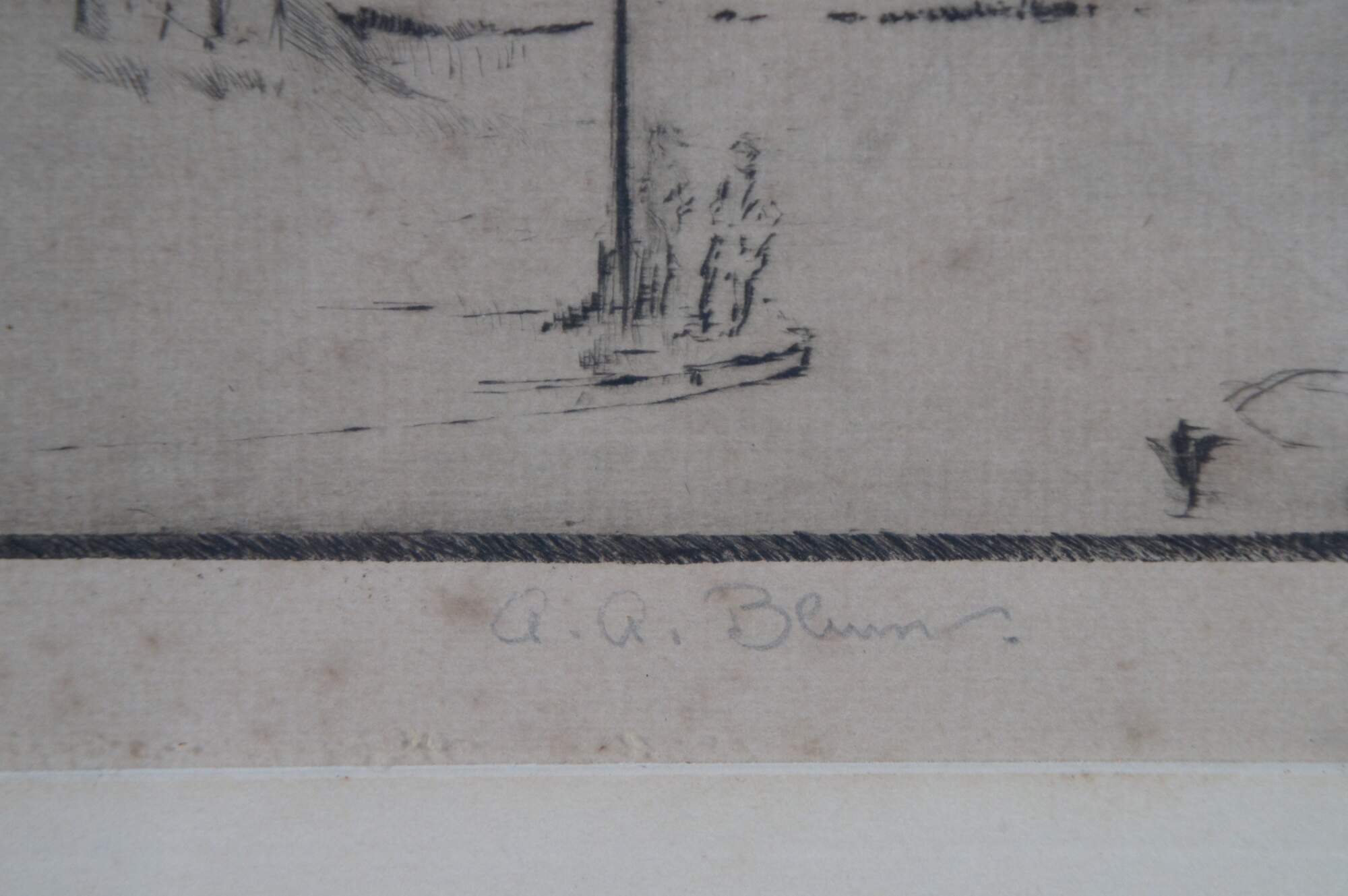Blum studied art at the National Academy of Design in New York and at the Cincinnati Art Academy with painter/etcher Frank Duveneck and in New York with etcher Charles F. Mielatz. Blum was a member of the Philadelphia Sketch Club. He exhibited his etchings throughout the 1930s and 40s. He was drafted into the U.S. Army in 1942. His work, primarily etching, focused on the everyday life of the people in the city and urban scenes.