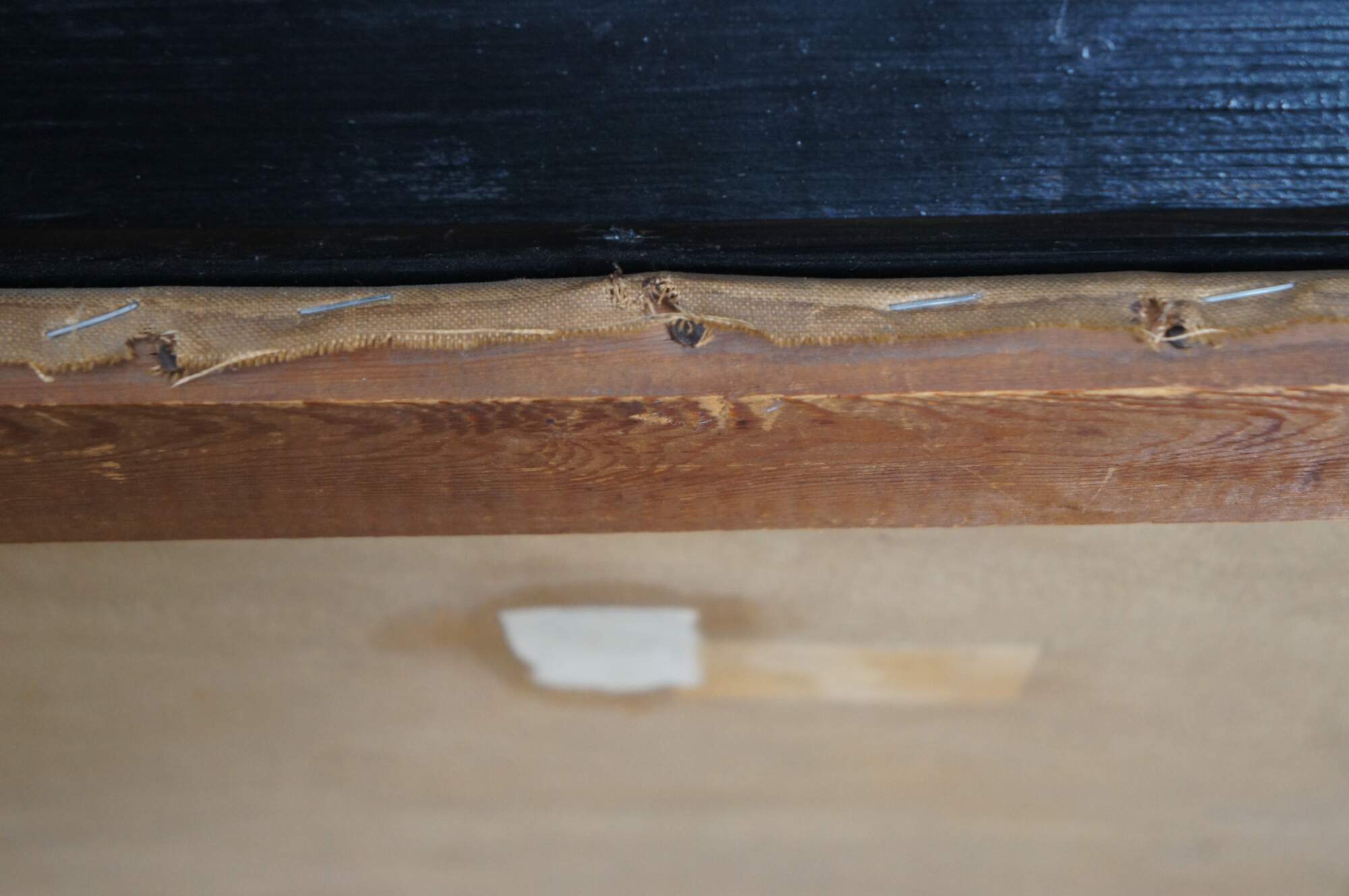 Fair condition - wear and distressing, crazing to paint, paint loss, several patches, wear to frame.
