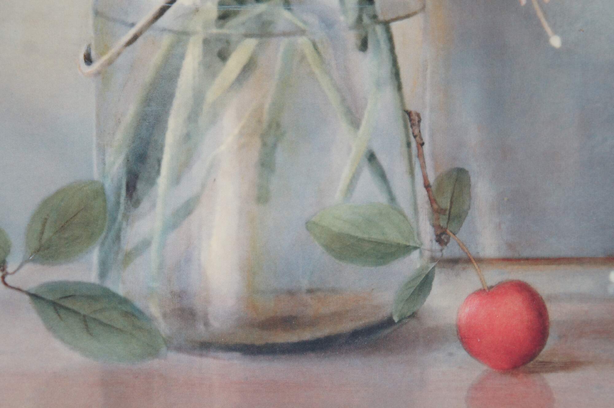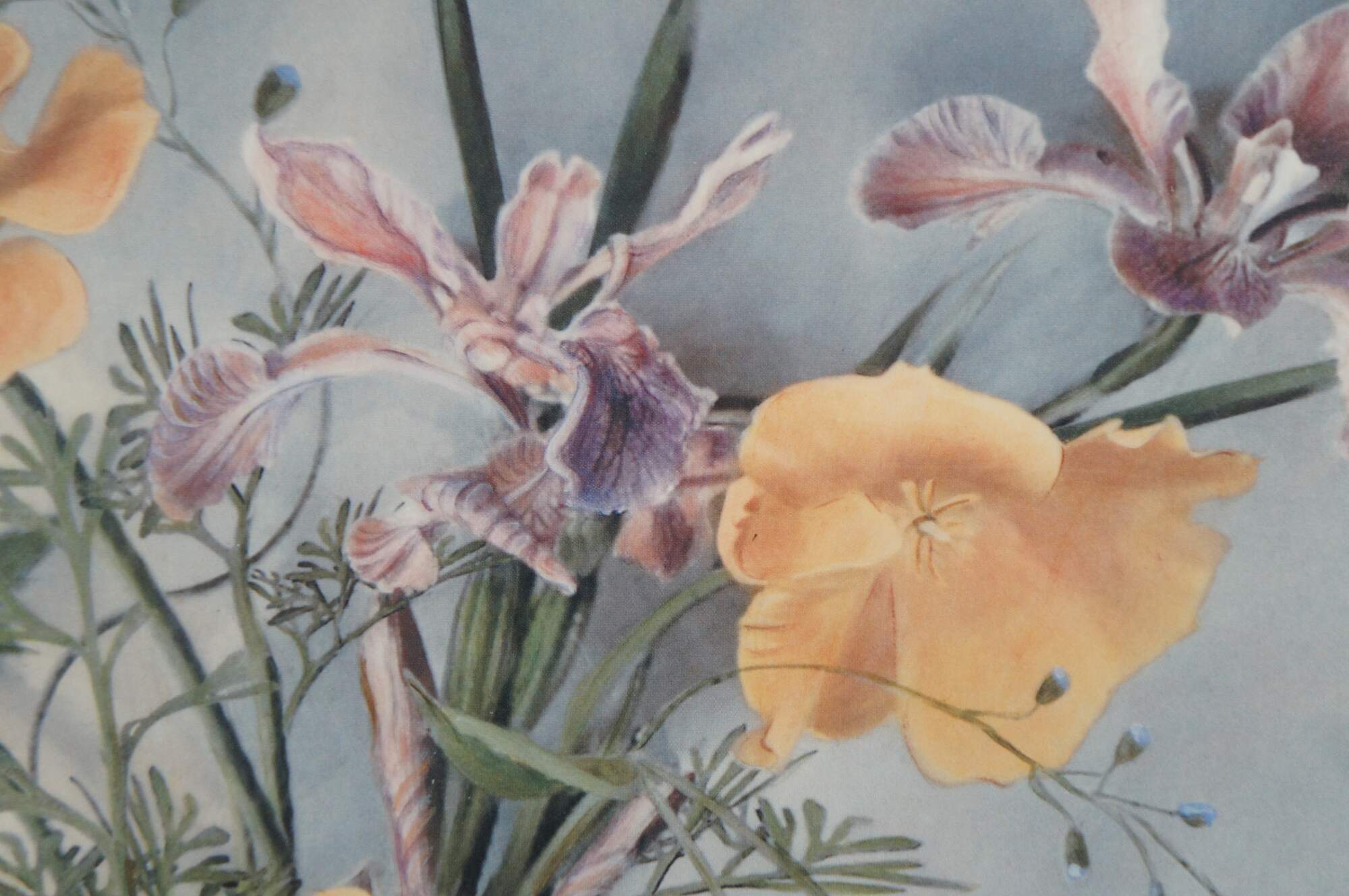Vintage framed still life print of a bouquet of flowers in a glass jar, titled Mixed Bouquet II by Sally Wetherby.