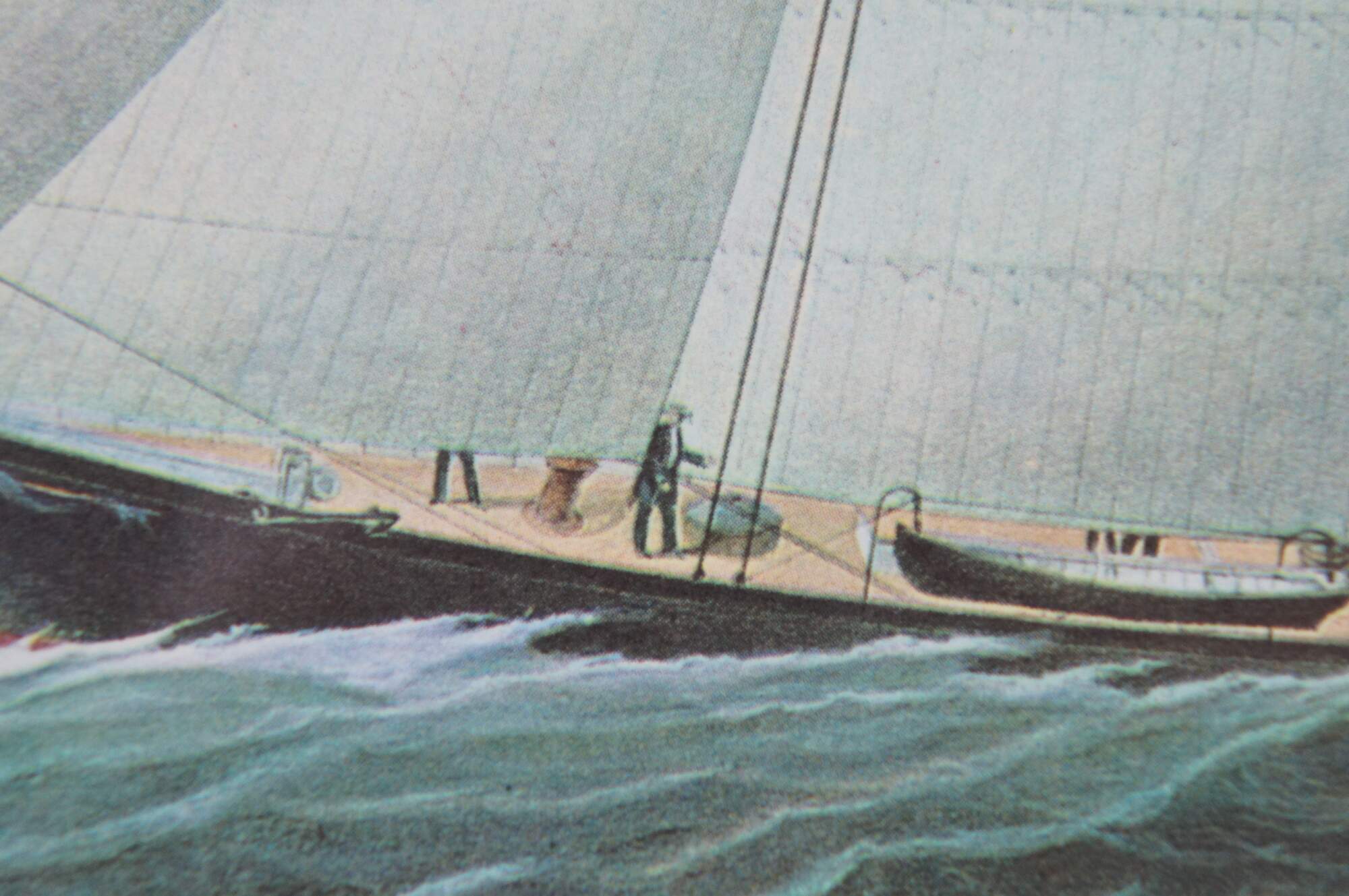 Vintage framed print of “The Yacht ‘Haze’ 87 Tons,” originally by C. Parsons, reprinted from the lithograph by Currier and Ives. Built By George Steers New York, 1861.