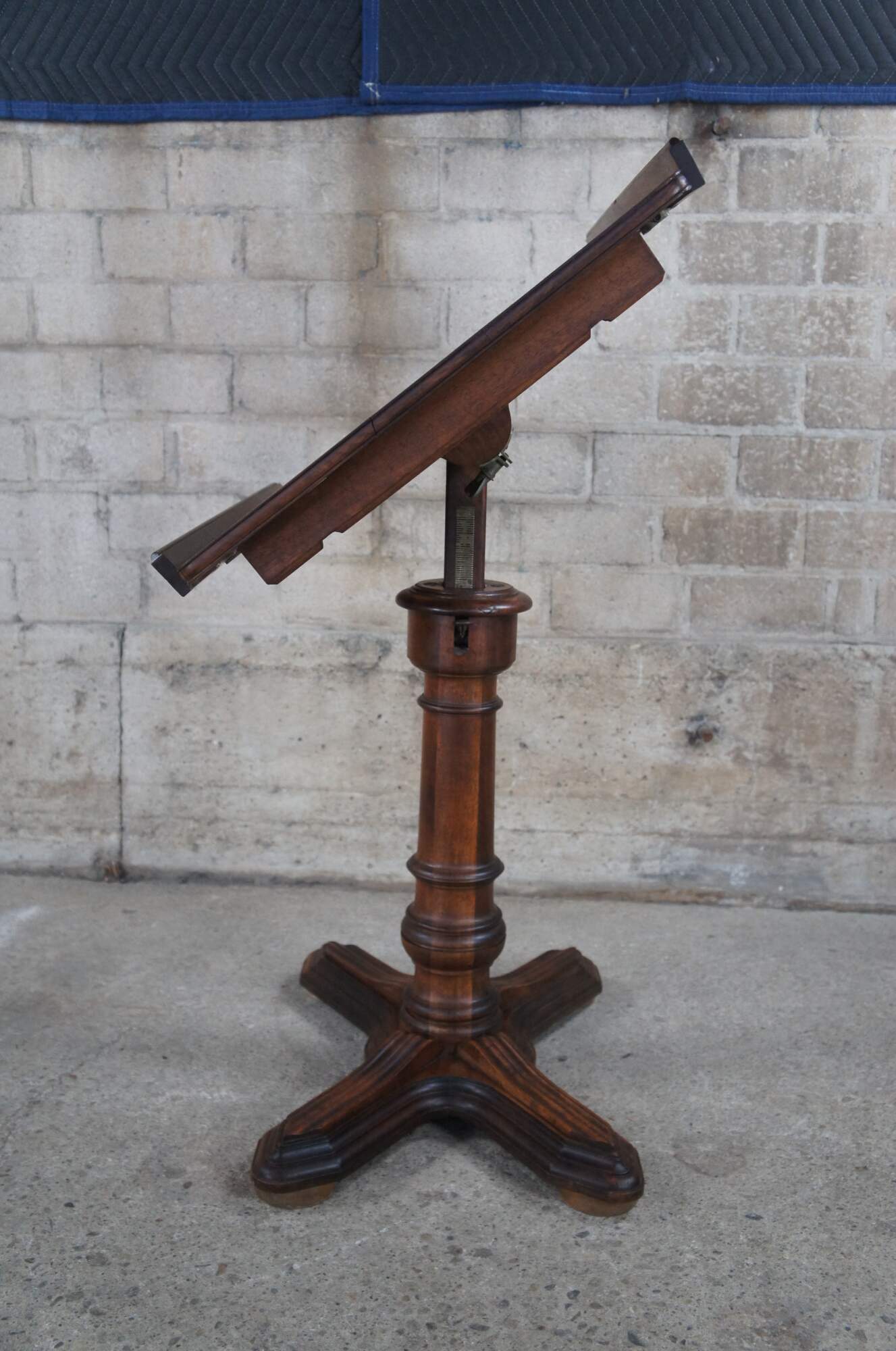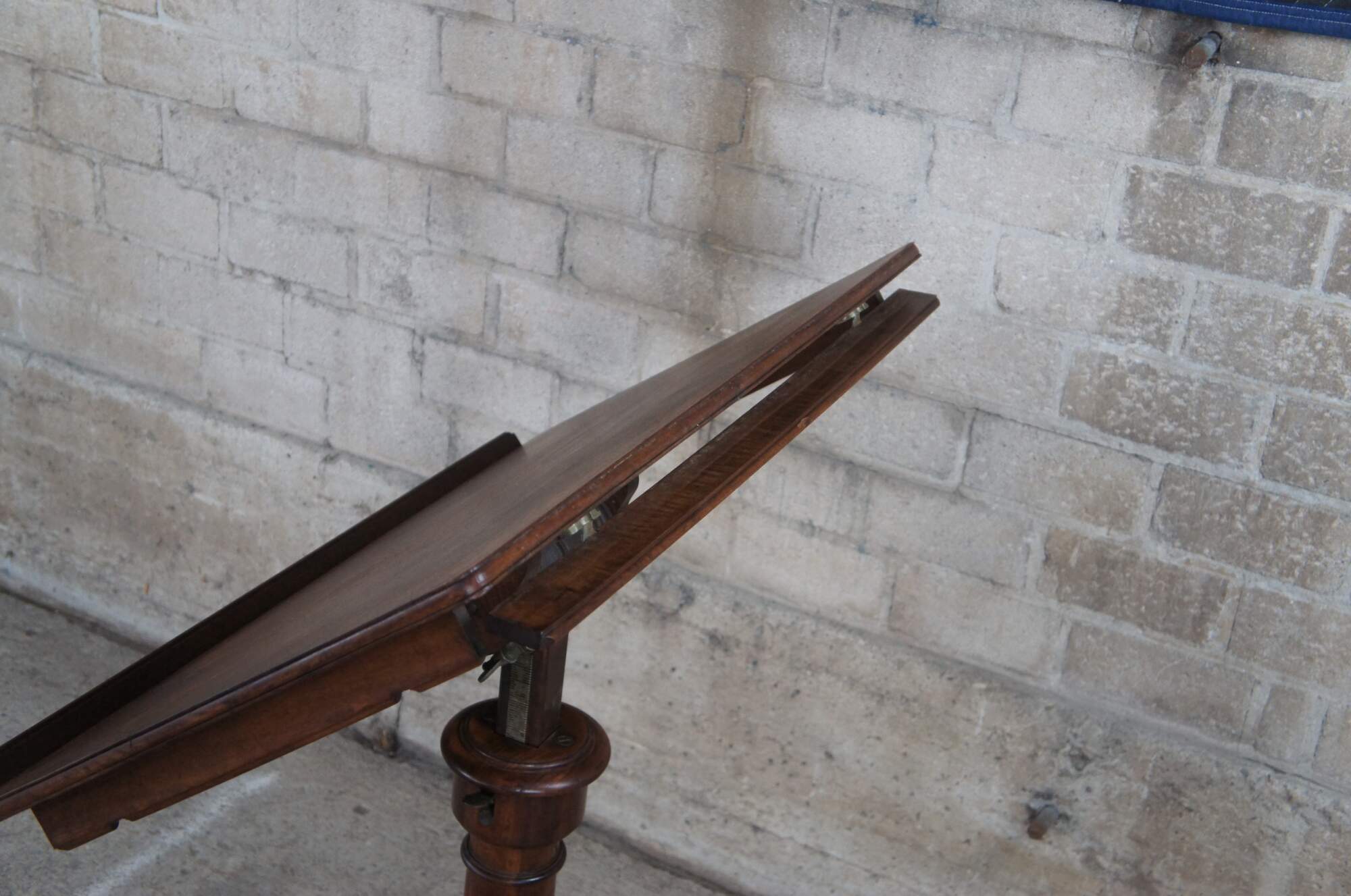 Antique circa 1870s drafting table or lecturn manufactured by Emile Chouanard, the director of the Aux Forges de Vul-cain in Paris at 3 rue Saint-Denis. This late 19th century drawing board / architect stand features a top that is completely tiltable and sliding thanks to two unique systems adjustable by butterflies.