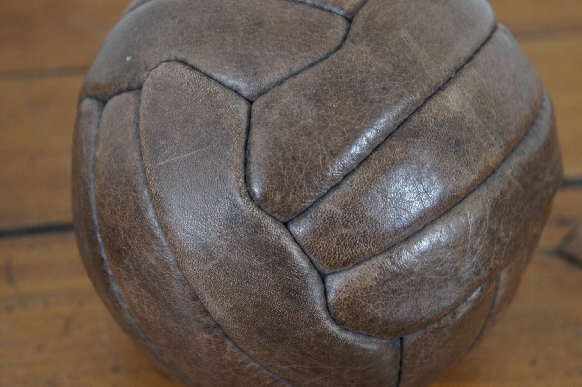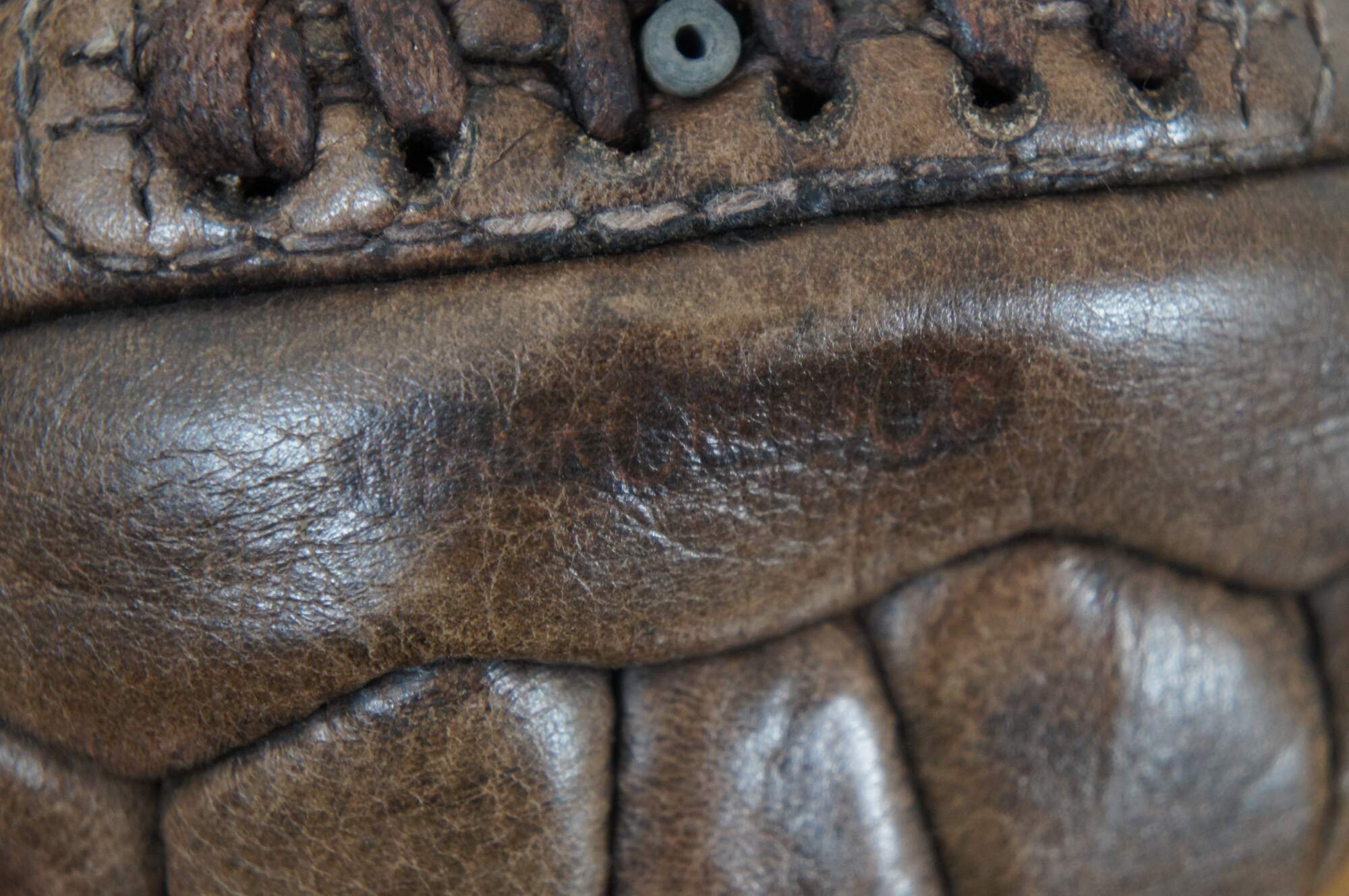 Pair of circa 1930s brown leather footballs / soccer balls manufactured by Mark Cross Company. Made in England.