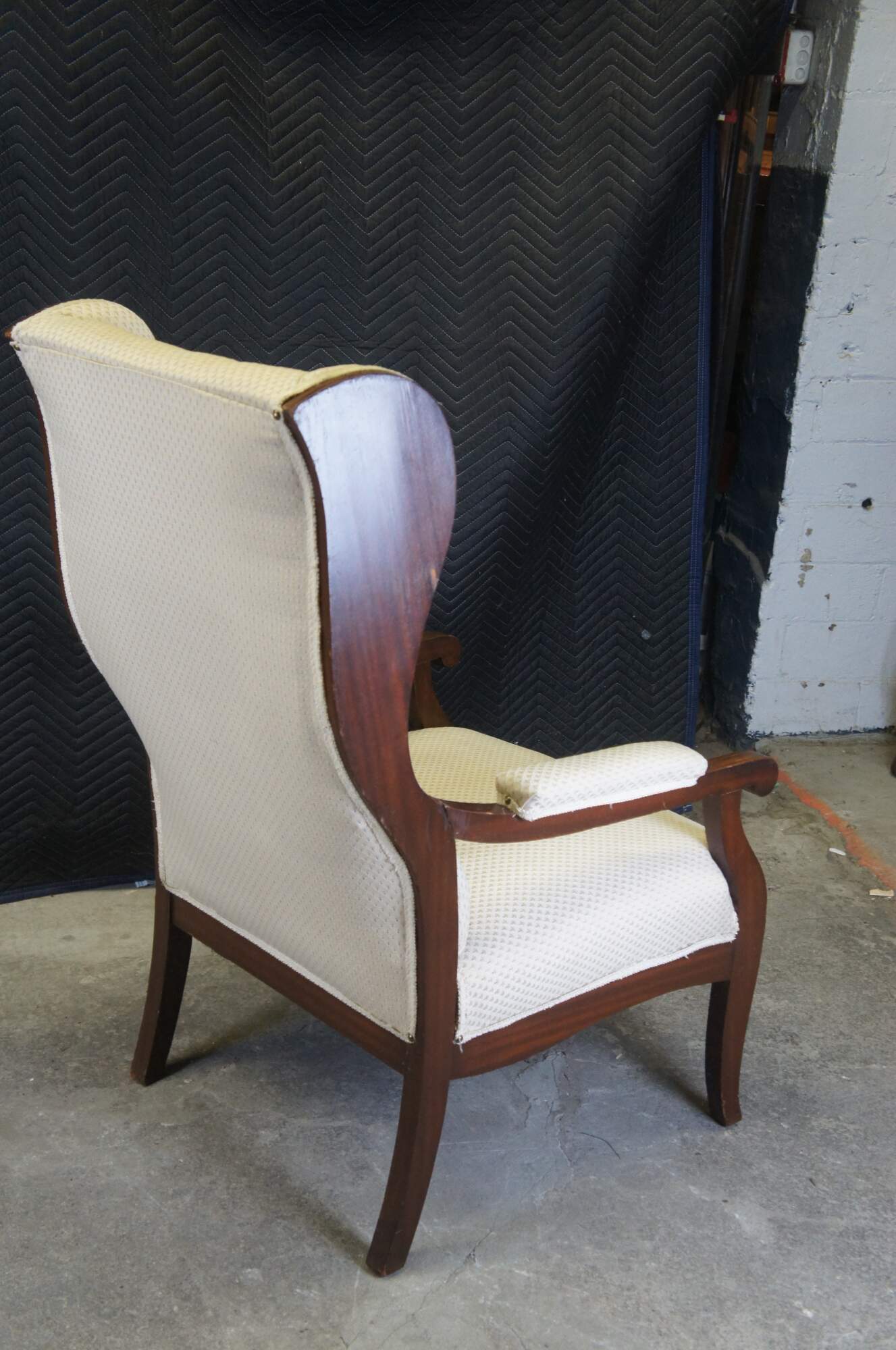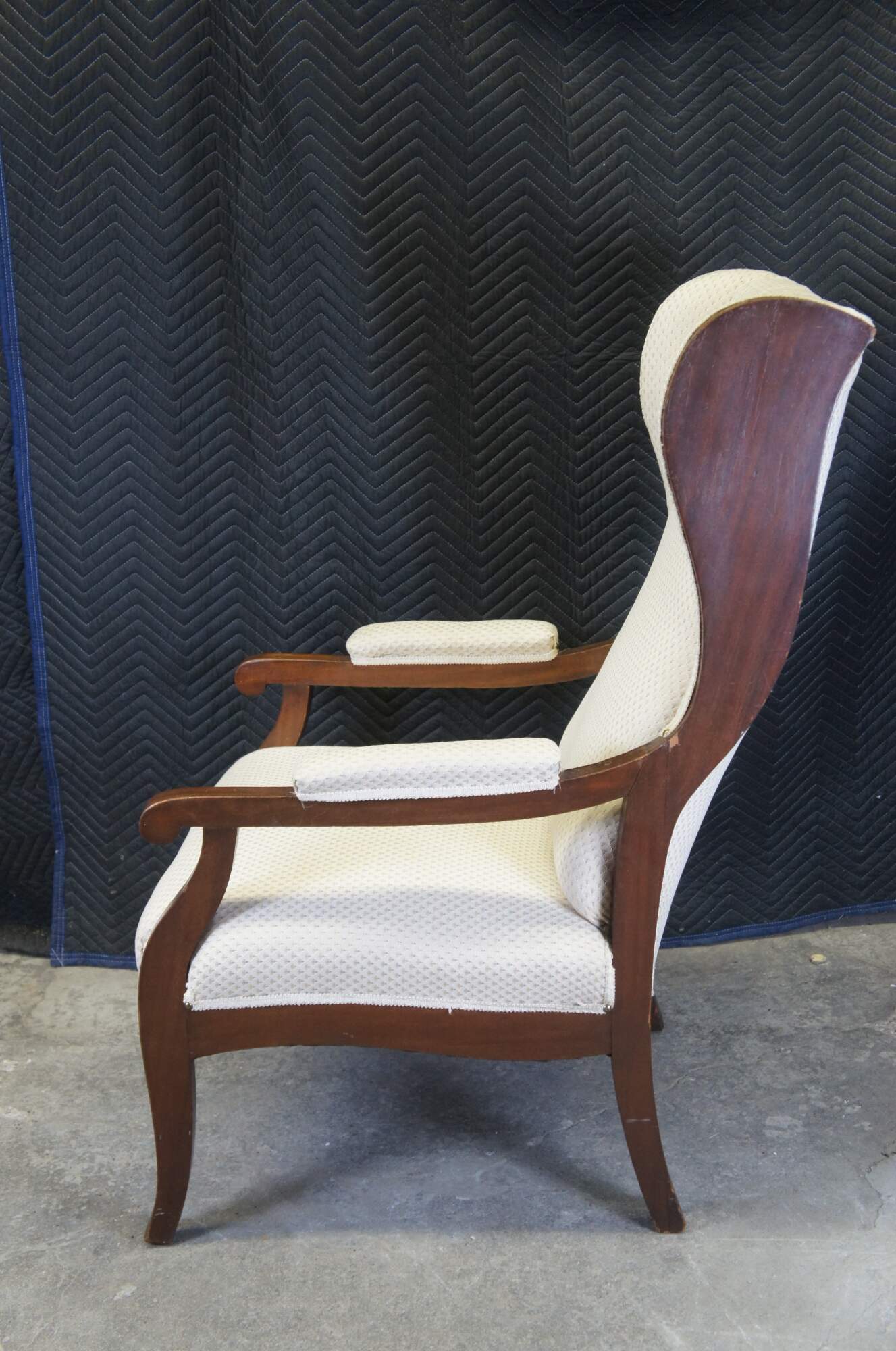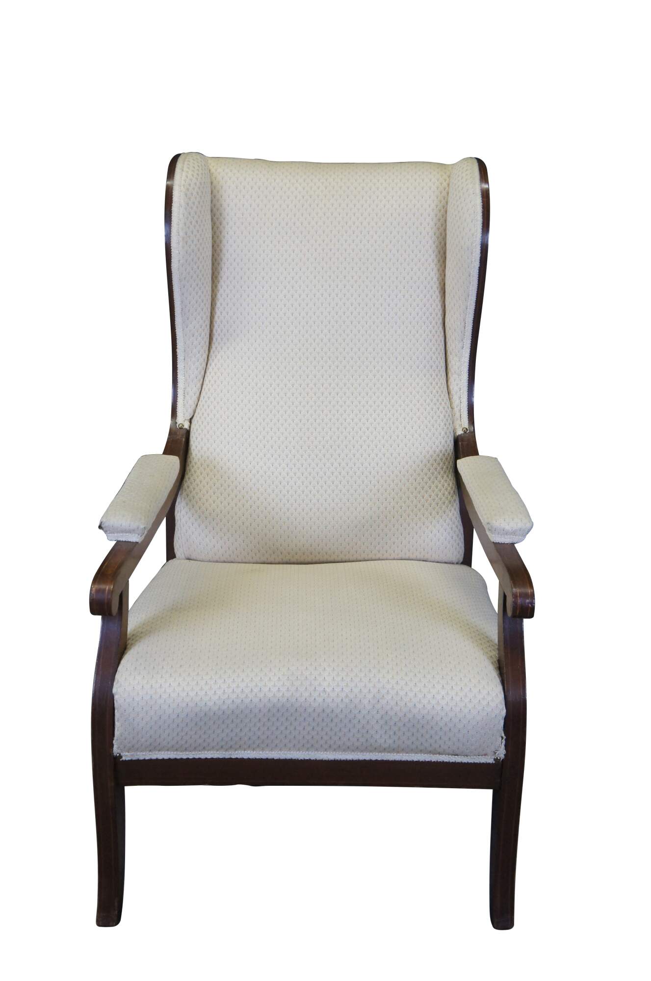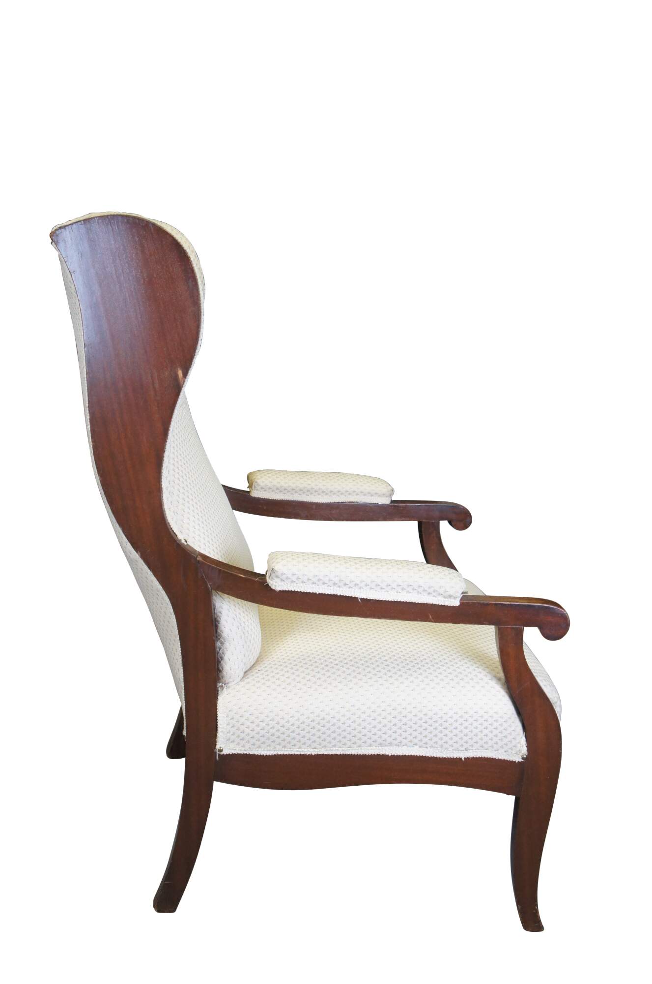 Antique mid to early 19th century German Biedermeier library / lounge armchair. Made of mahogany featuring traditional form with fauteuil padded arms and flared ear / wing back with great lumbar / lower back support. From Hamburg Germany.