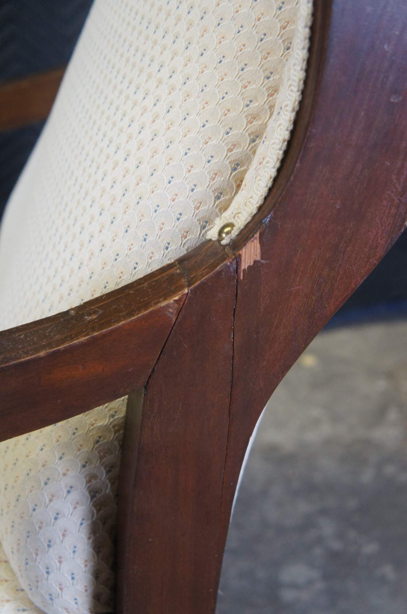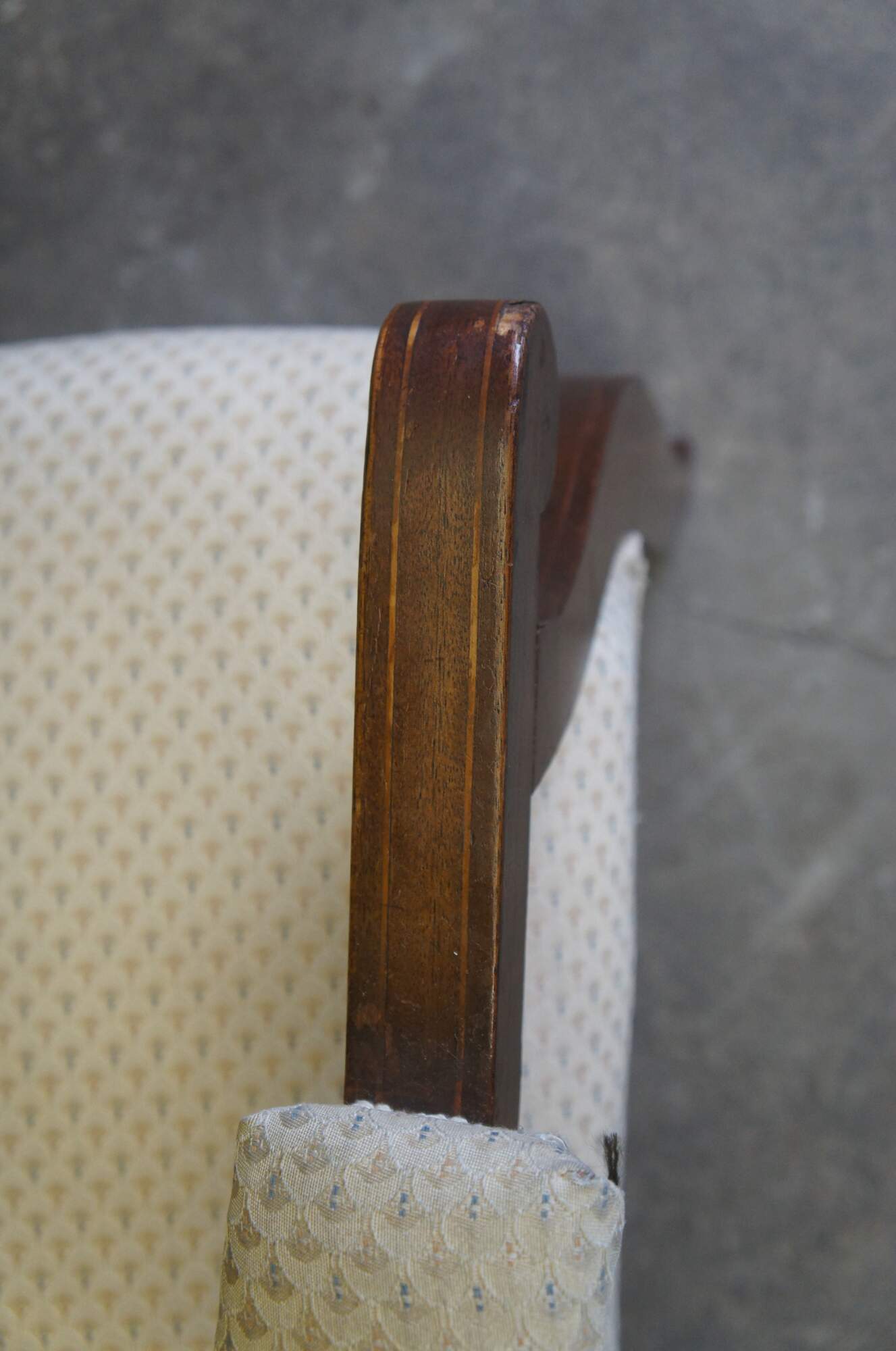 Good antique condition, wear and distressing commensurate with age and use, missing veneer, rubbing / finish loss, splitting.