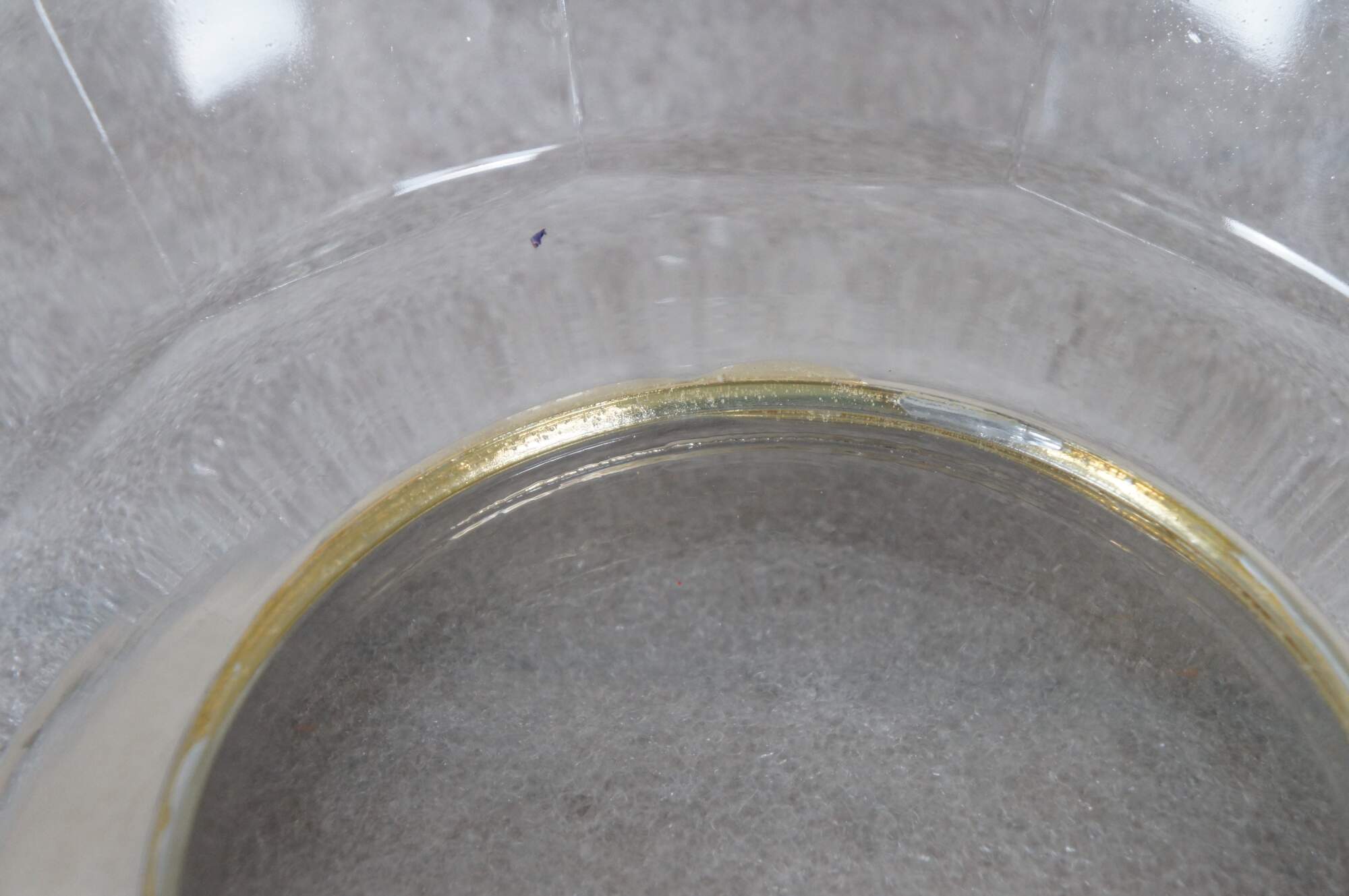 Mid to late 20th century pressed glass centerpiece / fruit bowl featuring a mid century modern faceted design and silver plate base.