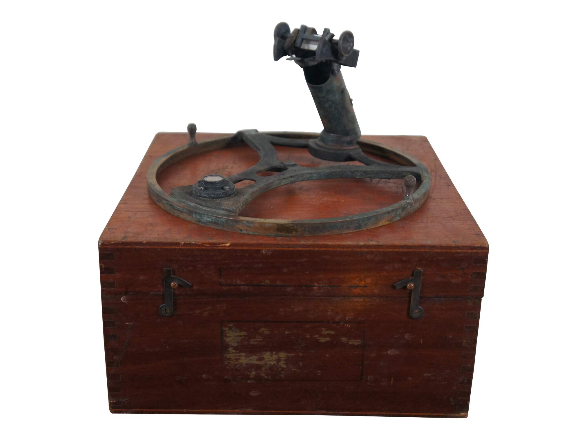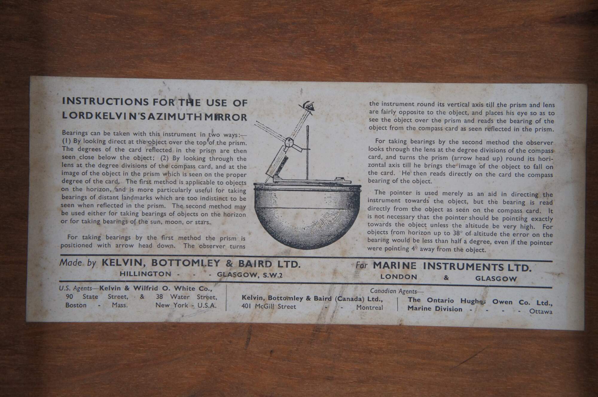 Lord Kelvin's Azimuth Mirror and dovetailed wooden storage carrying case. Made by Kelvin, Bottomly & Baird Ltd for Marine Instruments Ltd. Circa 1910-30s Made in Great Britain.