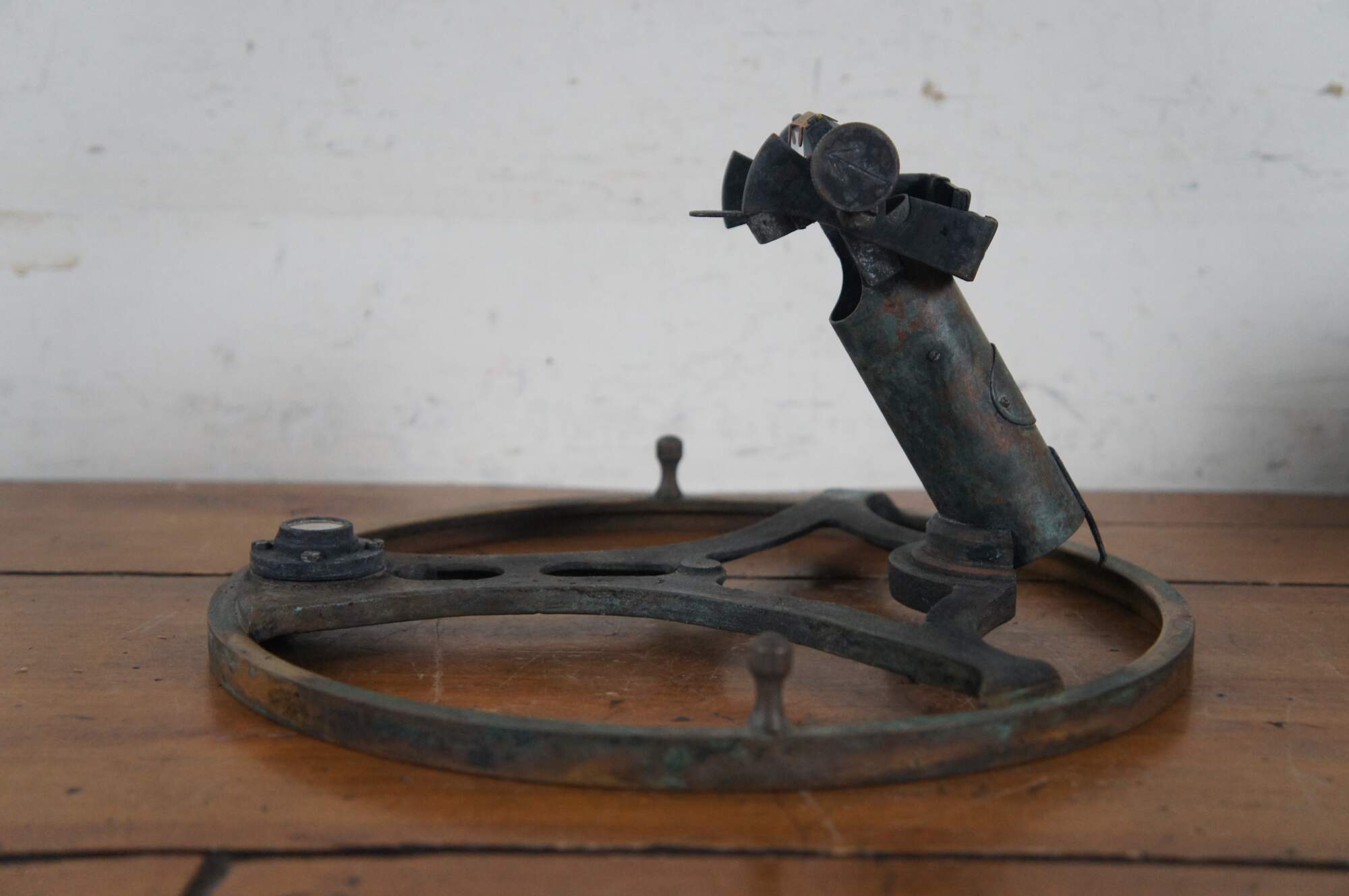 An azimuth circle is a navigation instrument in the form of a brass ring with sights that attaches to the top of a compass to enable the user to take accurate bearings on the sun and terrestrial objects.