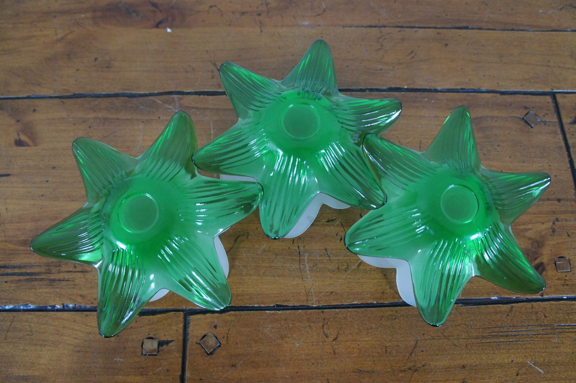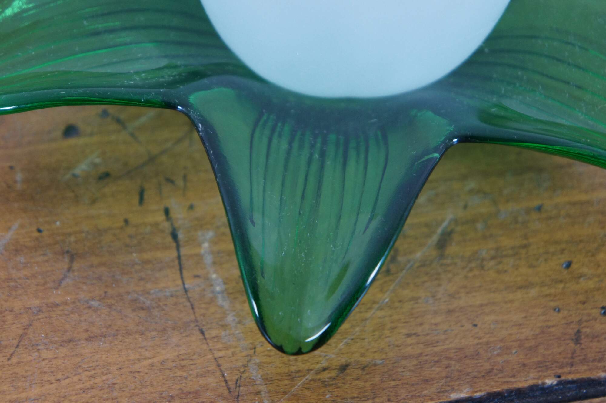 Set of three late 20th century Studio Nova votive / tea light tulip or daffodil shaped floral candle holders. Green leaf shaped bases with white frosted glass petal tops.