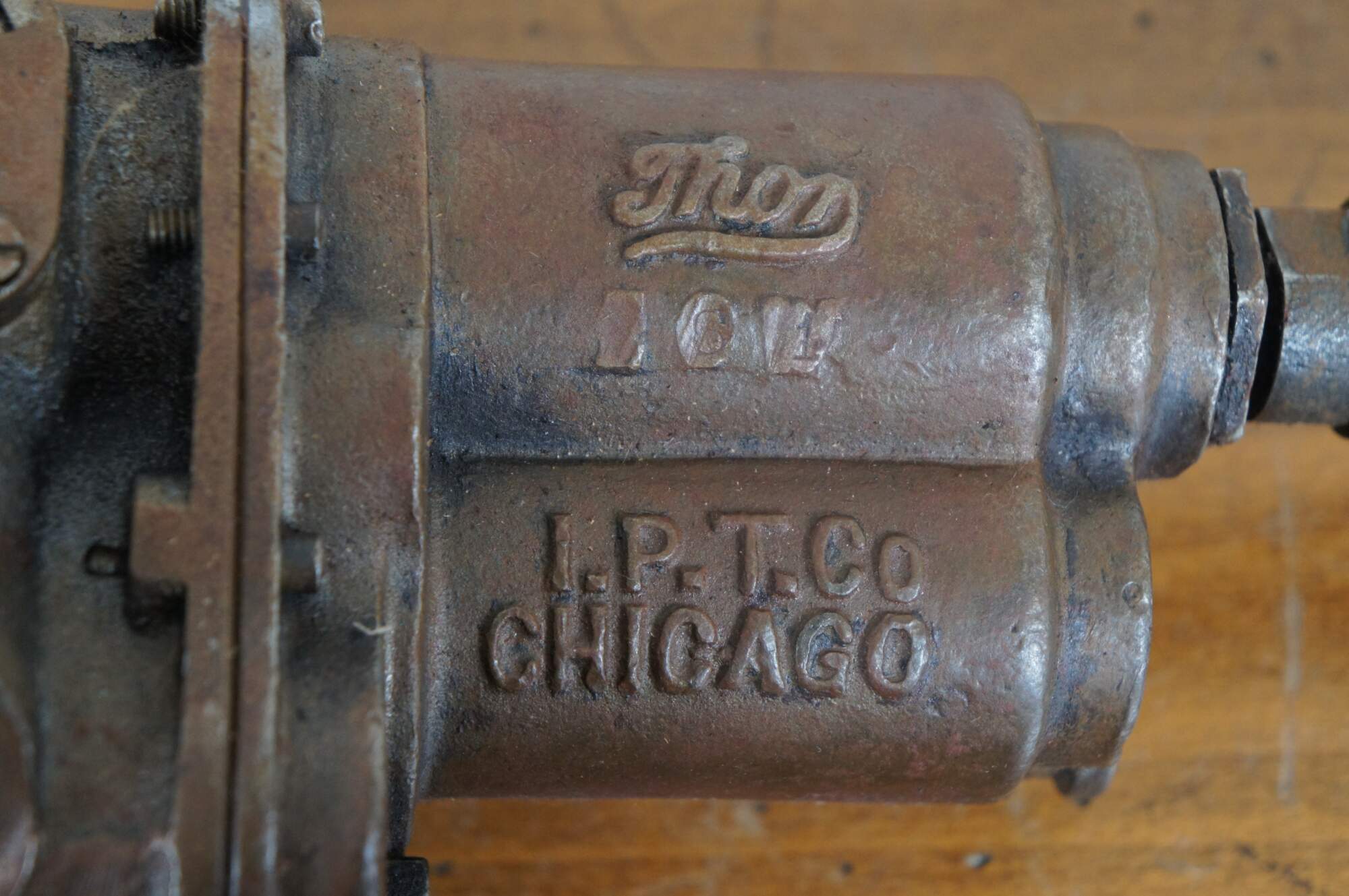 "The Thor Power Tool Company was a manufacturer of tools, washing machines, motorcycles, vacuum cleaners, rotary irons, electric ranges, kitchen sinks, speed snips, electric shoe shine machines, and the Juvenator. Thor was founded in 1893 by four men: John D. Hurley, Edward Hurley, John Patrick Hopkins, and Roger Charles Sullivan. The railroad industry first brought success to Thor. Its first product was the "Thor" pneumatic hammer to pound rivets and drill holes for bolts used to fasten the fire box of a locomotive to its boiler. The name "Thor" referred to: Thor, the mythical god of thunder, frequently pictured as wielding a mighty hammer. The name became popular and spread to other company products. In 1953, the company recognized the impact of the Thor name and officially adopted it as the corporate title, Thor Power Tool Company. Using the established Thor logo, Thor Power Tool Company manufactured a broad line of industrial, service, mining, and household tools—some of which were operated by air, some by electricity, and some by gasoline. By the early sixties, Thor Power Tool Company was acquired by the Stewart-Warner Corporation. A short time later, Neil C. Hurley, Jr. died from a third heart attack, February 9, 1965, at the age of 54 and the Thor brand name almost died." (Source: Wikipedia)