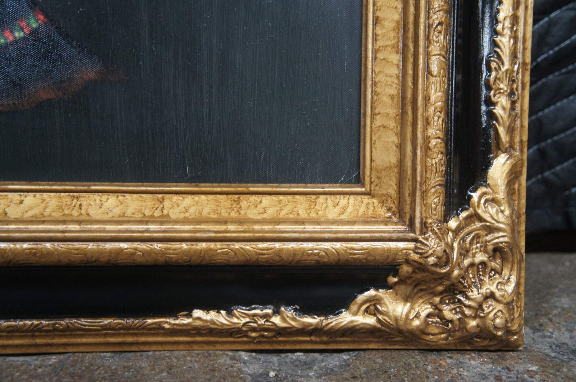 Vintage trio of Chinese woman playing instruments oil painting on canvas after Chen Yifei. Features three young musicians in traditional court attire playing various instruments.
