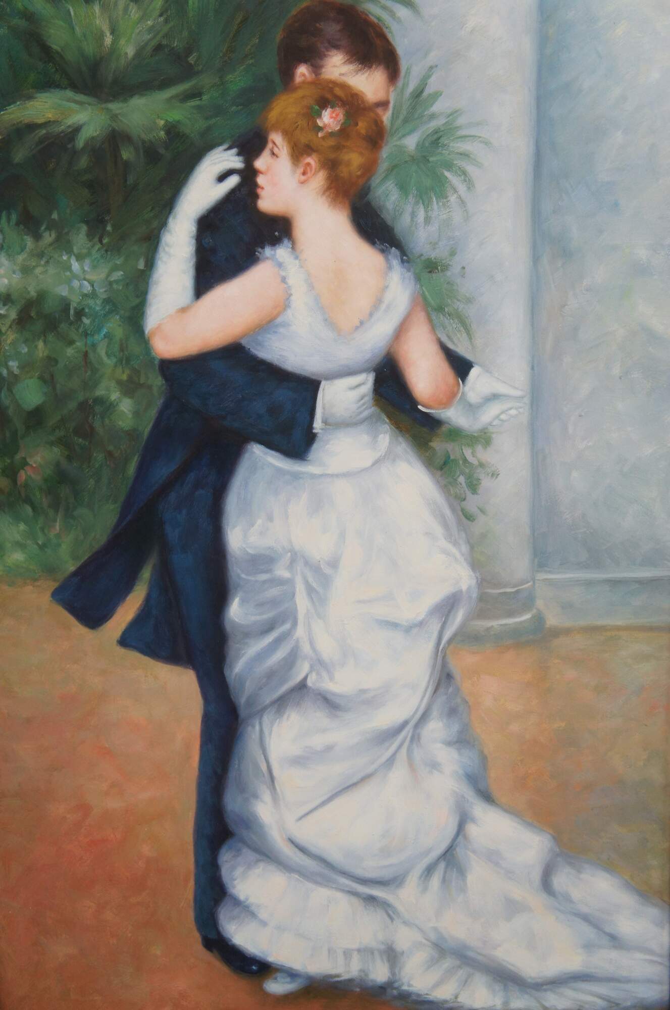 Vintage oil painting on canvas after Pierre Auguste Renoir, titled Dance in the City.
