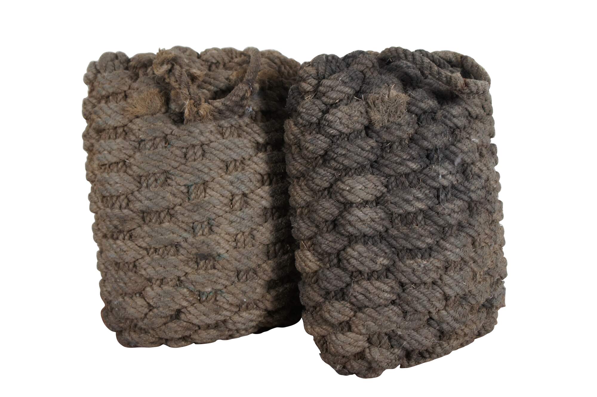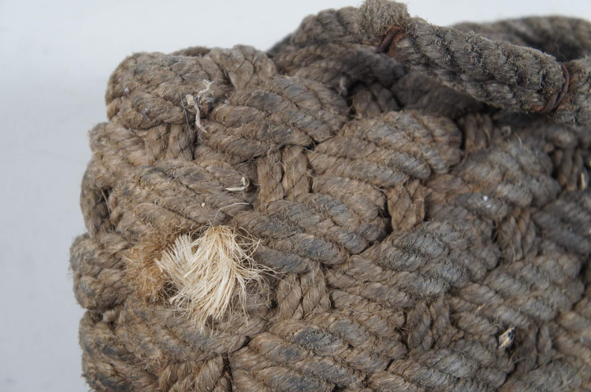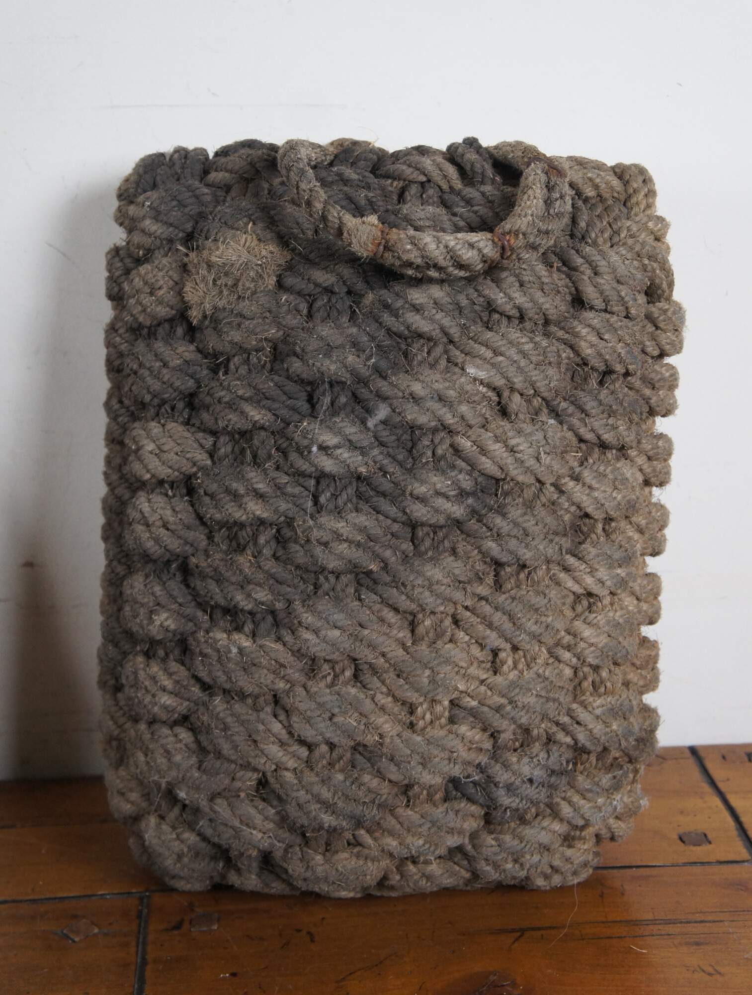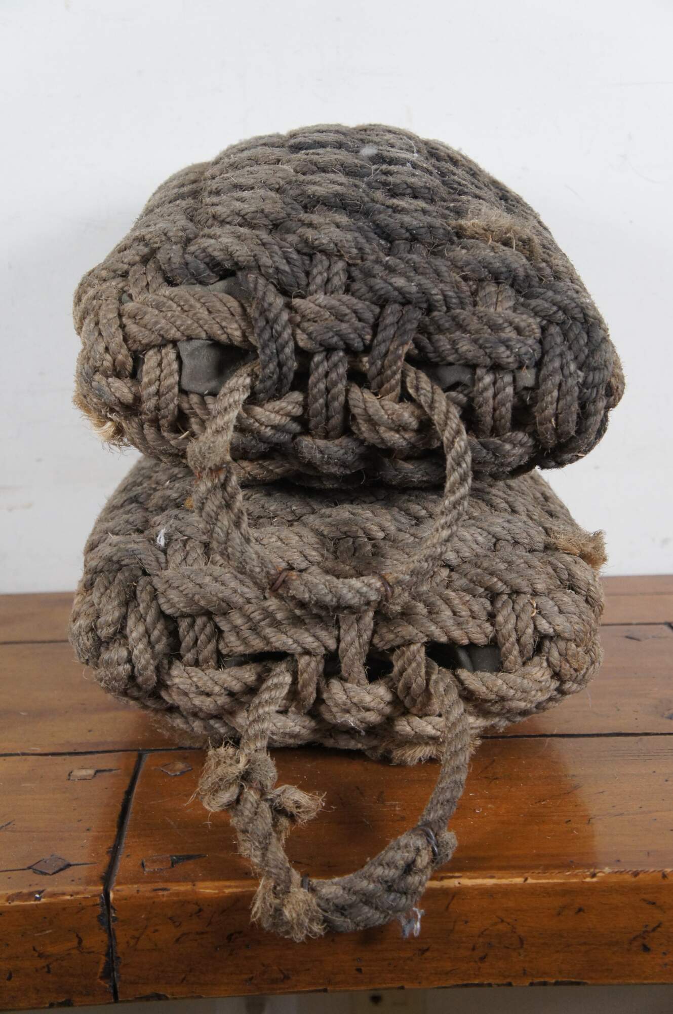 Pair of early 20th century boat bumpers / fenders, rectagnular shape woven from natural hemp rope with handle.