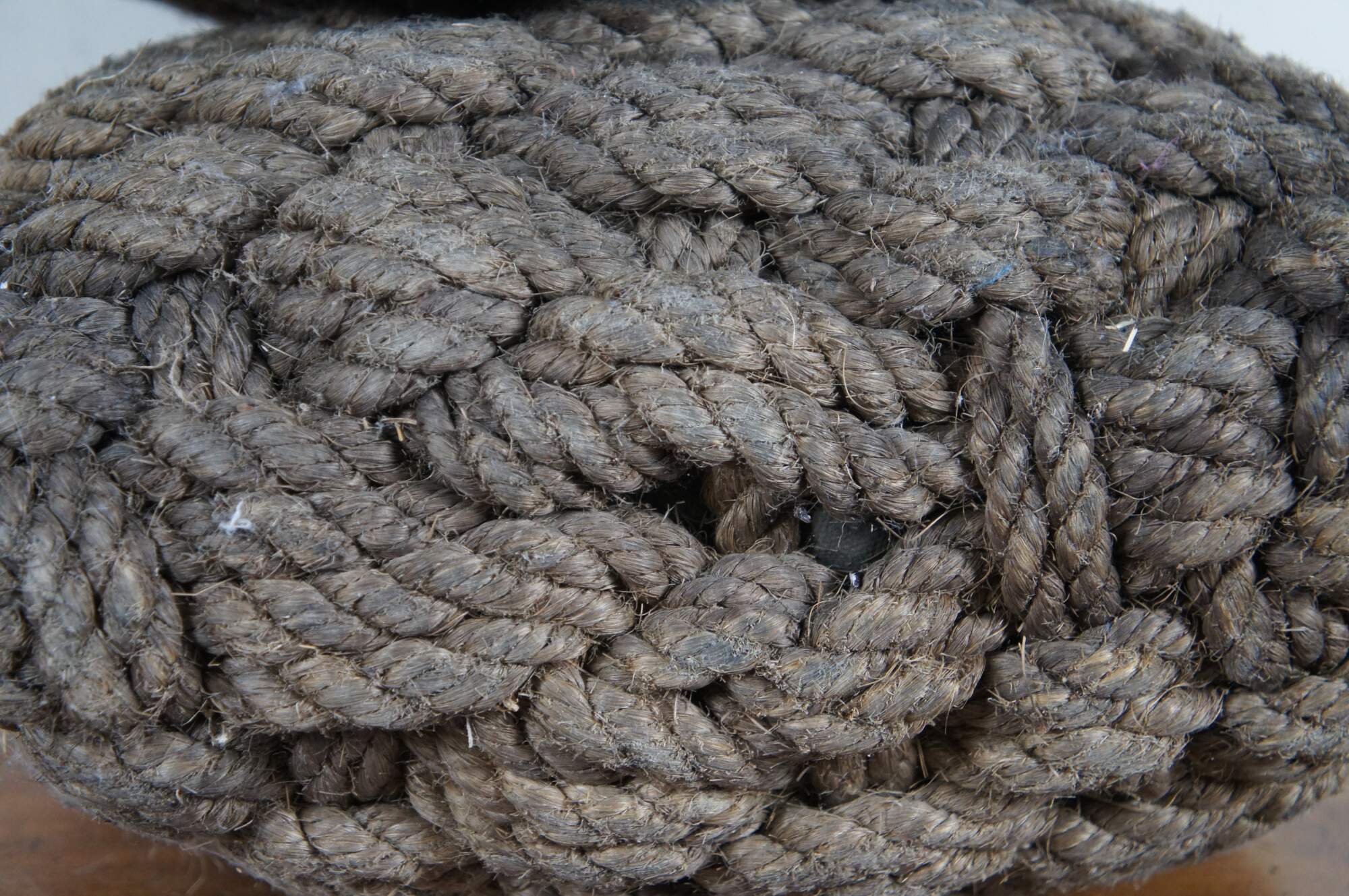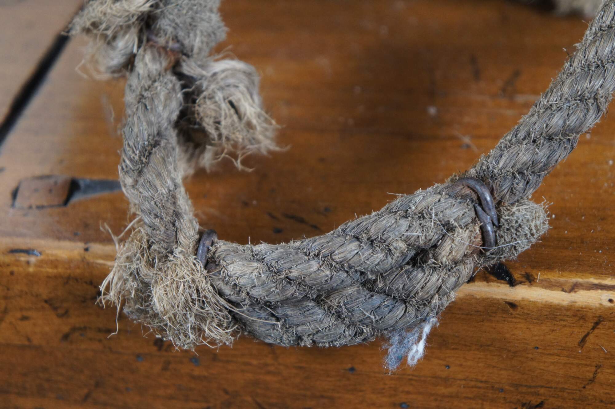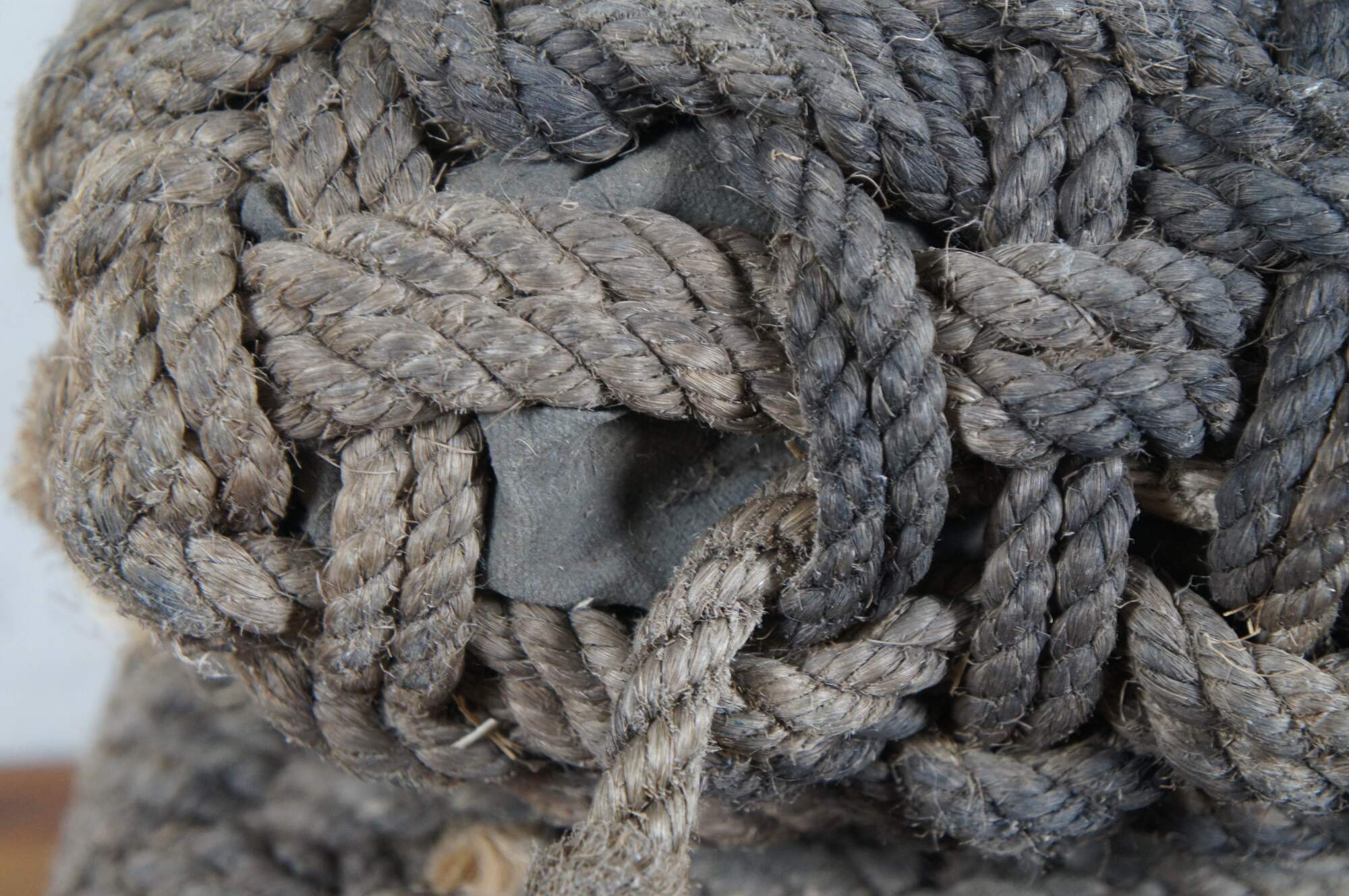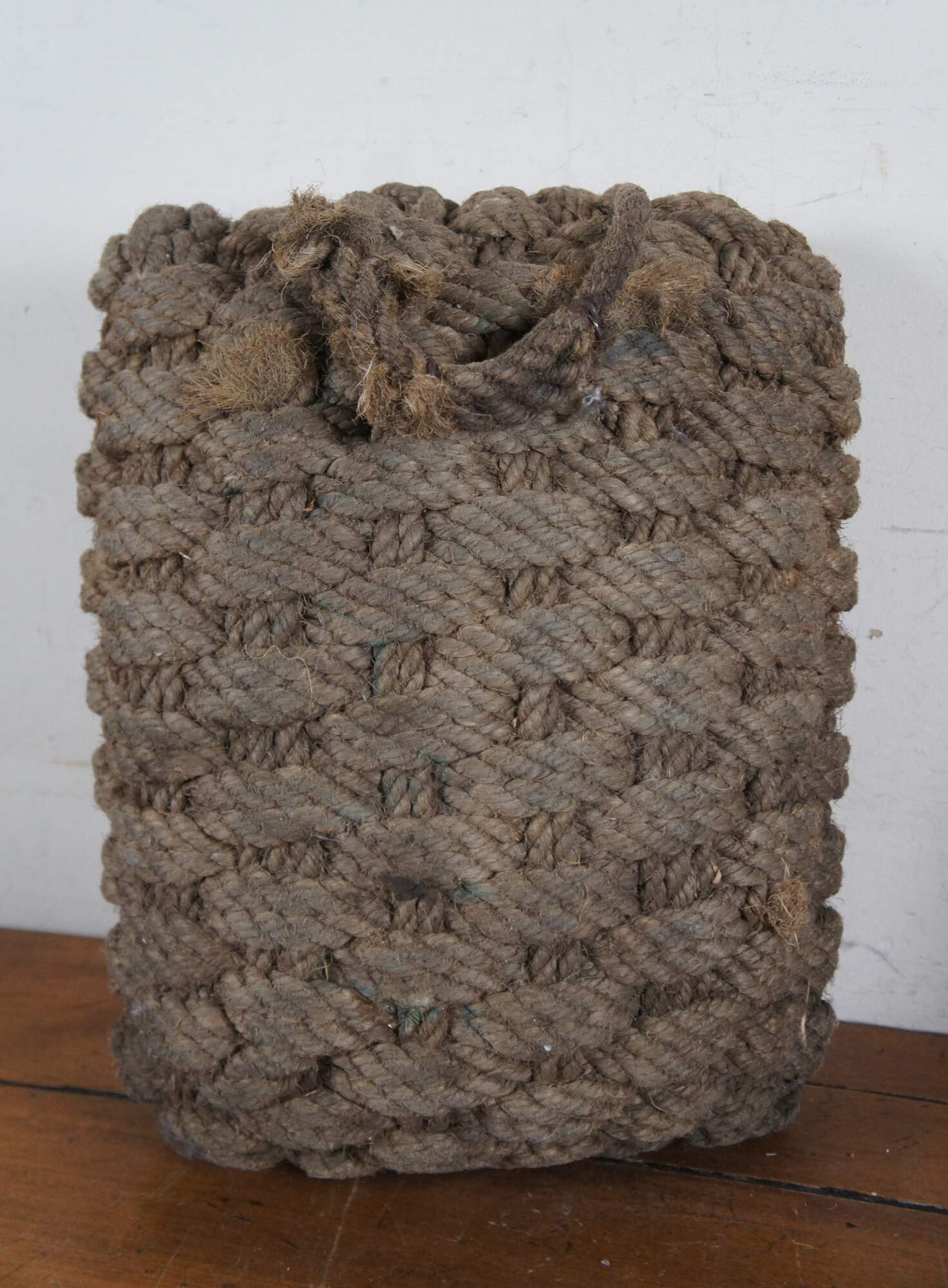 Pair of early 20th century boat bumpers / fenders, rectagnular shape woven from natural hemp rope with handle.