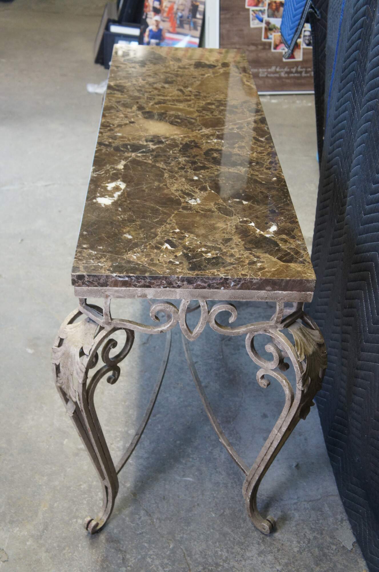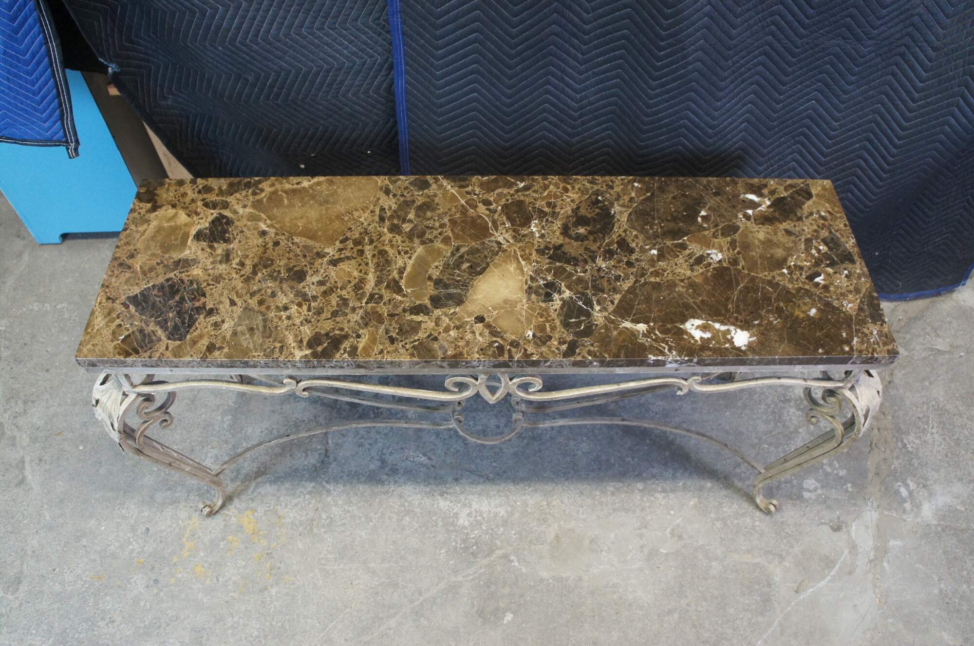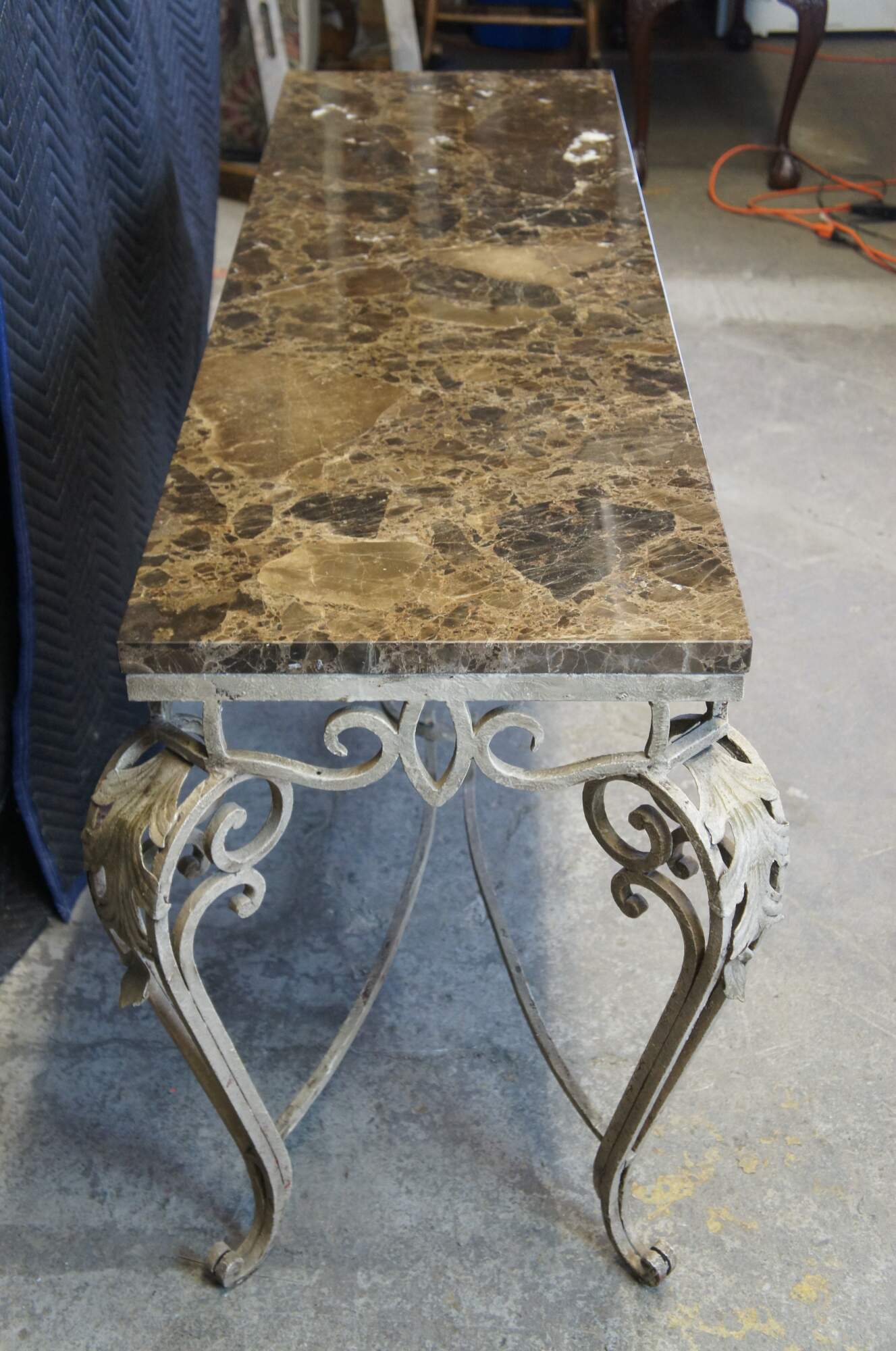 Vintage Scrolled Wrought Iron & Spanish Marble Hall Sofa Console Table 65"