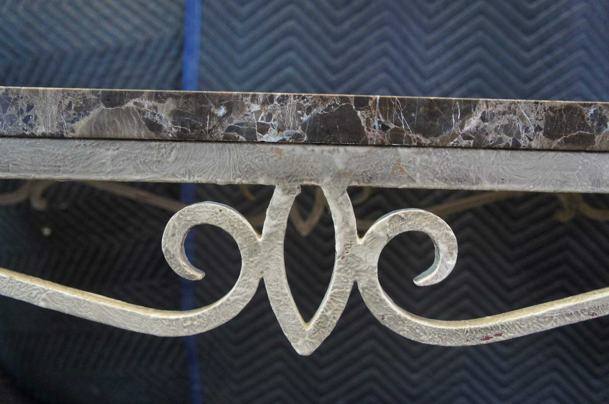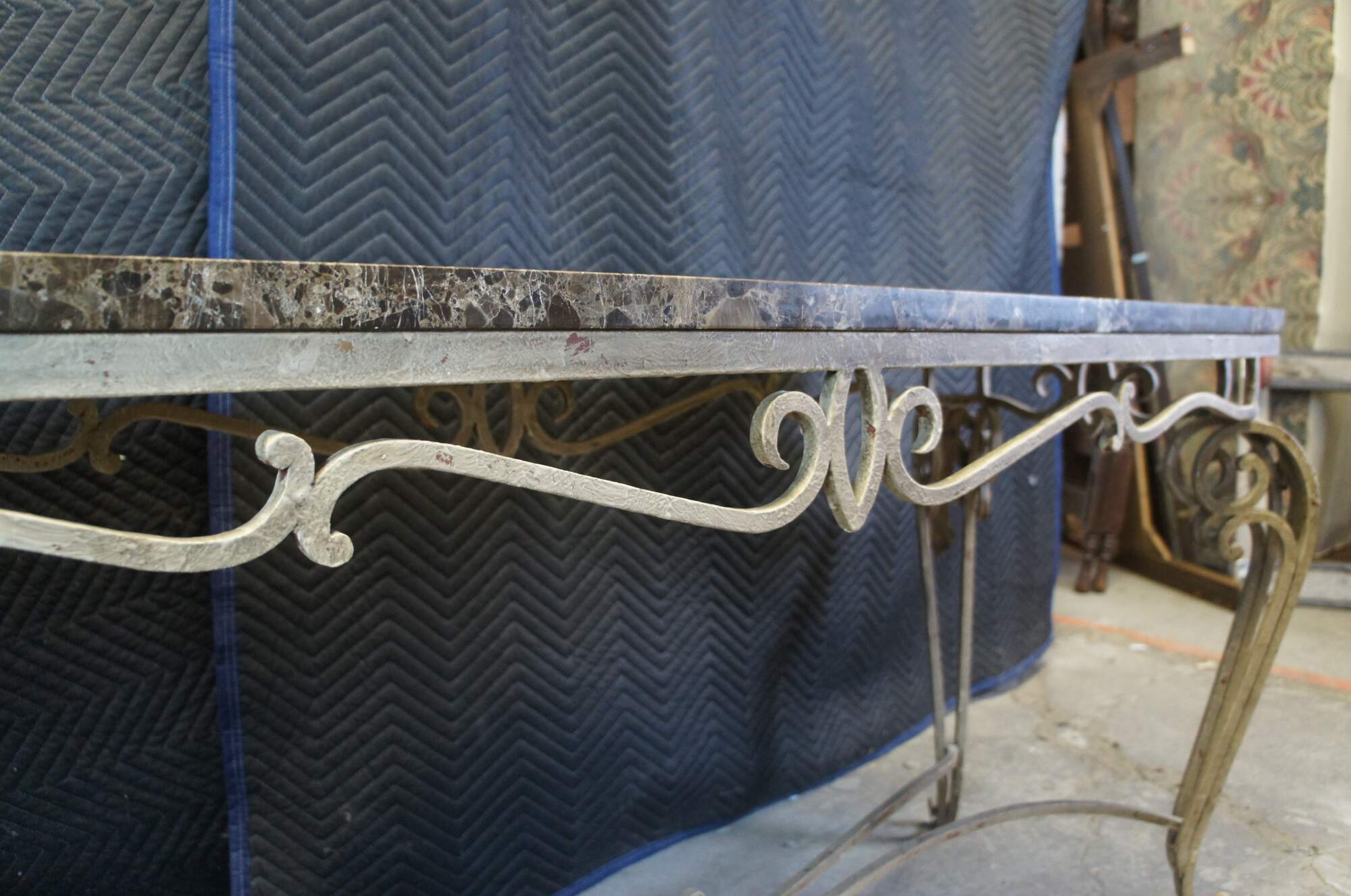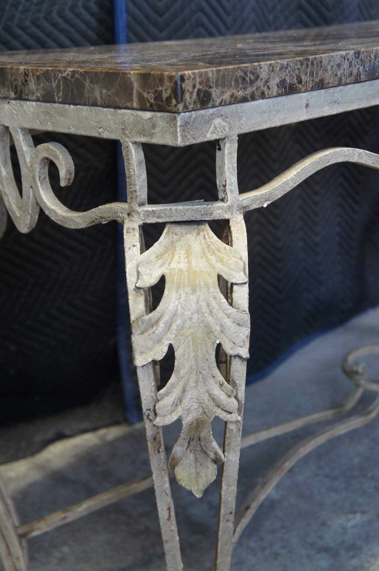 Vintage Scrolled Wrought Iron & Spanish Marble Hall Sofa Console Table 65"