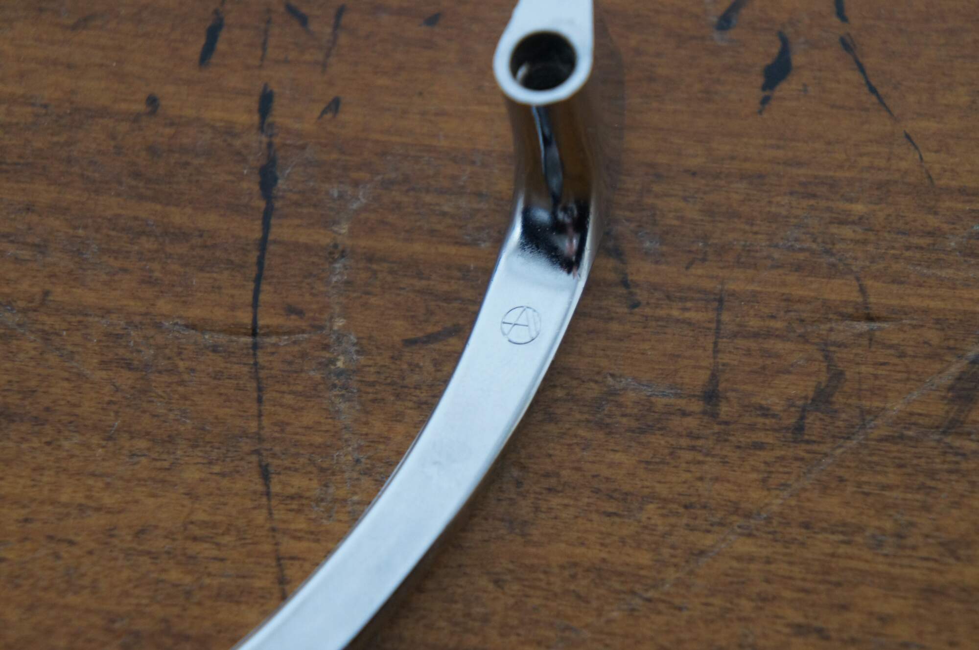 4 Available - Mid to late 20th century old-stock drawer / cabinet pulls. Amerock, item number A-419-26, Polished Chromium Plated. 2.75" Hole Centers. Simple curved / half moon shape.