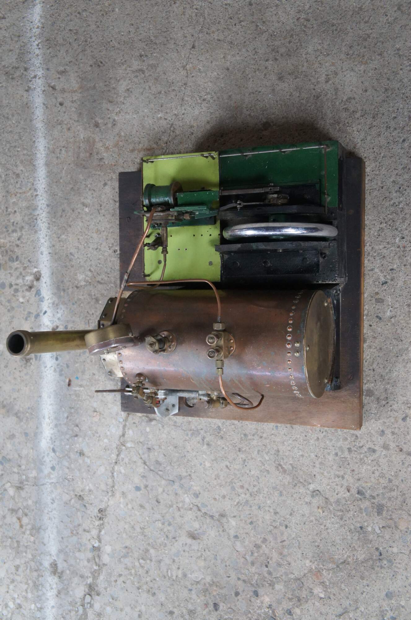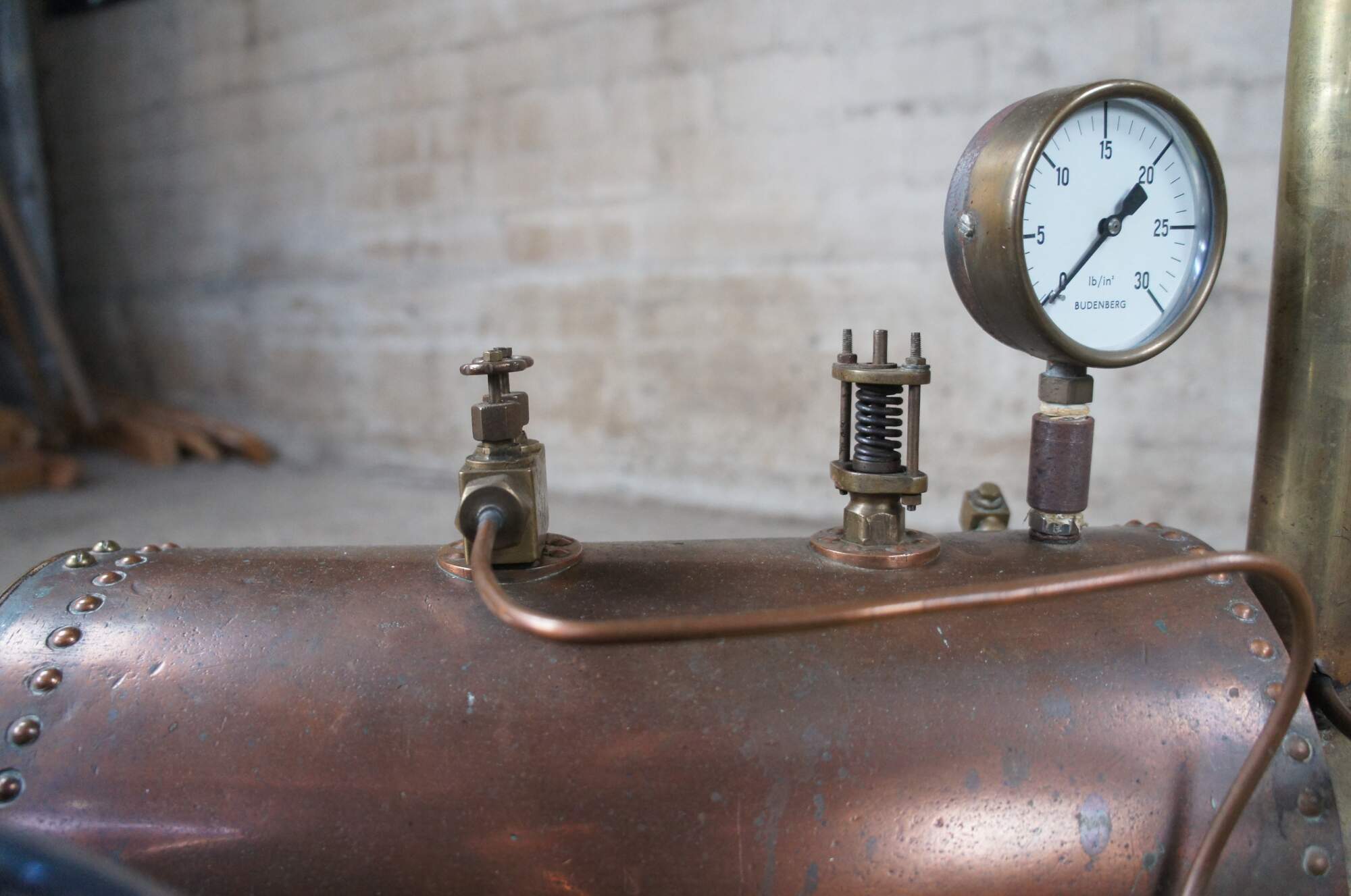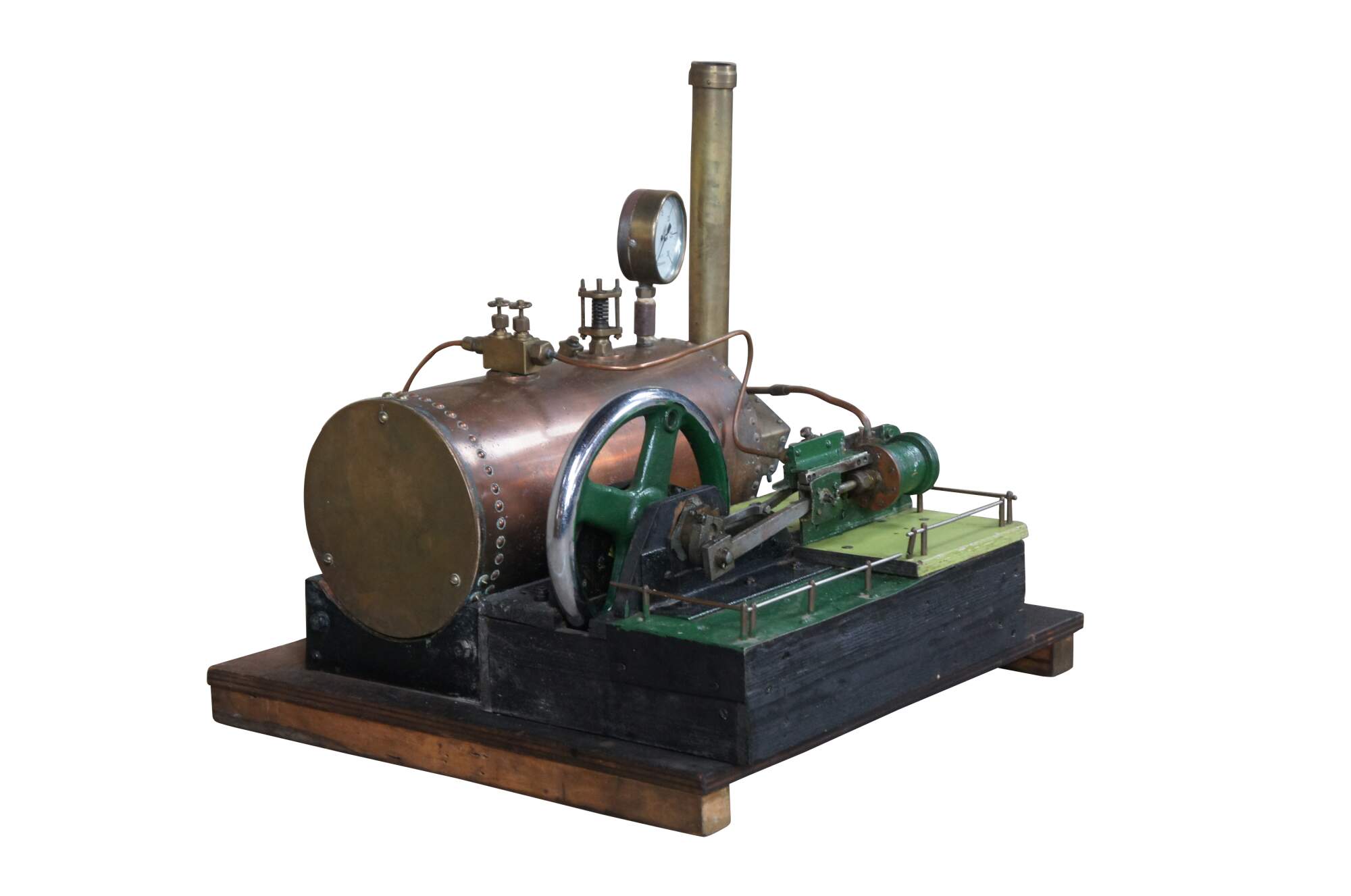 Antique 19th century Schaeffer & Budenberg stationary steam engine model. Made of cast iron featuring copper boiler