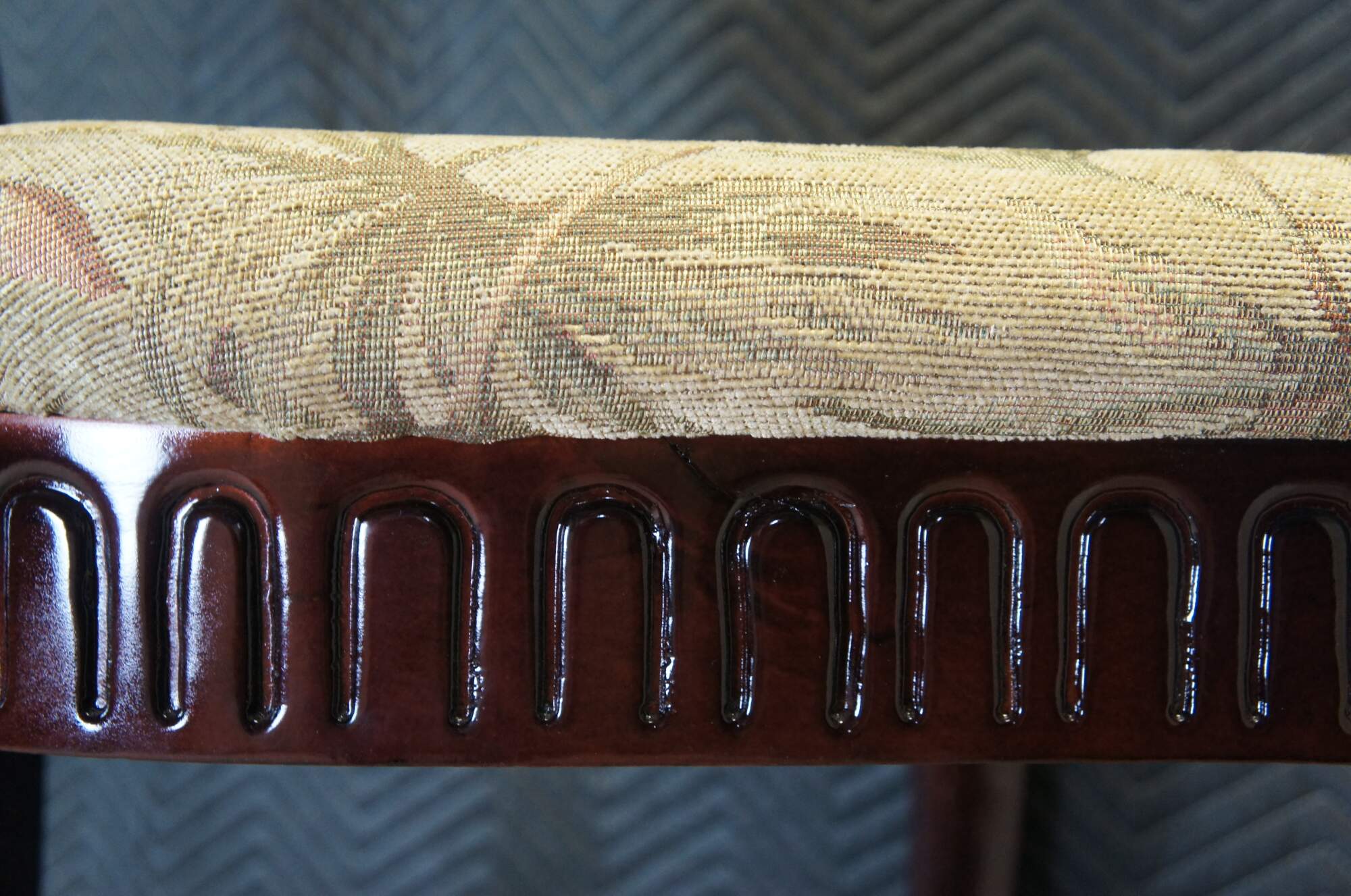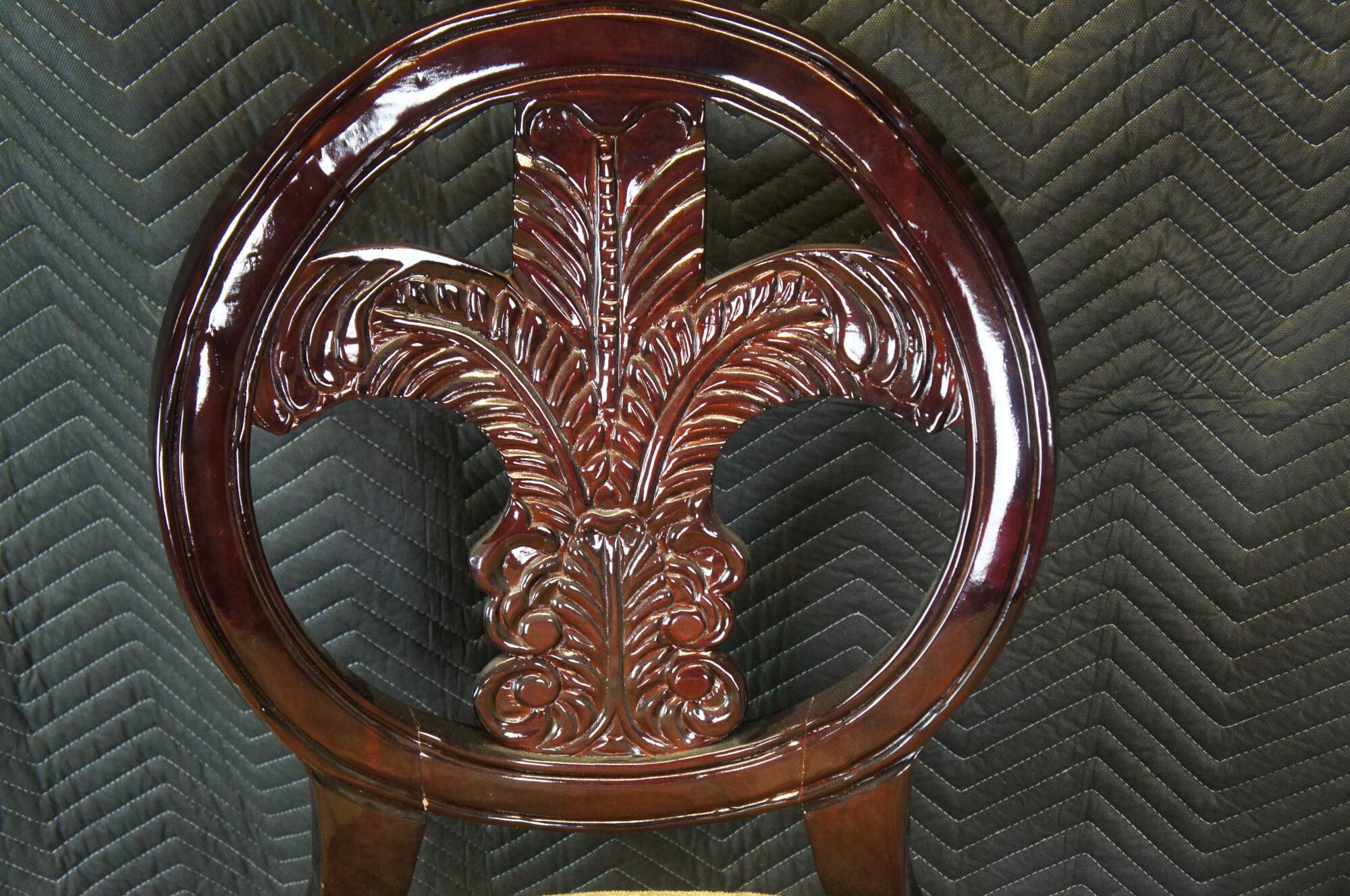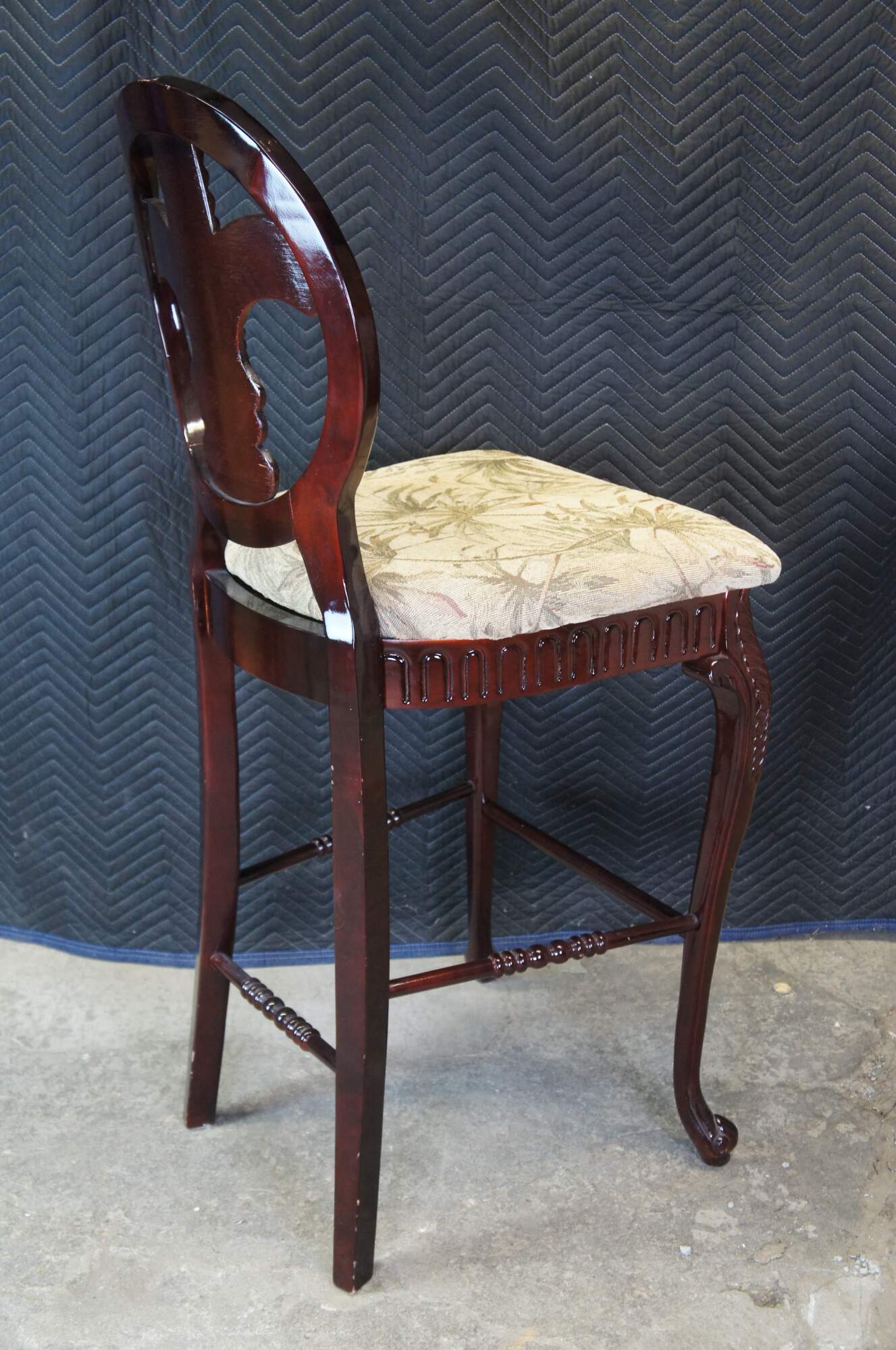 The Pulaski Foxcroft Bar Stool has an elegantly carved back showcasing prince of wales feathers and acanthus carved legs as well as a lovely and classic upholstered seat. Finished in mahogany