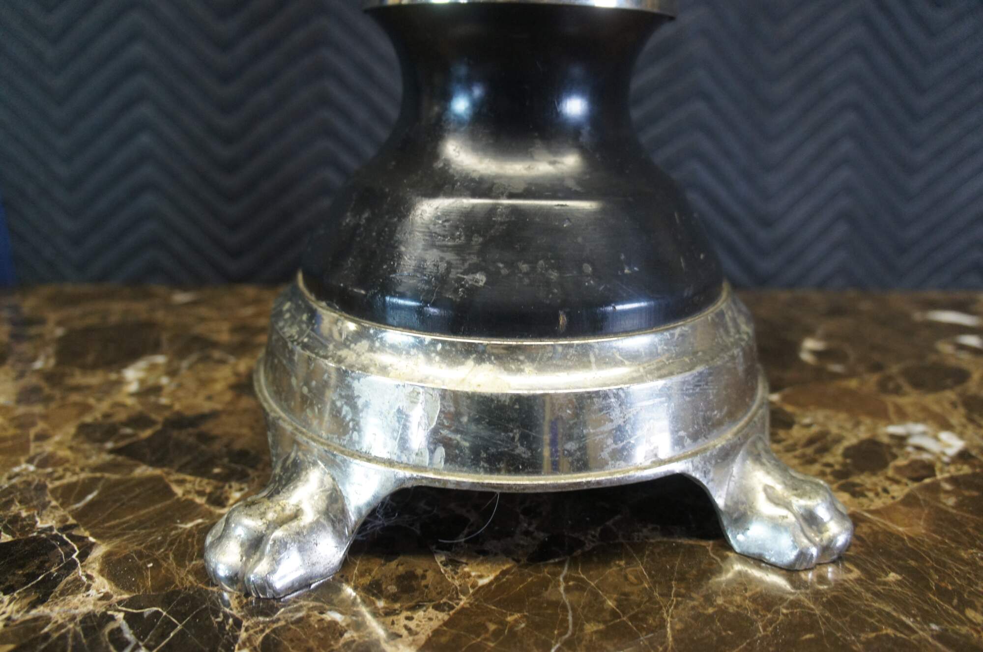 Genuine Art Deco Floor Candle or Altar Sticks, circa 1920s. Made from nickel and ebony wood.