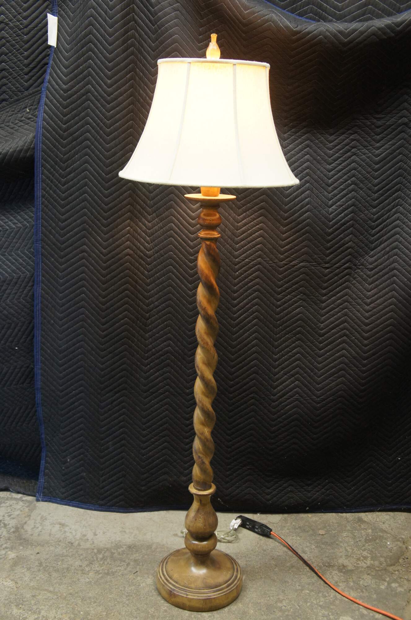 Handmade Italian Barley Twist Floor Lamp. Natrually distressed with candlestick design, tapered shade and tulip finial.